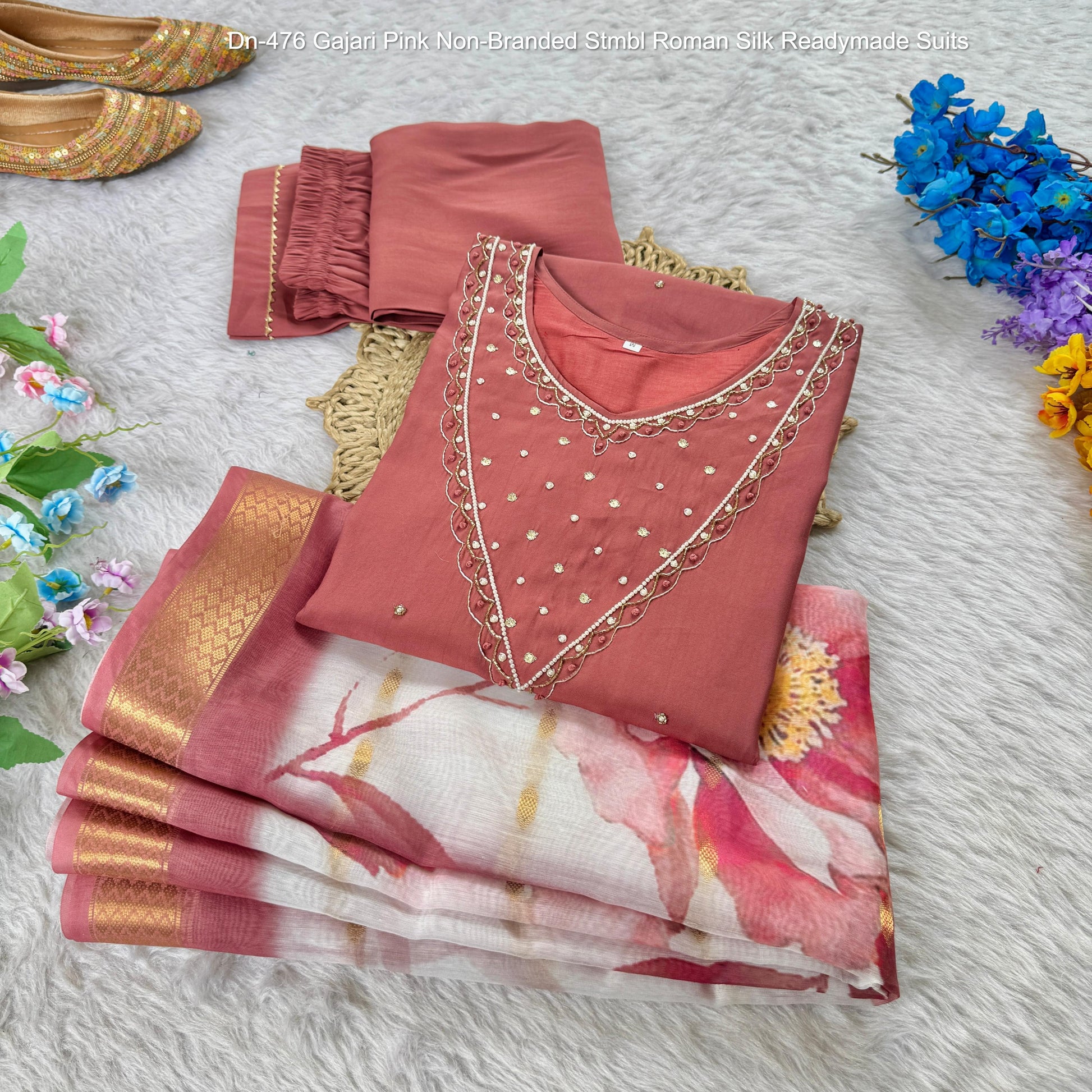 Dn-476 Gajari Pink Non-Branded Stmbl Roman Silk Readymade Suits