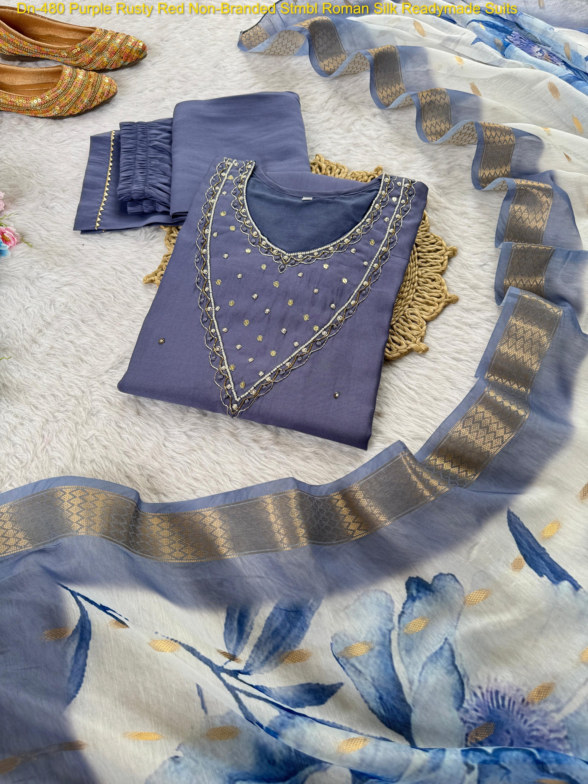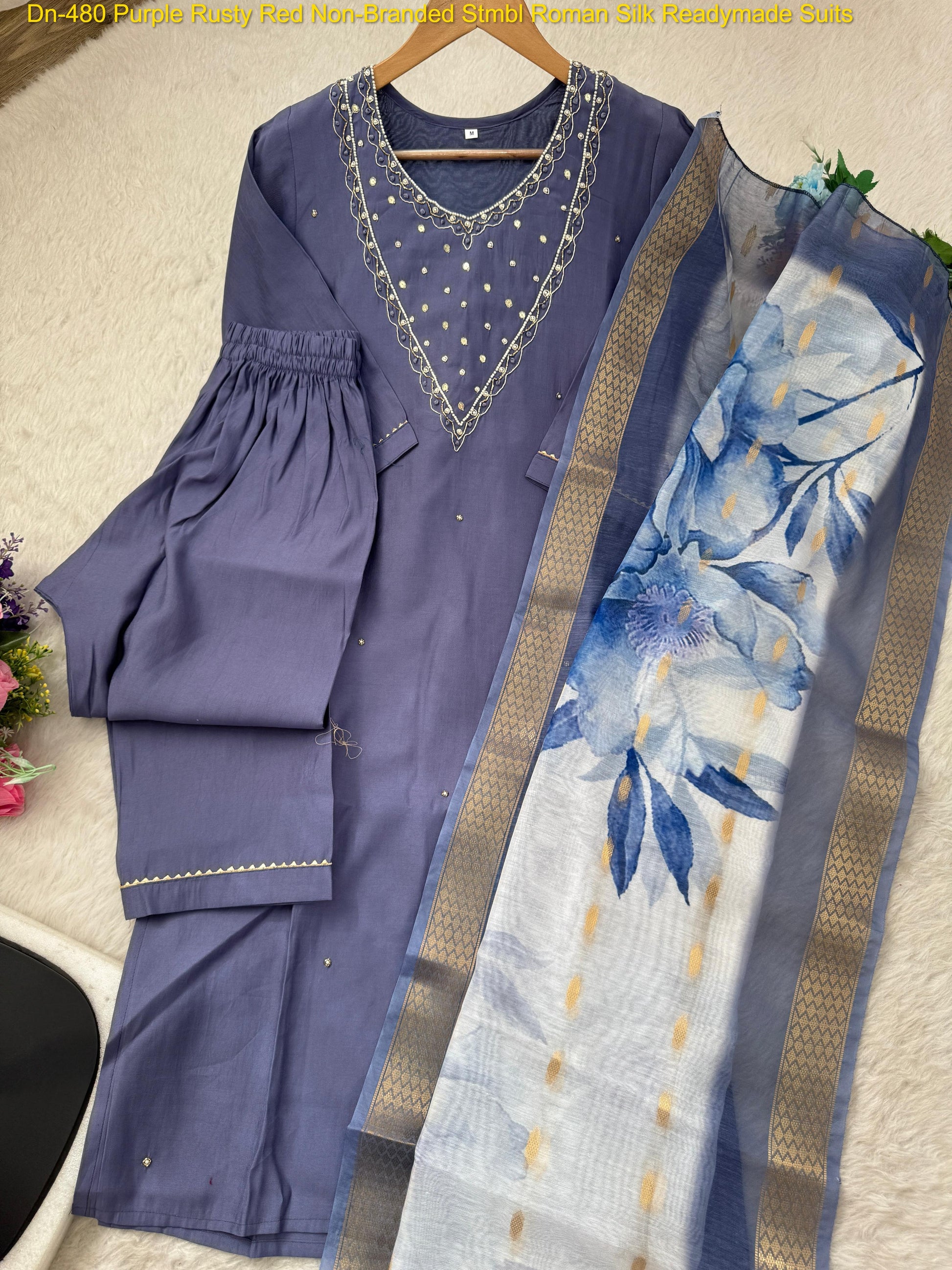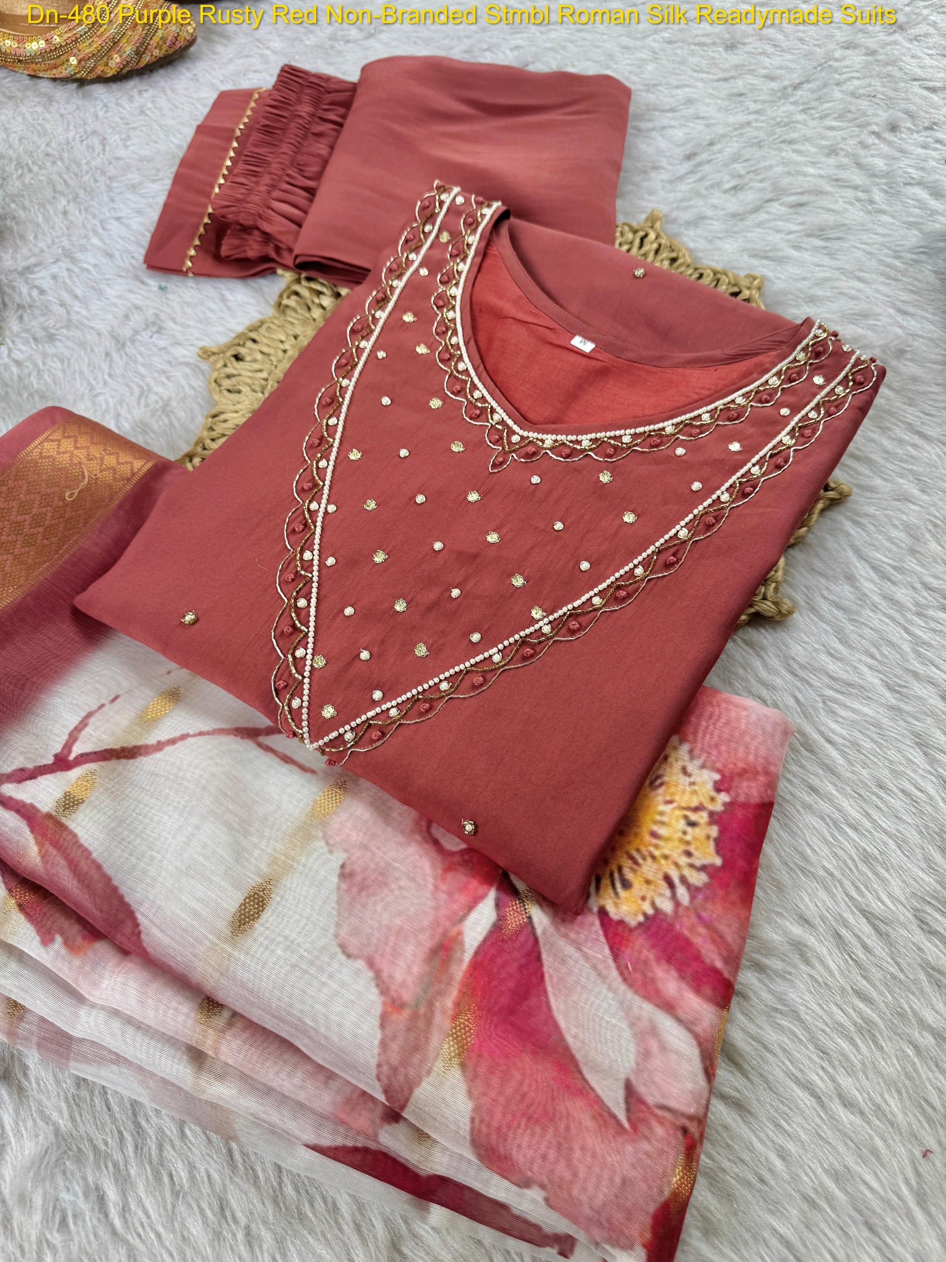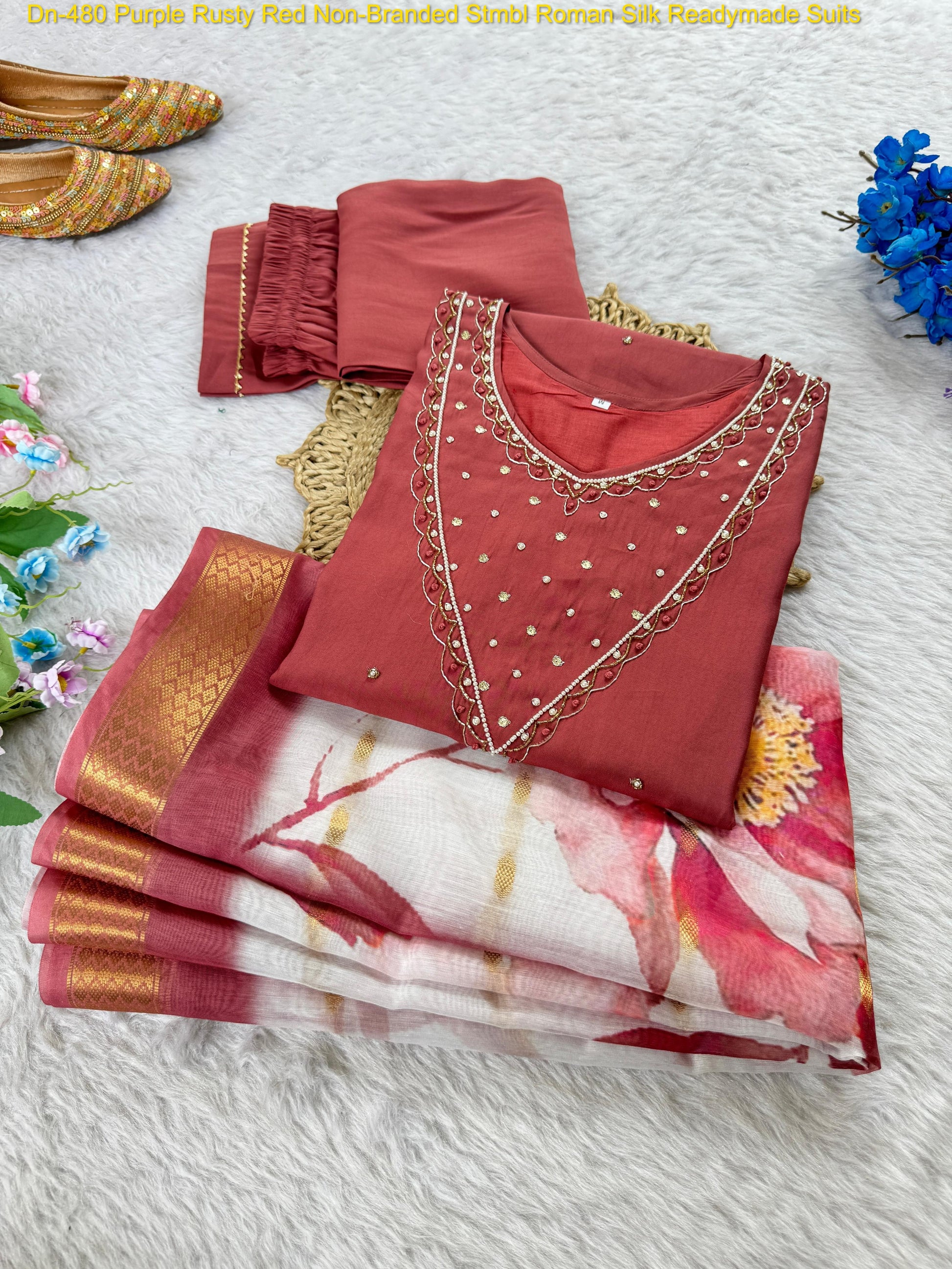Dn-480 Purple Rusty Red Non-Branded Stmbl Roman Silk Readymade Suits