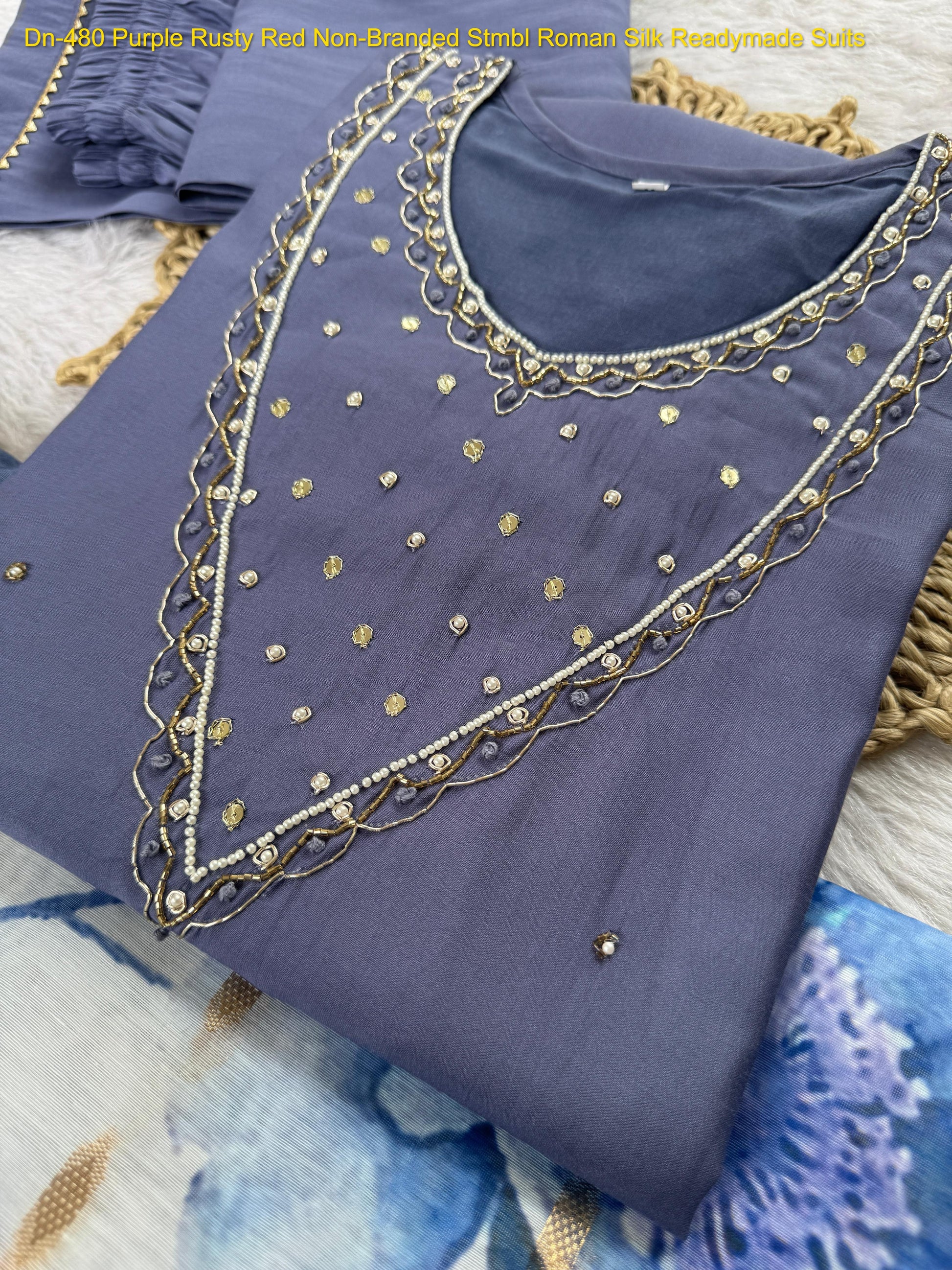 - Dn-480 Purple Rusty Red Non-Branded Stmbl Roman Silk Readymade Suits Dealer Ahmedabad Surat Wholesale Gujarat India Lowest Price Best Quality Buy Purchase Shipping Kurta Salwaar Kameez Also free Cash on delivery