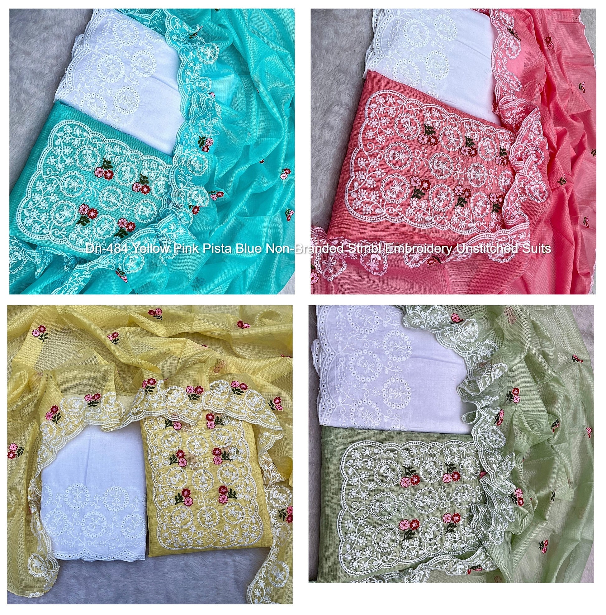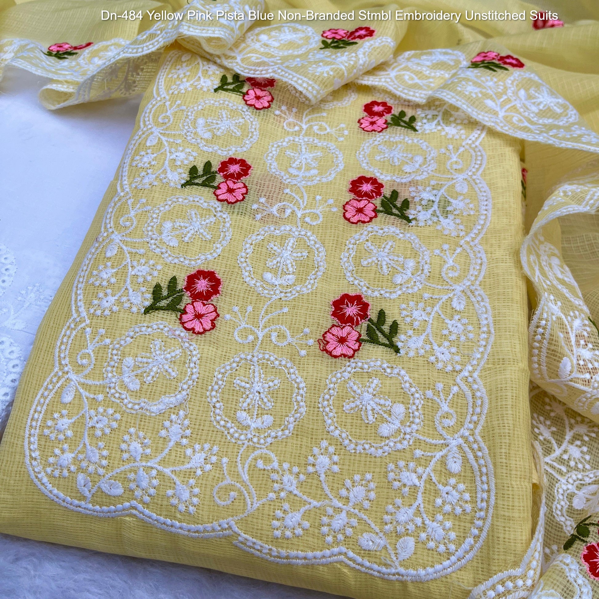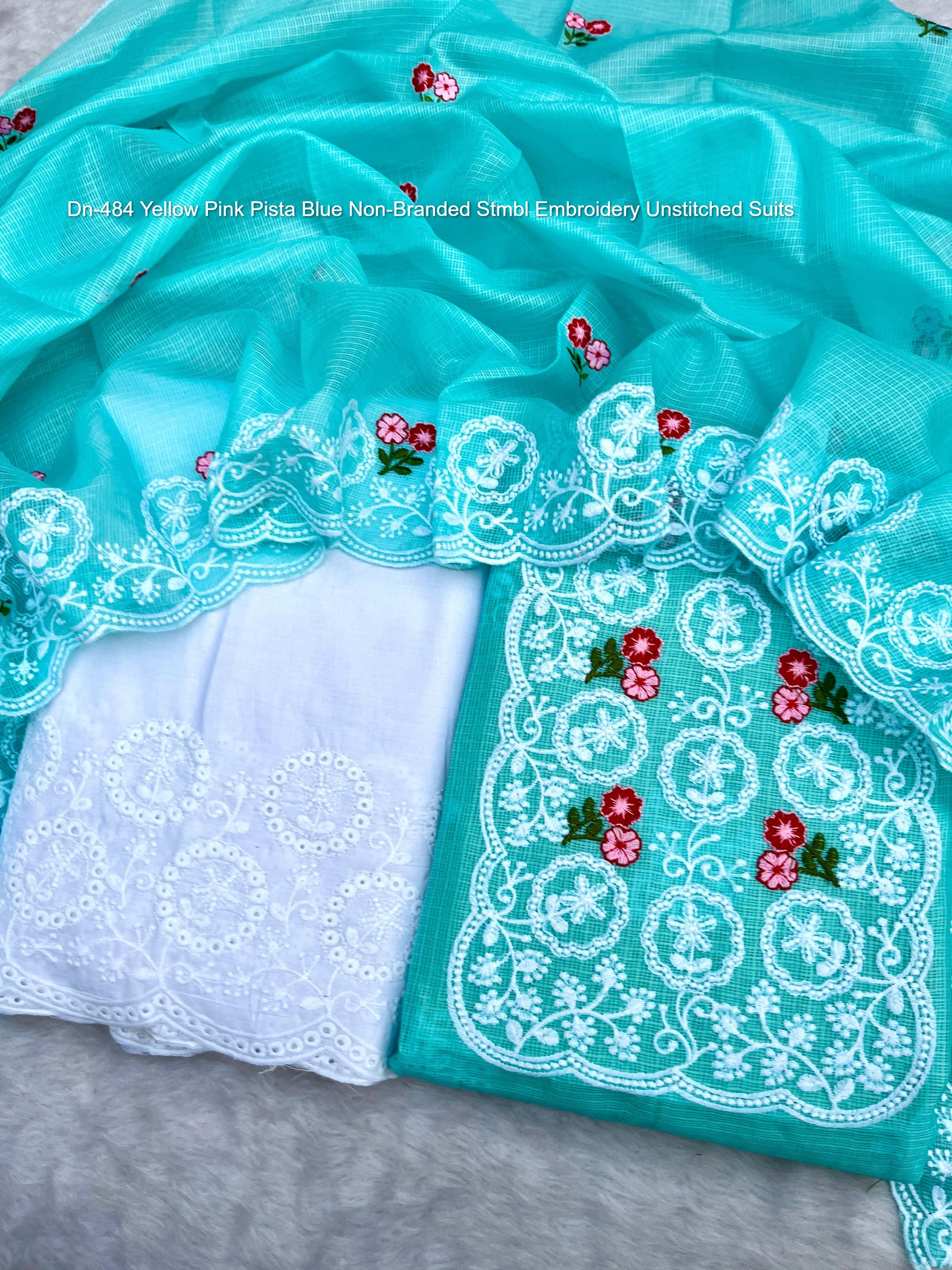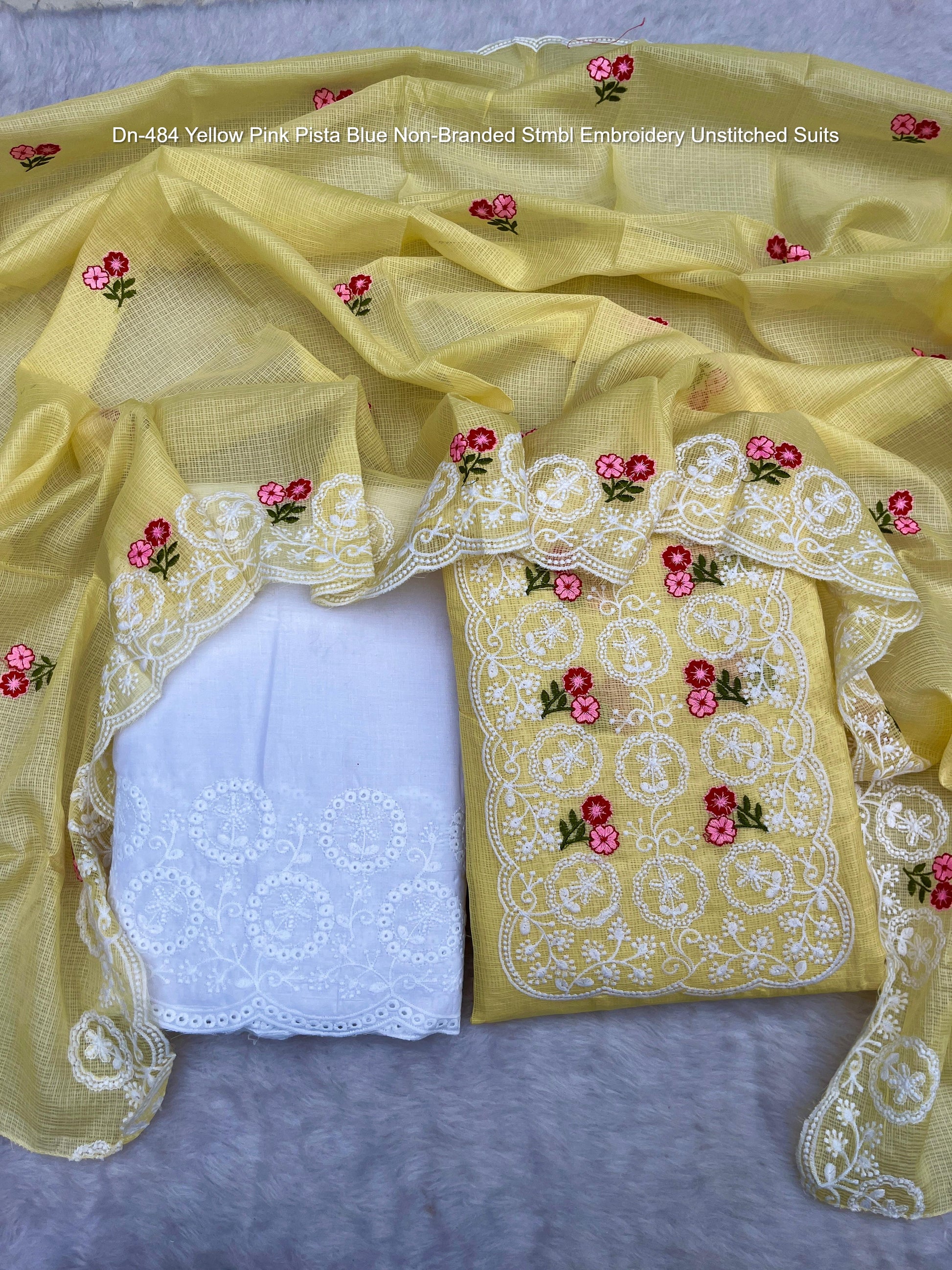 Dn-484 Yellow Pink Pista Blue Non-Branded Stmbl Embroidery Unstitched Suits