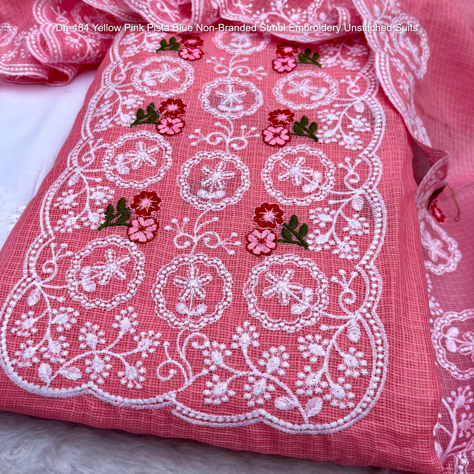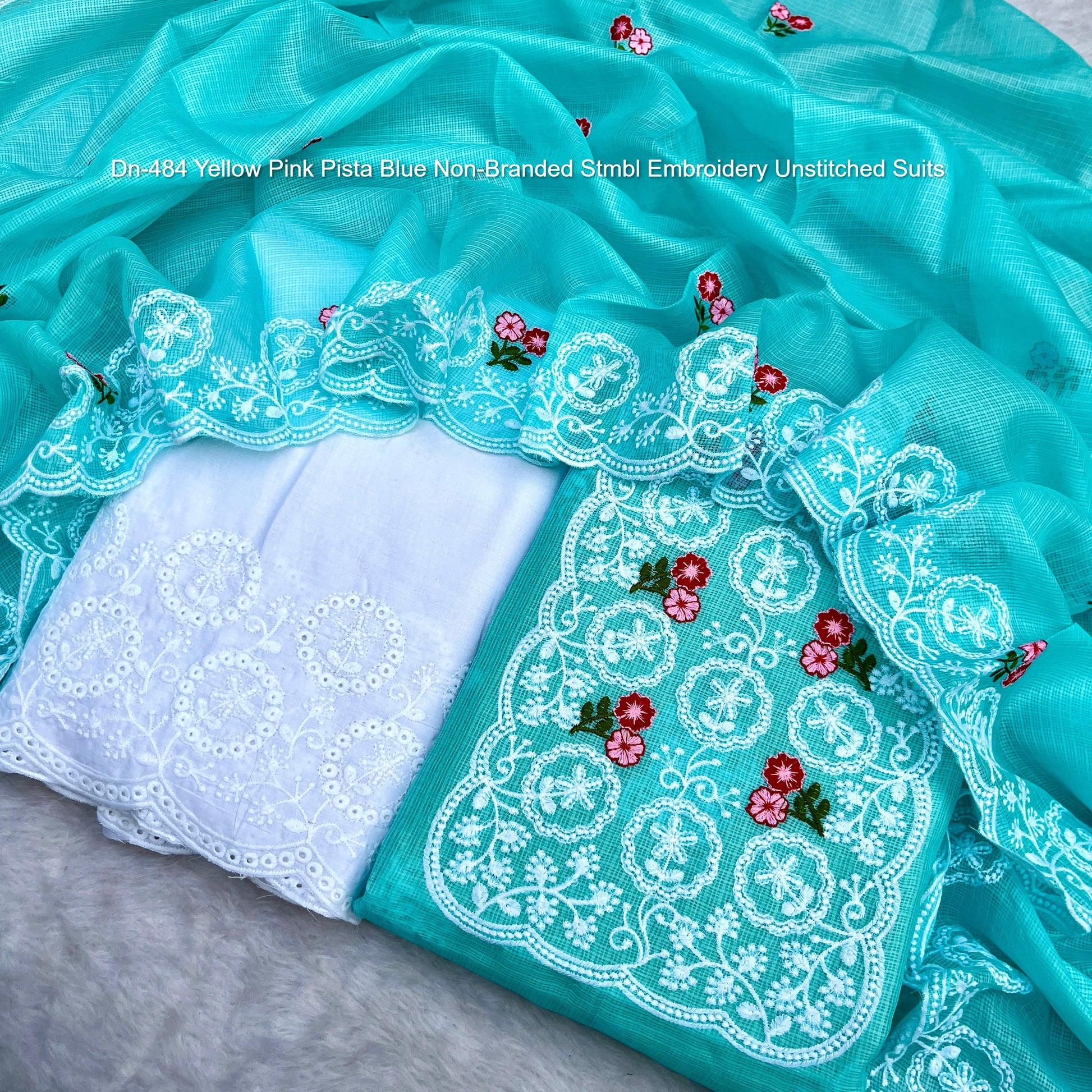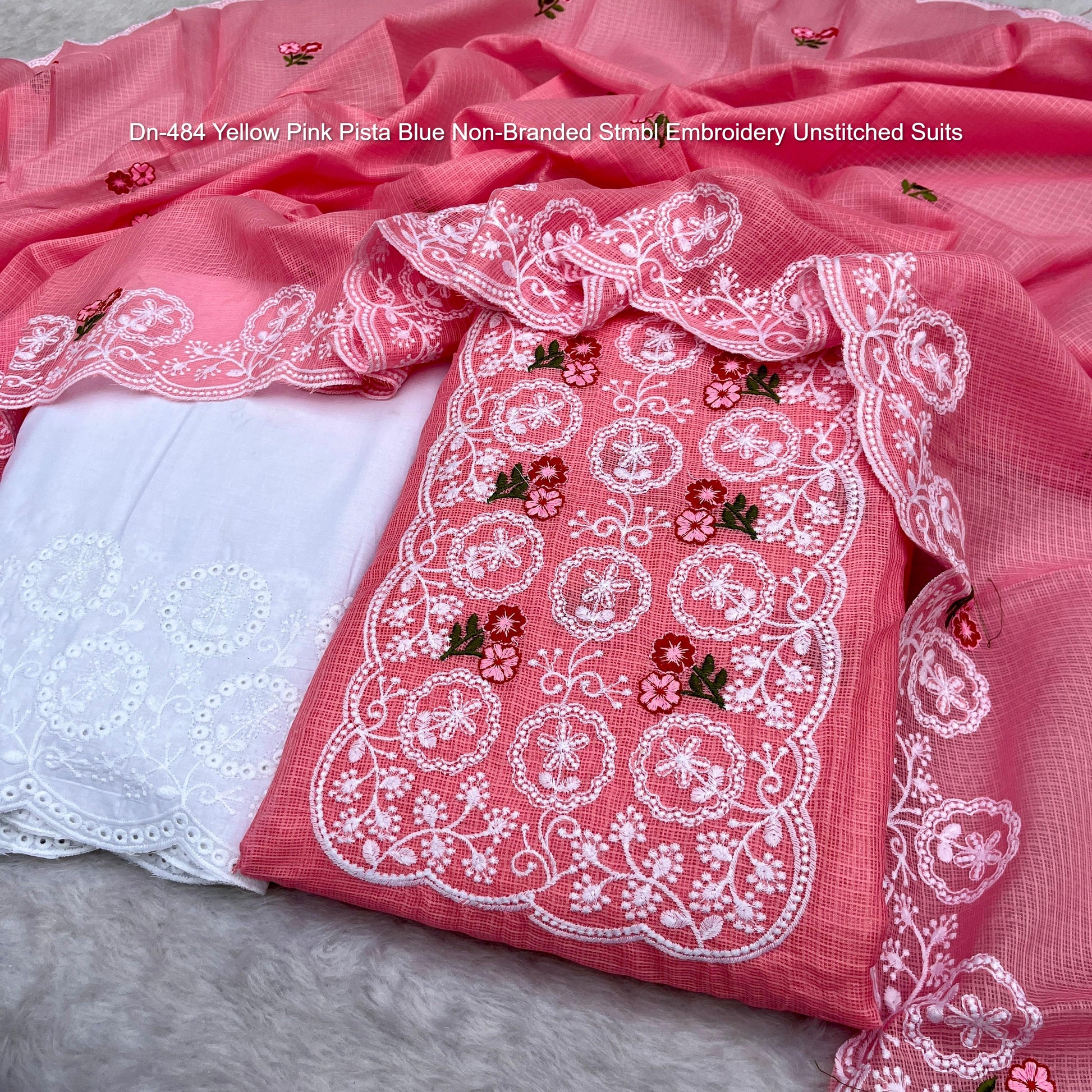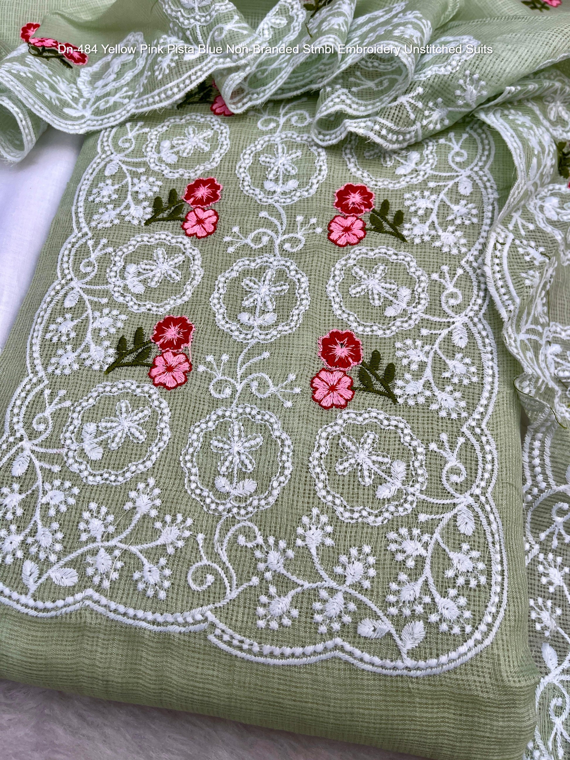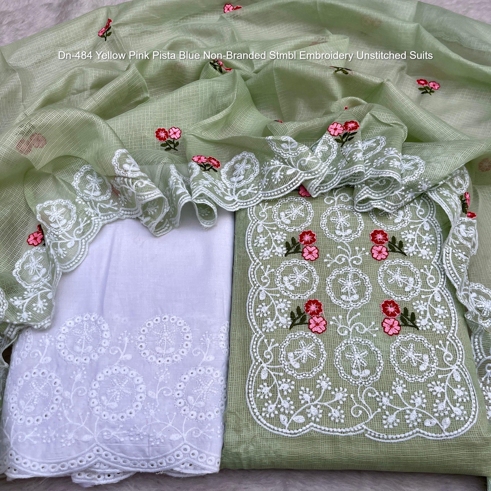 Dn-484 Yellow Pink Pista Blue Non-Branded Stmbl Embroidery Unstitched Suits