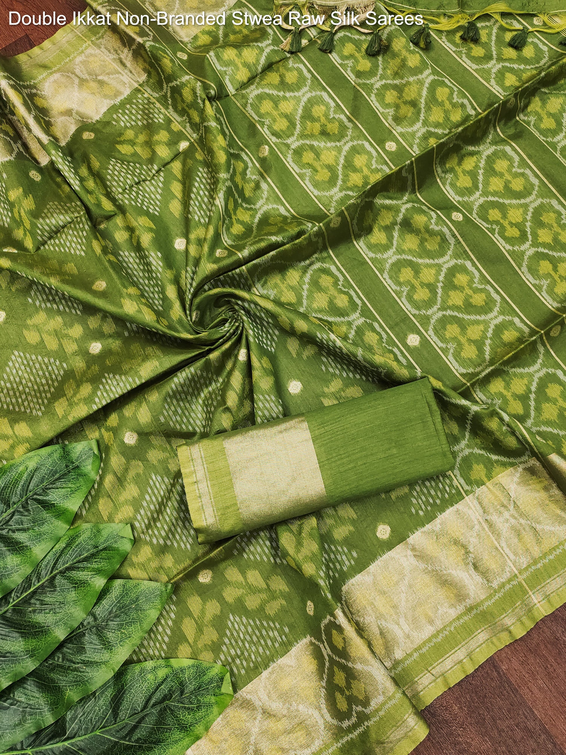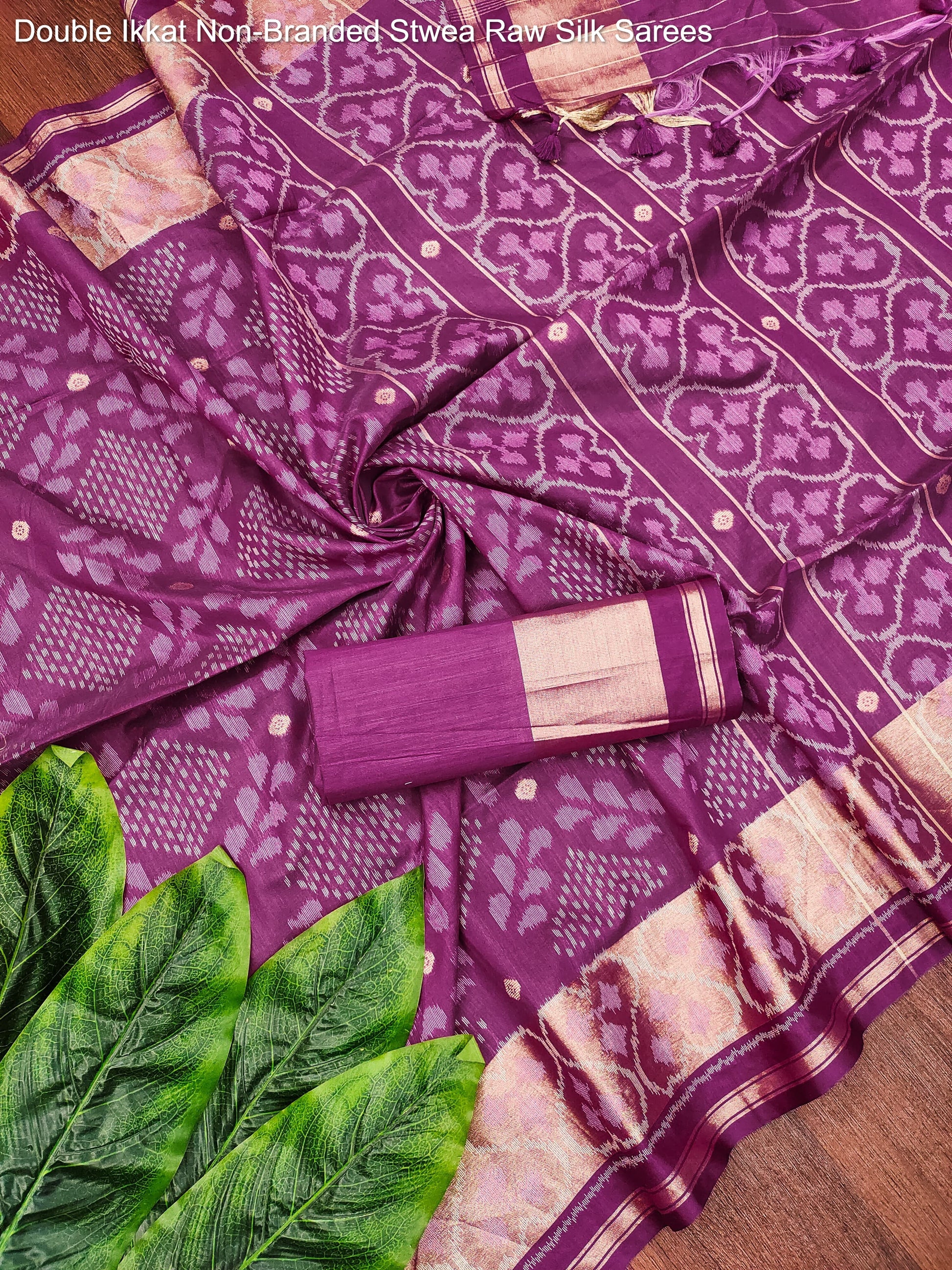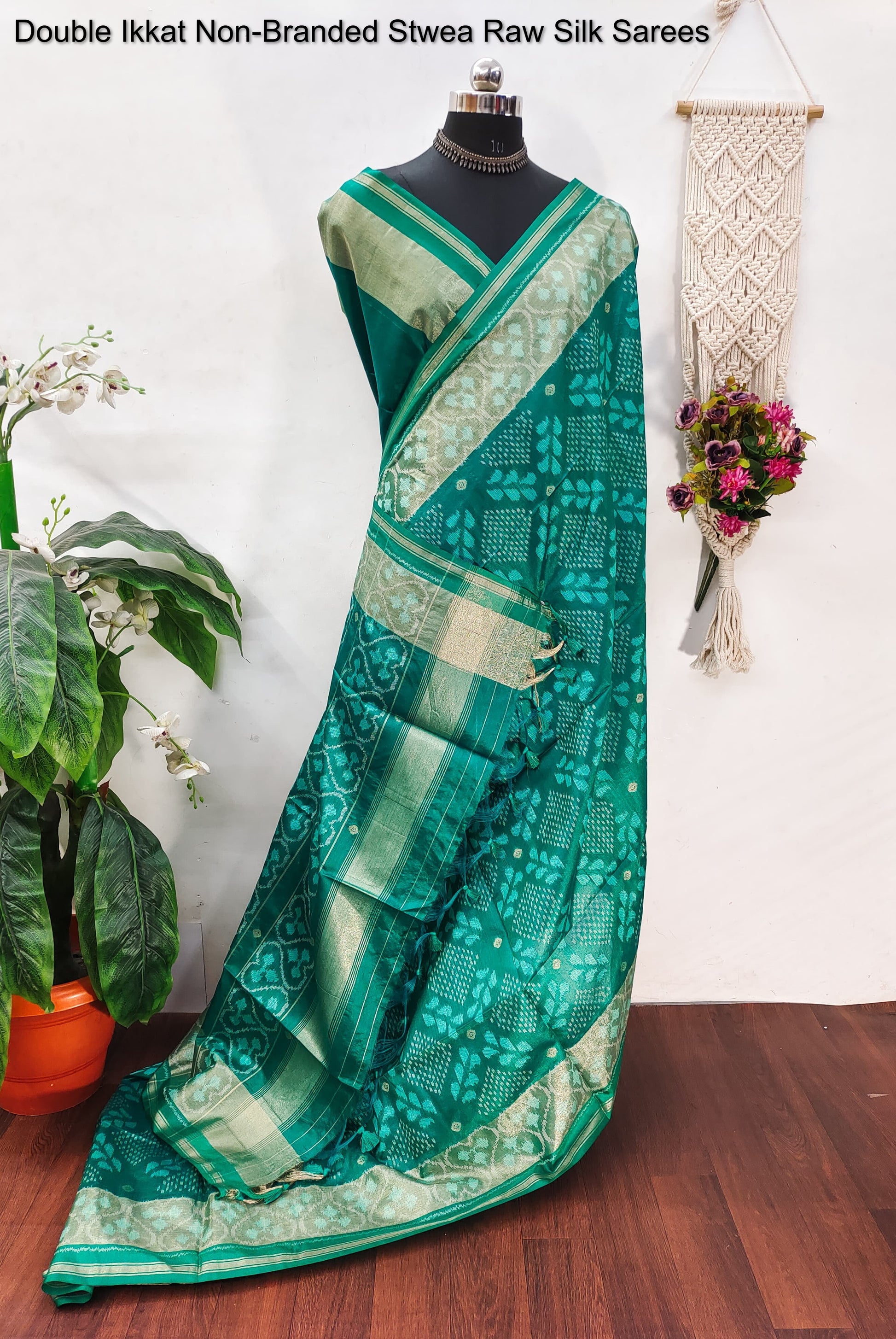 Double Ikkat Non-Branded Stwea Raw Silk Sarees