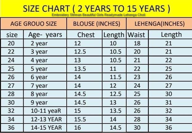 - Fabric Detail: Lehenga : Heavy Faux Georgette With Beautiful Sequence Embroidery Work With Fill Fill Border Design And Fancy Latkan Design Full Stiched, Inner : Micro Cotton, Blouse : Heavy Faux Georgette With Beautiful Embroidery Work Fully Stitched, Inner : Micro Cotton , Dupatta : Hevyy Chinon Silk With Beautiful Digital Printed And Embroidery Work Design For Rich Look , Size And Years : 20(2 Year), 22(3 Year), 24(4 Year),25(5 Year), 26(6 Year), 27(7 Year), 28(8 Year), 30(9 Year), 32(10-11 Year ), 34 (12-13 Year ), 36(14-15 Year) Size Chart Available