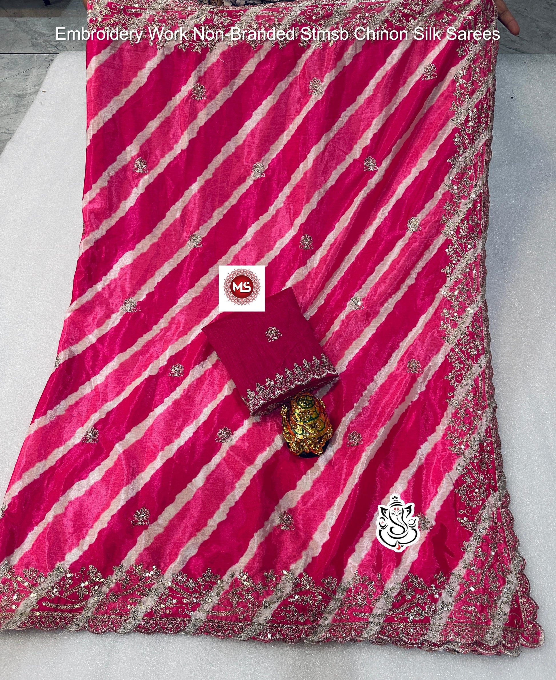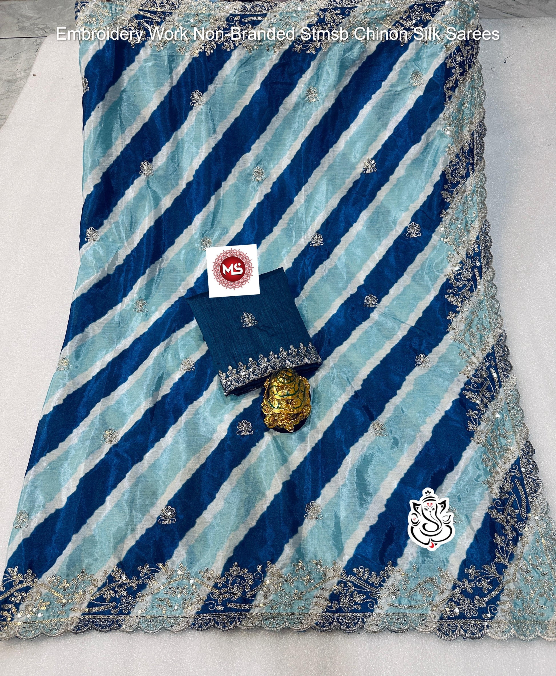 Embroidery Work Non-Branded Stmsb Chinon Silk Sarees