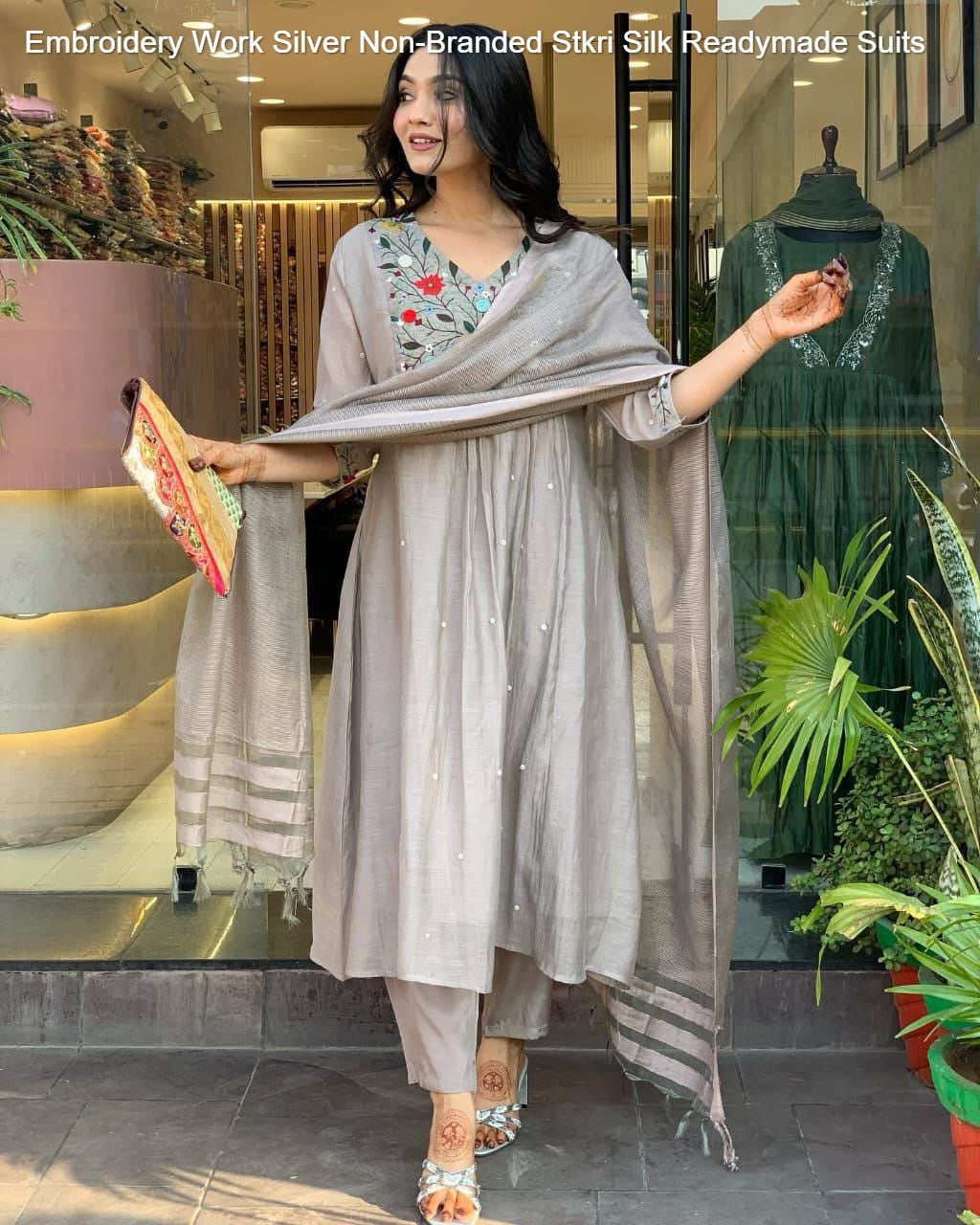 - Embroidery Work Silver Non-Branded Stkri Silk Readymade Suits Dealer Ahmedabad Surat Wholesale Gujarat India Lowest Price Best Quality Buy Purchase Shipping Kurta Salwaar Kameez Also free Cash on delivery