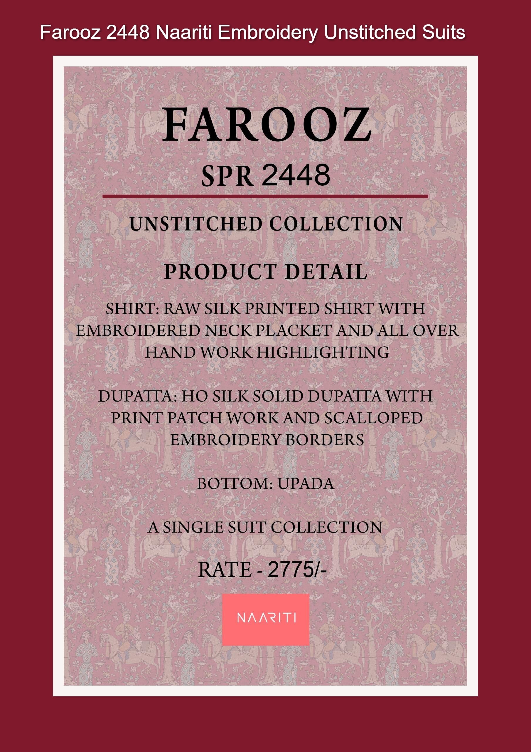 - Farooz 2448 Naariti Embroidery Unstitched Suits Dealer Ahmedabad Surat Wholesale Gujarat India Lowest Price Best Quality Buy Purchase Shipping Kurta Salwaar Kameez Also free Cash on delivery