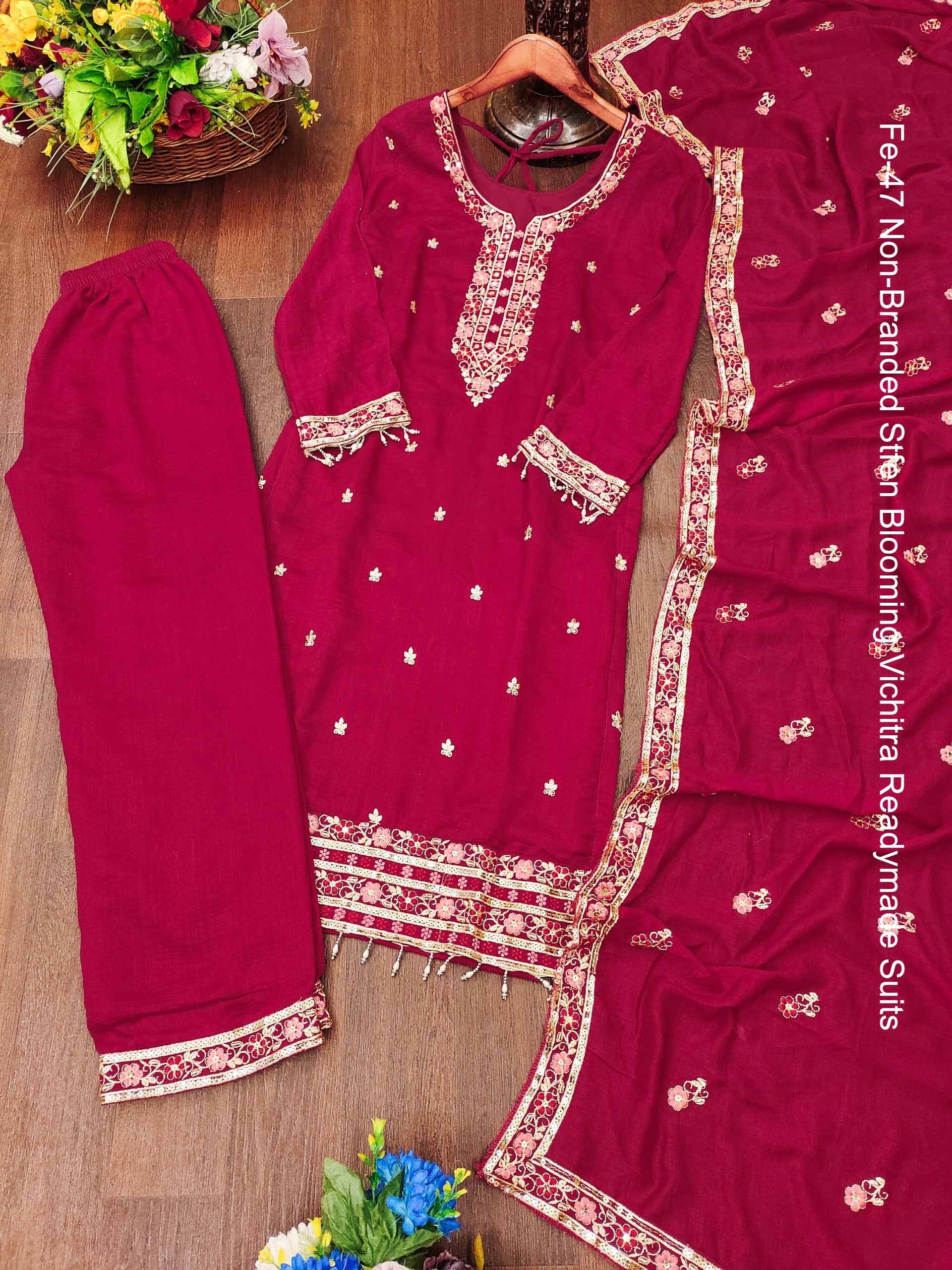 Fe-47 Non-Branded Stfen Blooming Vichitra Readymade Suits