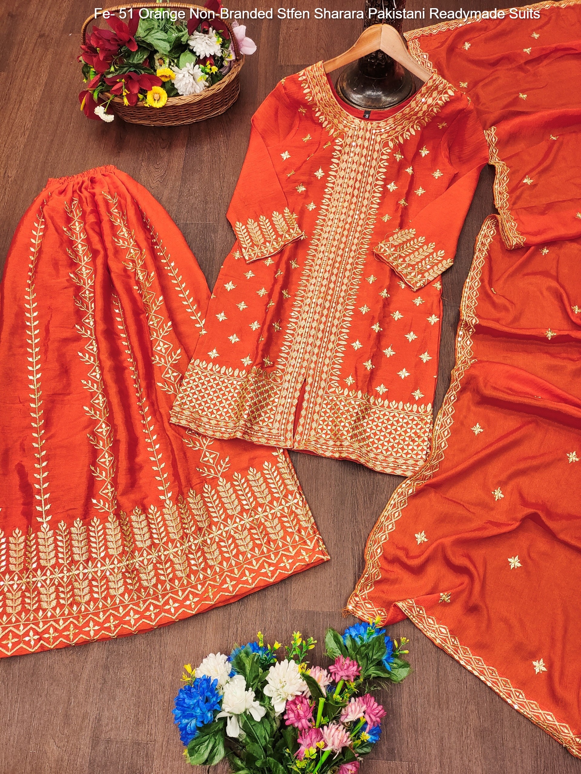 Fe- 51 Orange Non-Branded Stfen Sharara Pakistani Readymade Suits