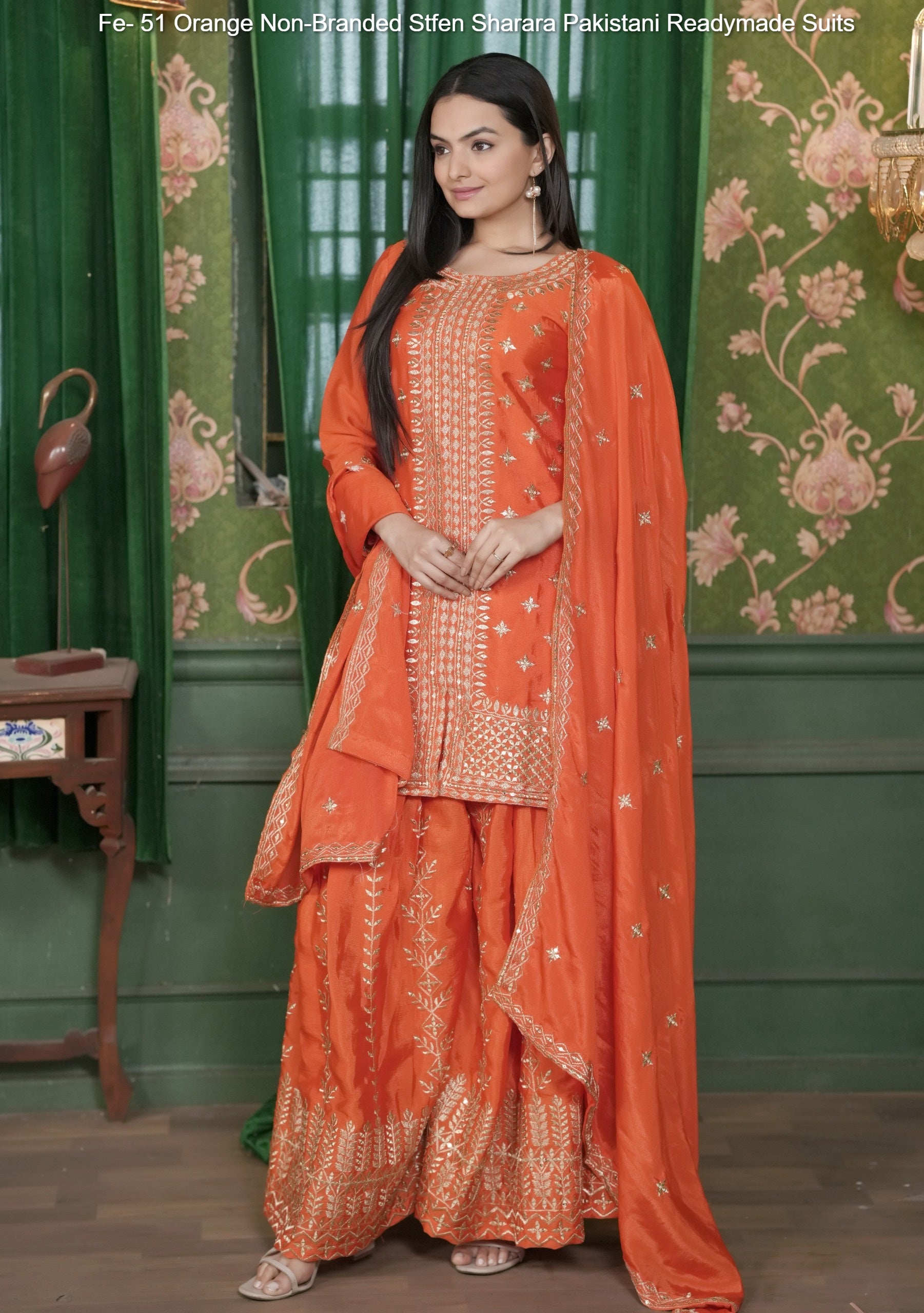 - Fe- 51 Orange Non-Branded Stfen Sharara Pakistani Readymade Suits Dealer Ahmedabad Surat Wholesale Gujarat India Lowest Price Best Quality Buy Purchase Shipping Kurta Salwaar Kameez Also free Cash on delivery