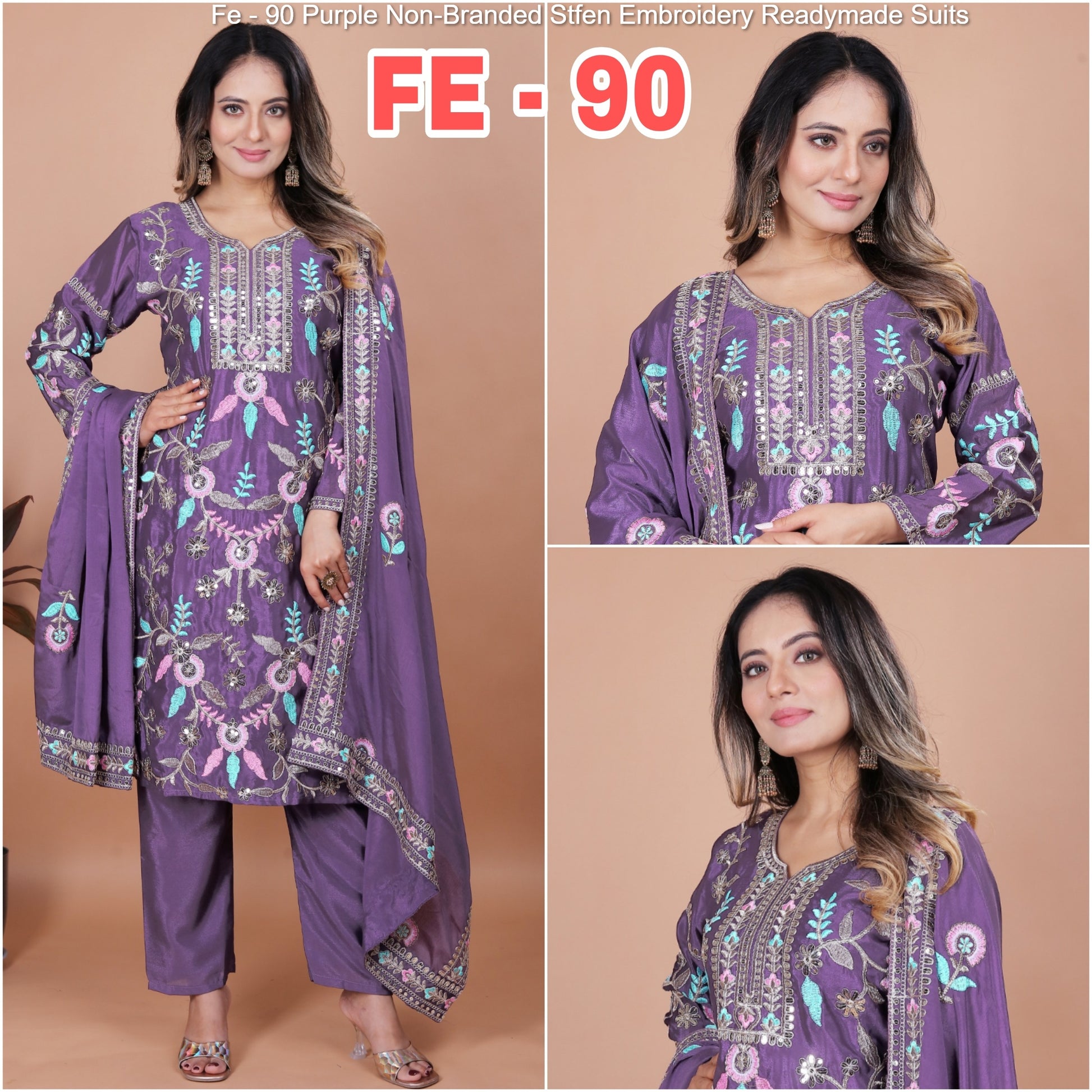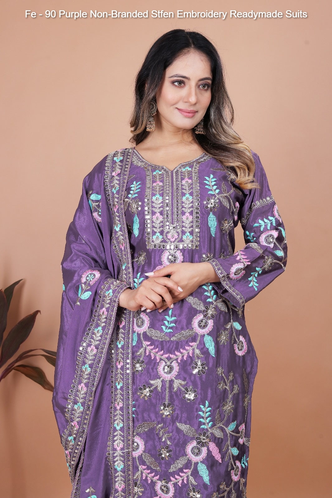Fe - 90 Purple Non-Branded Stfen Embroidery Readymade Suits