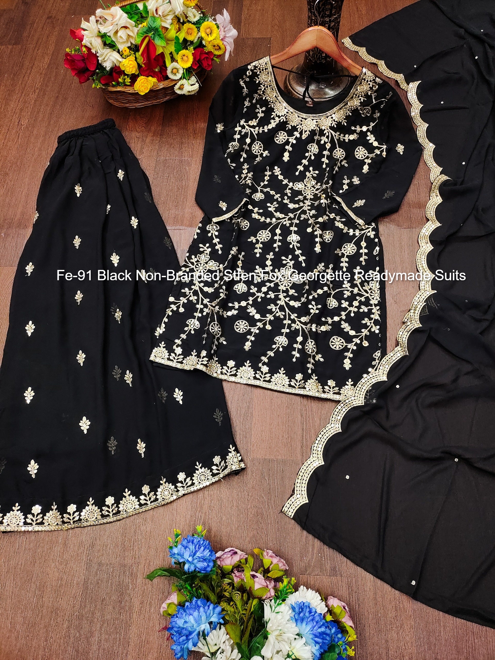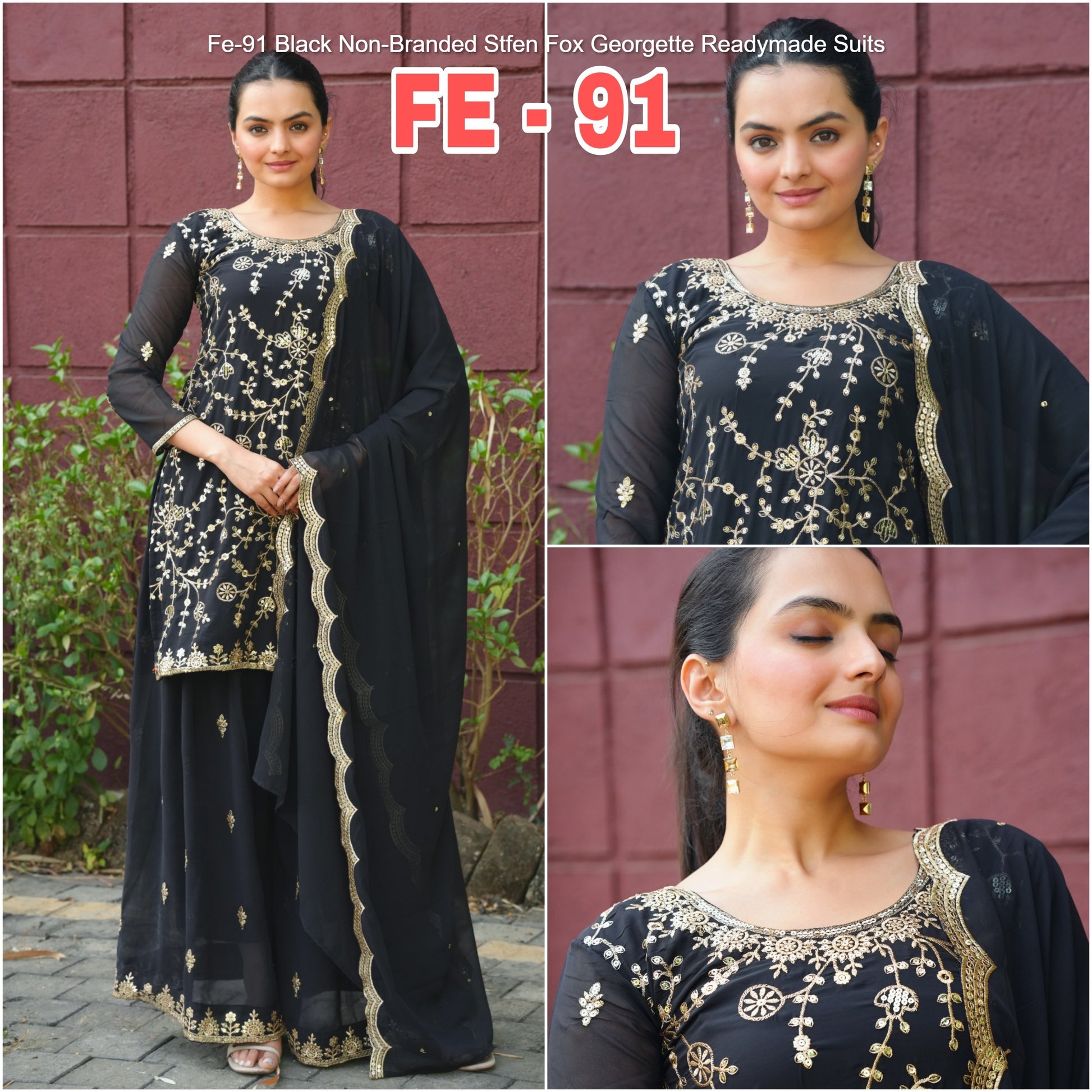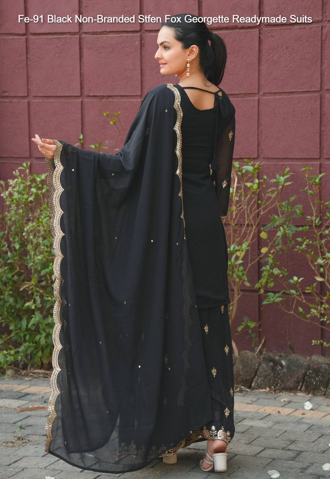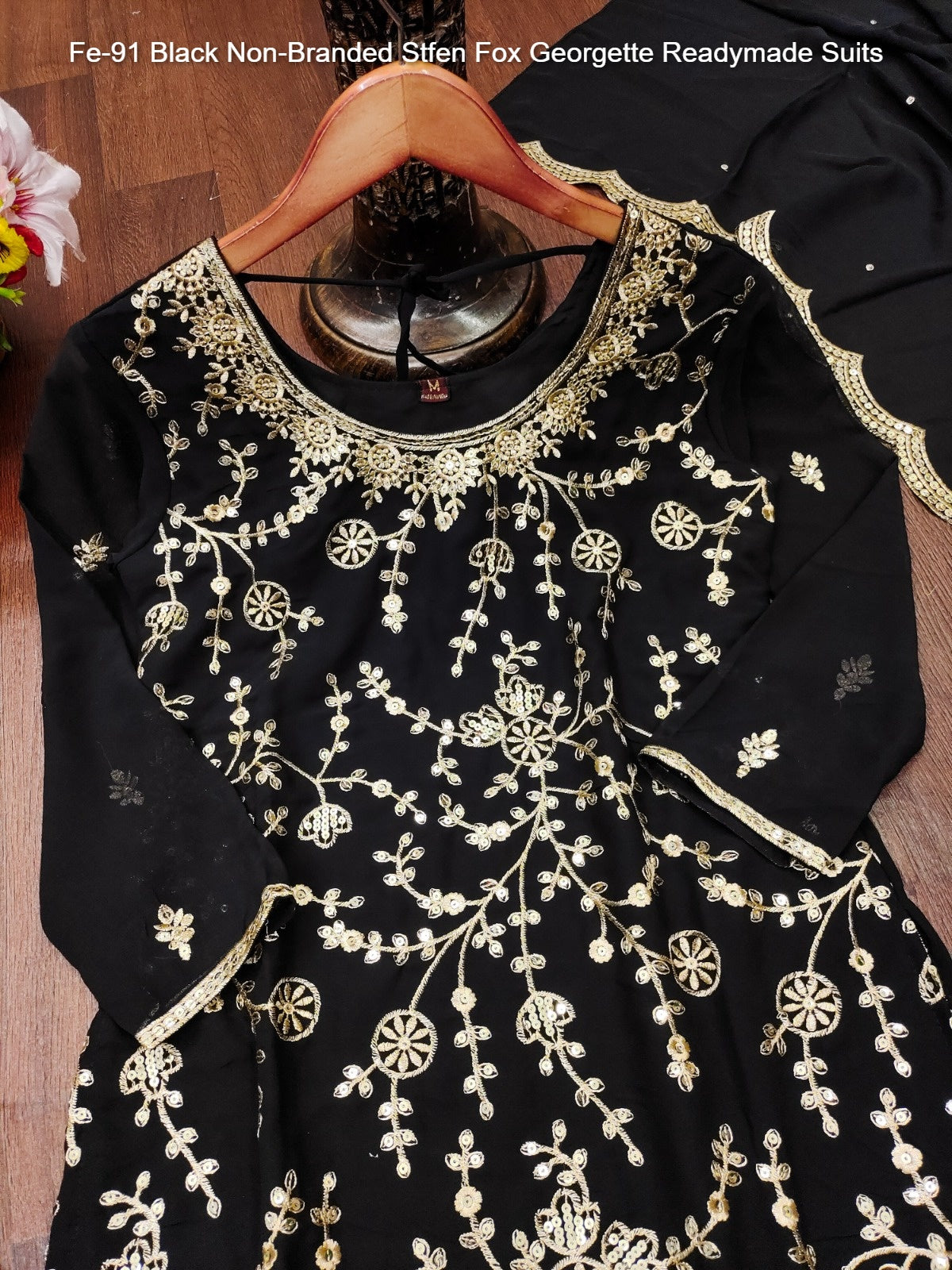 Fe-91 Black Non-Branded Stfen Fox Georgette Readymade Suits