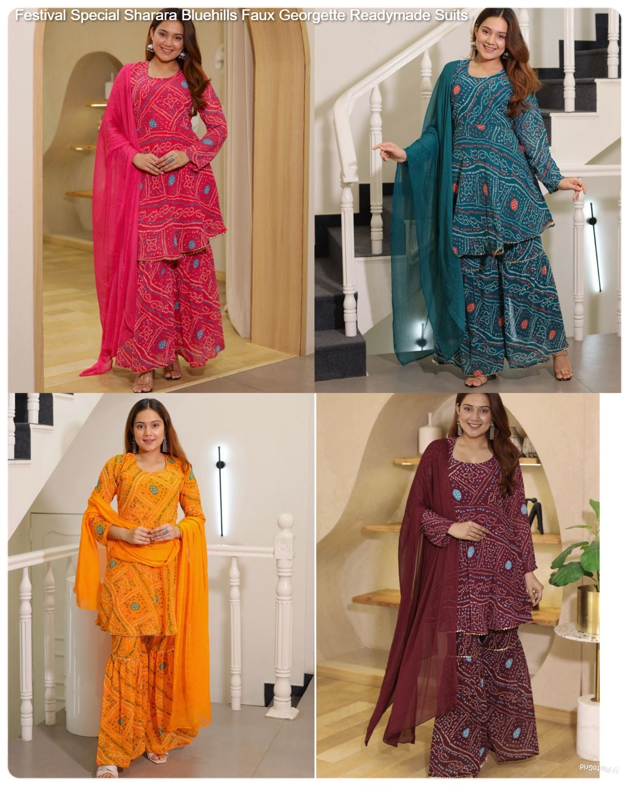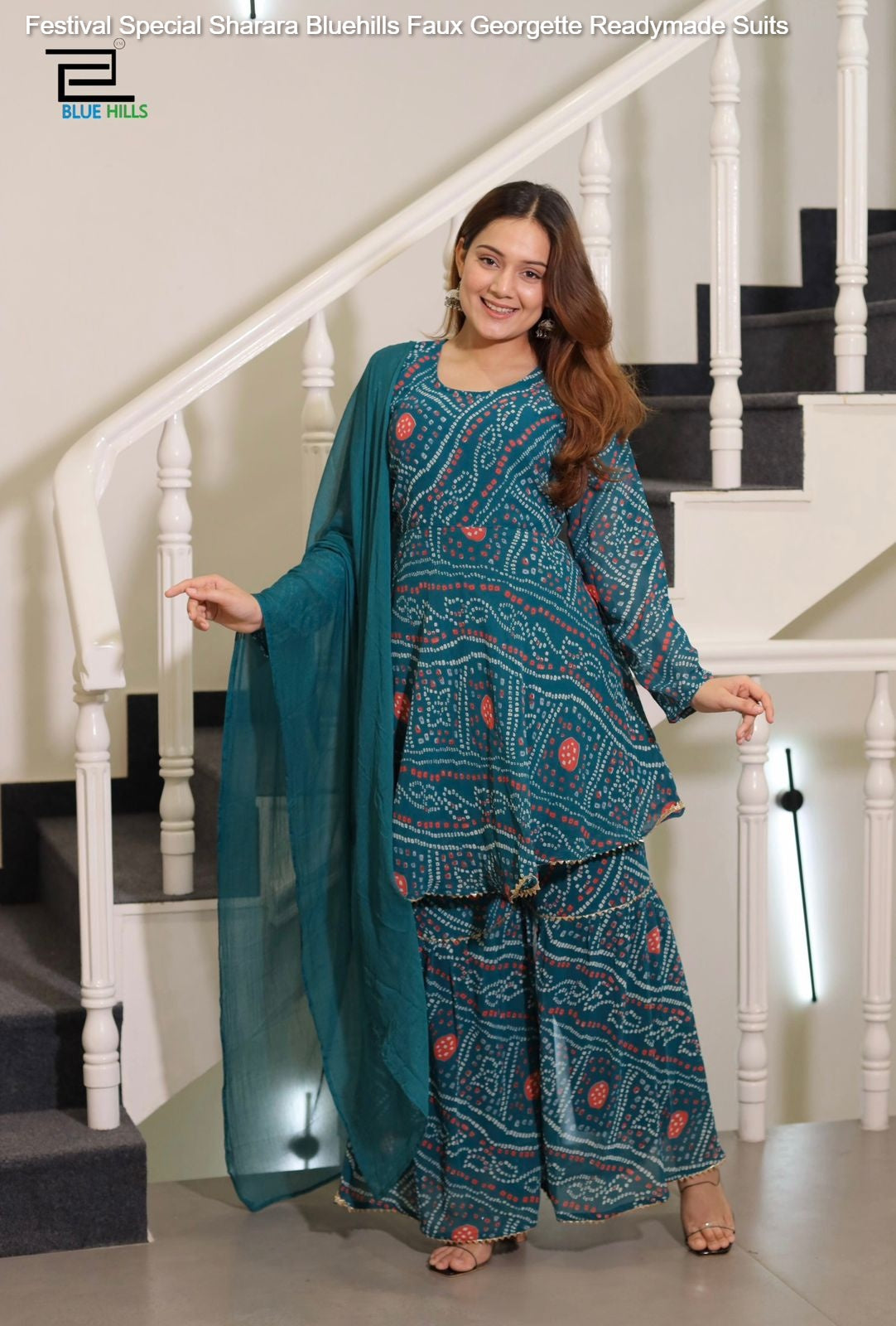 - Festival Special Sharara Bluehills Faux Georgette Readymade Suits Dealer Ahmedabad Surat Wholesale Gujarat India Lowest Price Best Quality Buy Purchase Shipping Kurta Salwaar Kameez Also free Cash on delivery