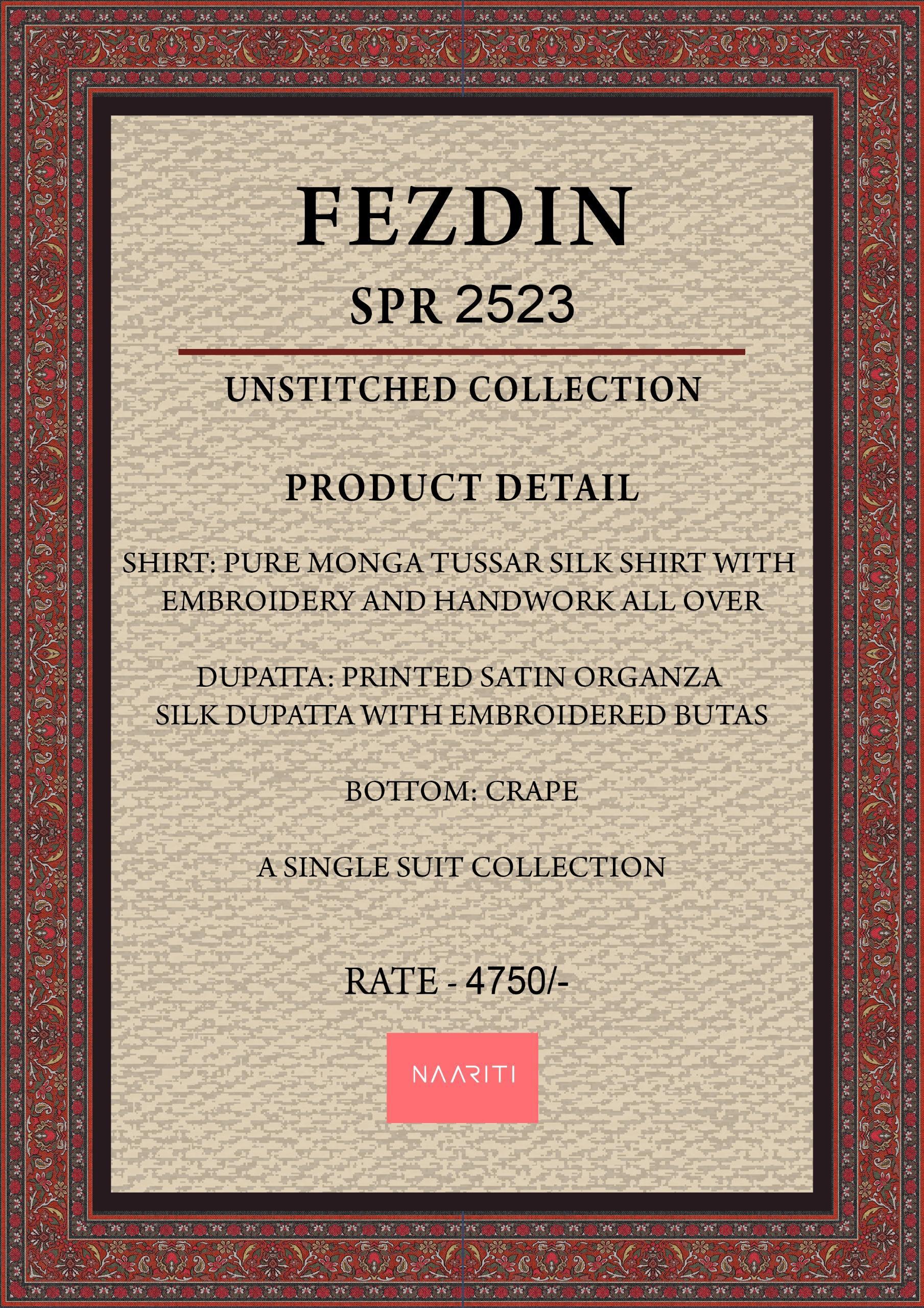 - Fezdin 2523 Naariti Tussar Silk Unstitched Suits Dealer Ahmedabad Surat Wholesale Gujarat India Lowest Price Best Quality Buy Purchase Shipping Kurta Salwaar Kameez Also free Cash on delivery
