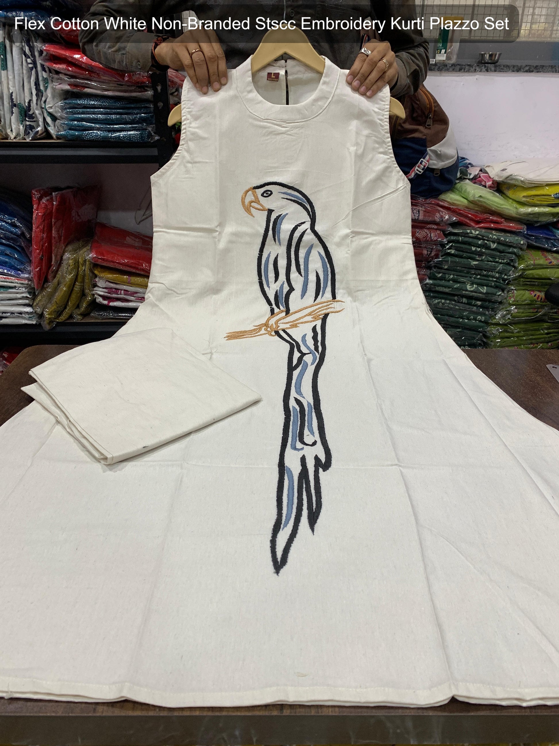 - Flex Cotton White Non-Branded Stscc Embroidery Kurti Plazzo Set Dealer Ahmedabad Surat Wholesale Gujarat India Lowest Price Best Quality Buy Purchase Shipping Kurta Salwaar Kameez Also free Cash on delivery