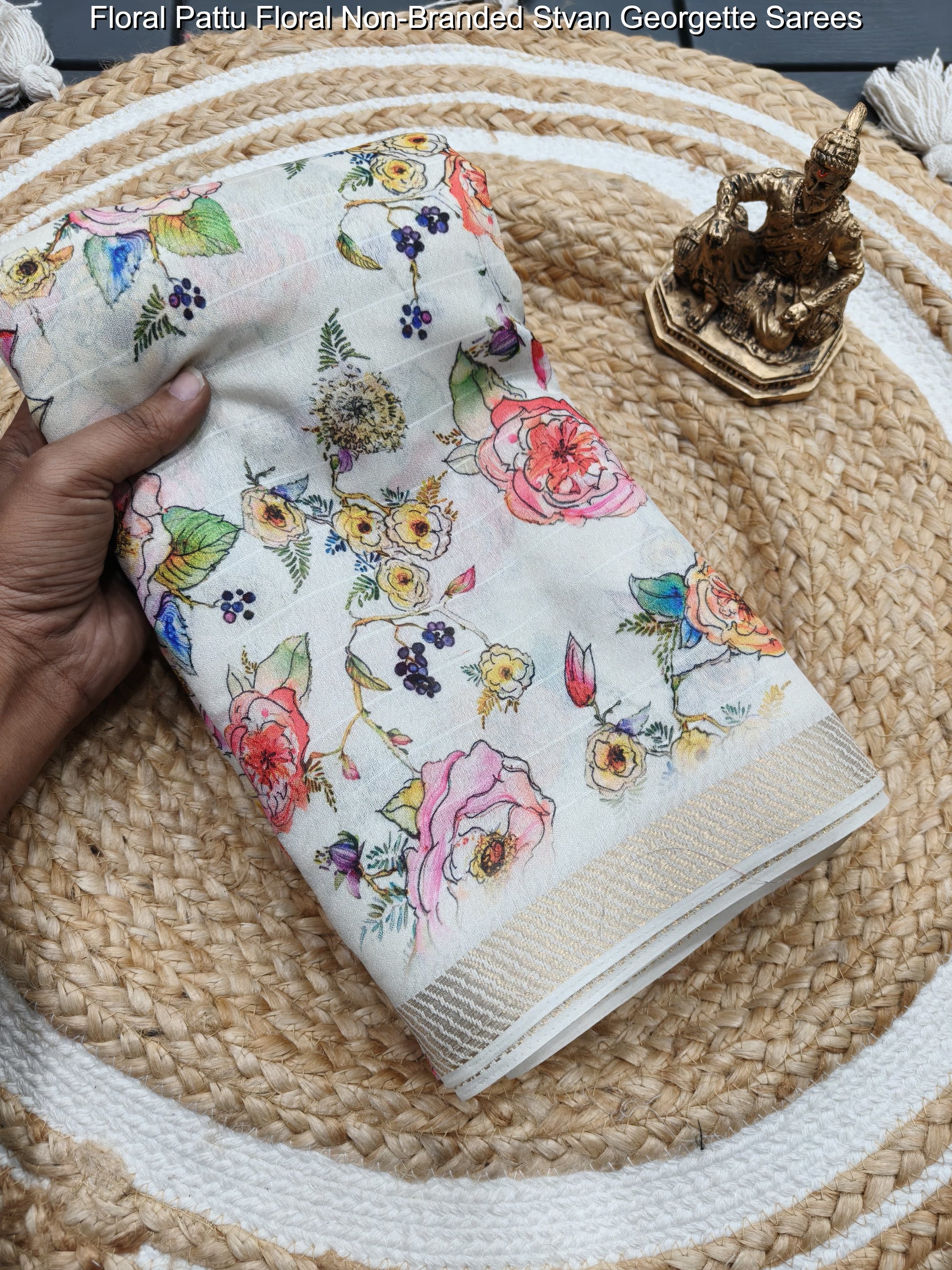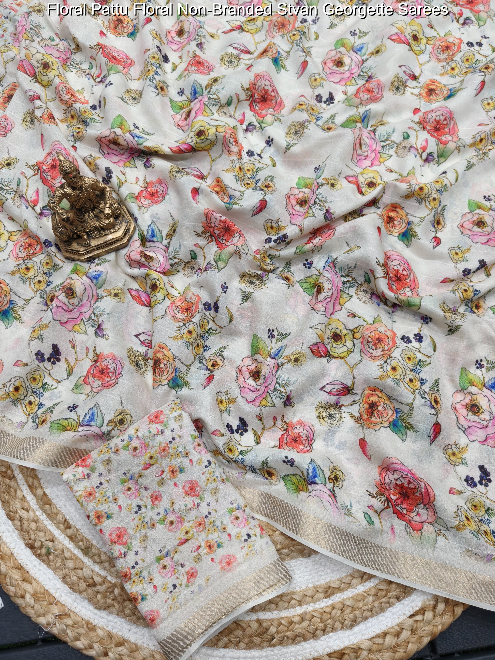 Floral Pattu Floral Non-Branded Stvan Georgette Sarees