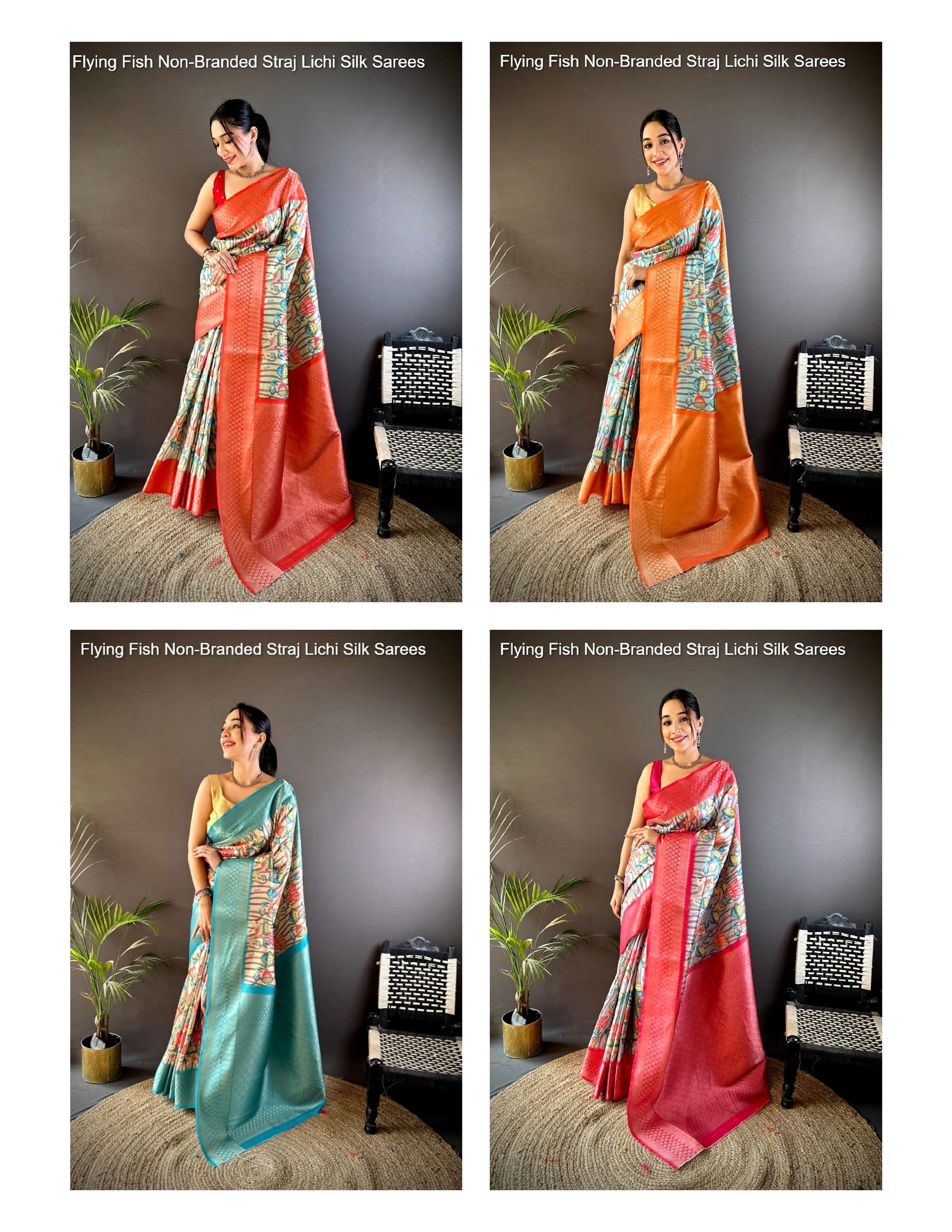Flying Fish Non-Branded Straj Lichi Silk Sarees