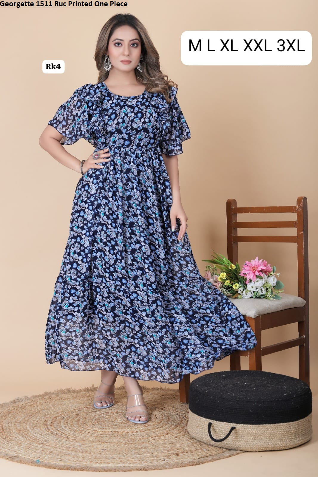 - Fabric Detail: Georgette Printed Long Maxi Party Wear One Piece, Length : 52 Apx , , , Size : S, M, L, Xl, 2Xl, 3Xl