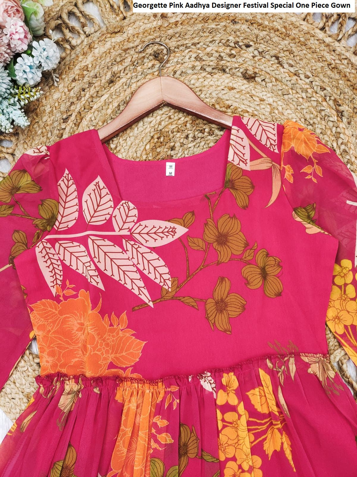 Georgette Pink Aadhya Designer Festival Special One Piece Gown