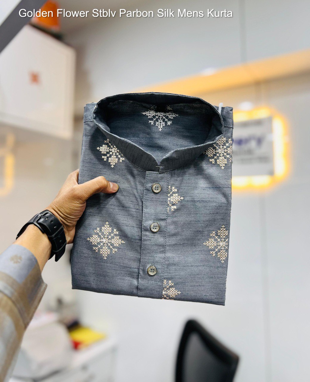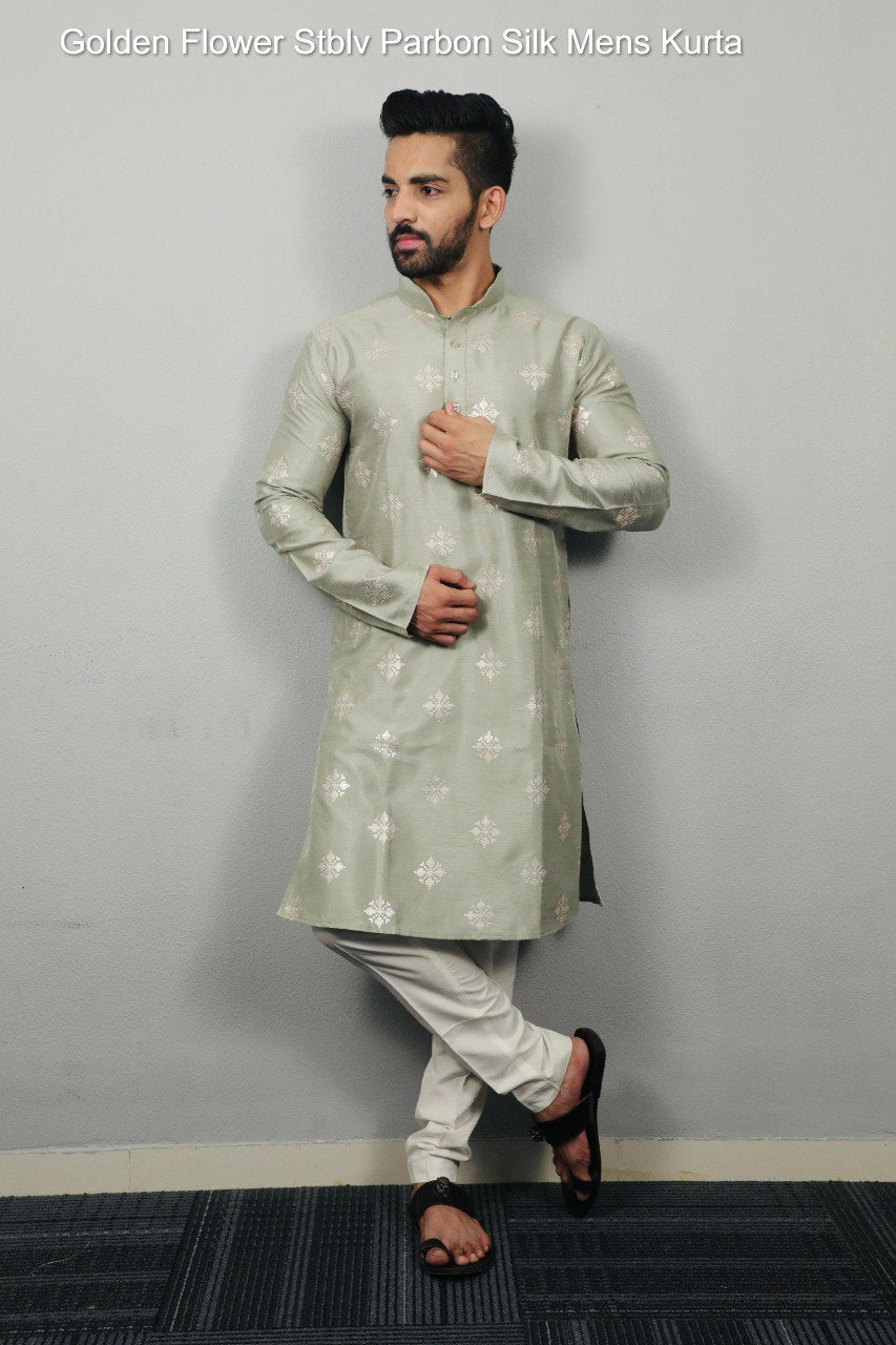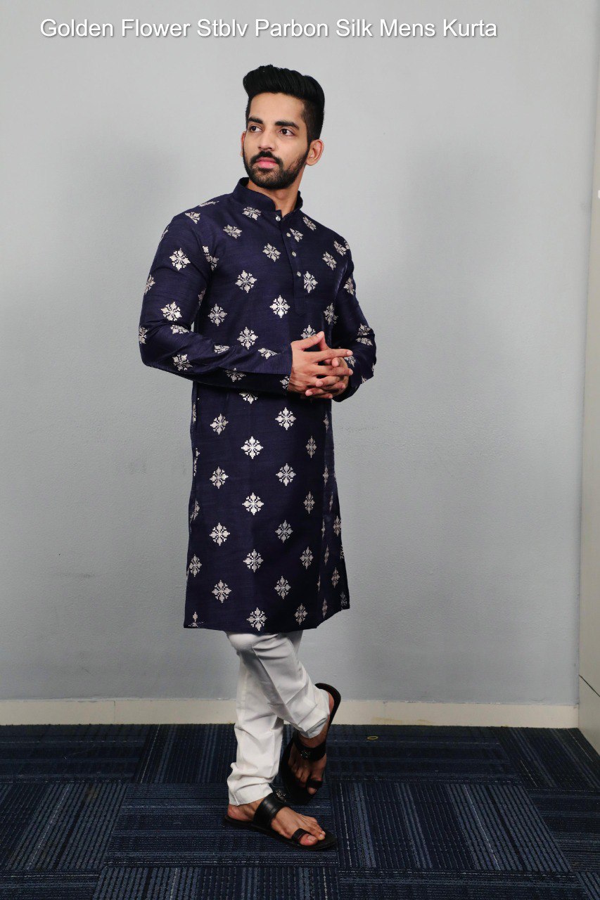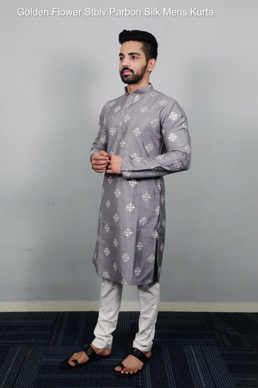 Golden Flower Stblv Parbon Silk Mens Kurta