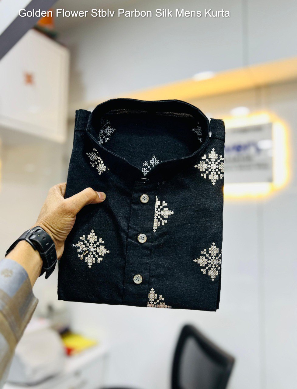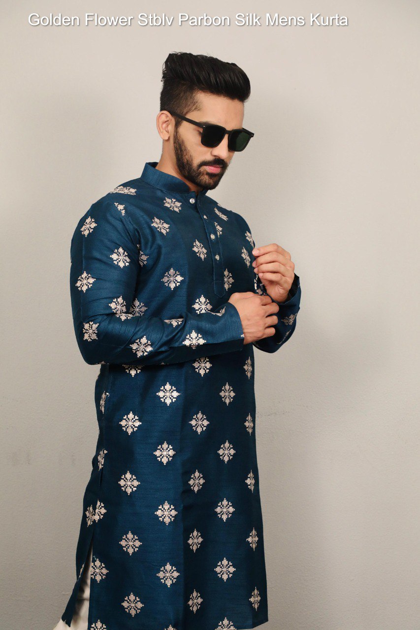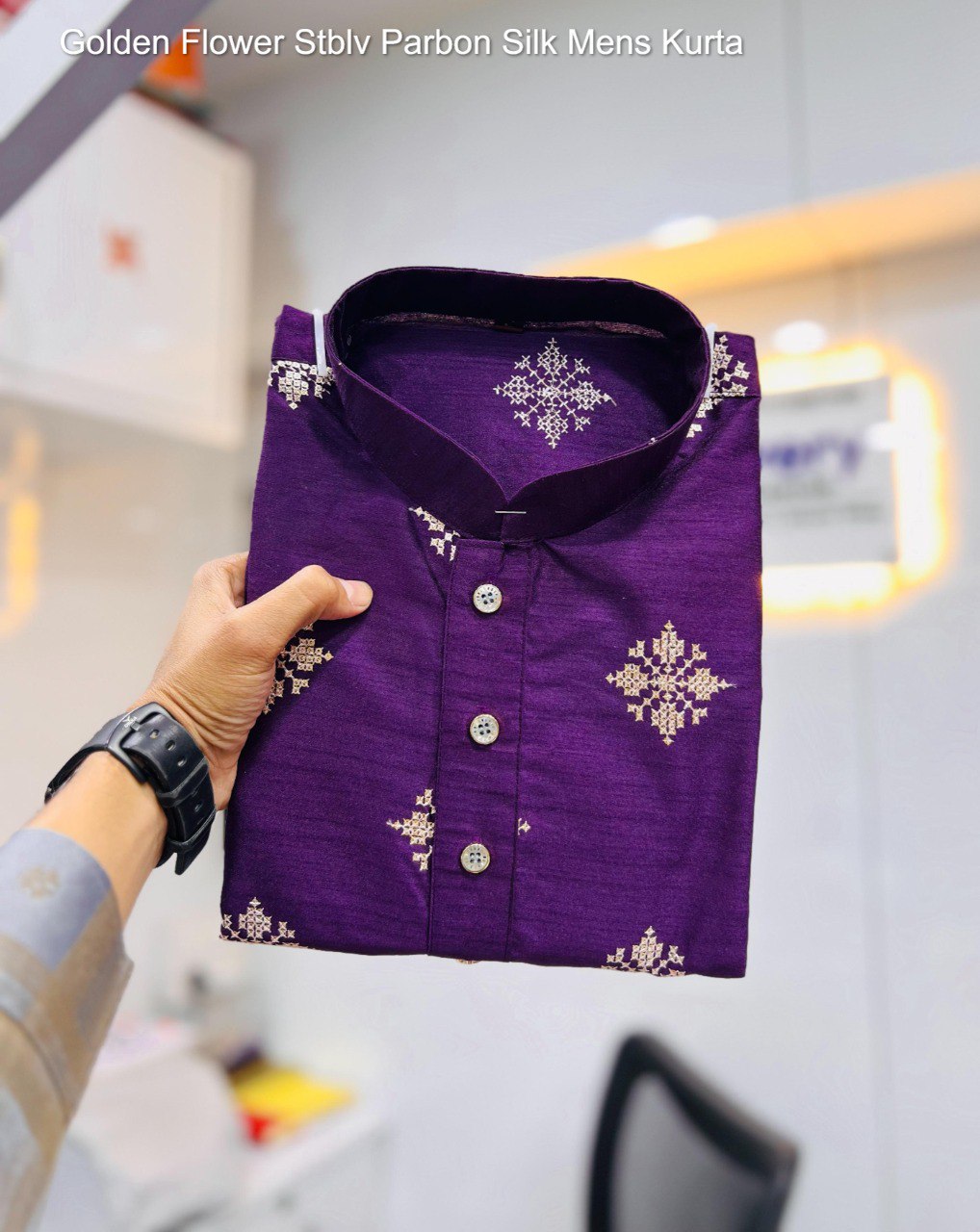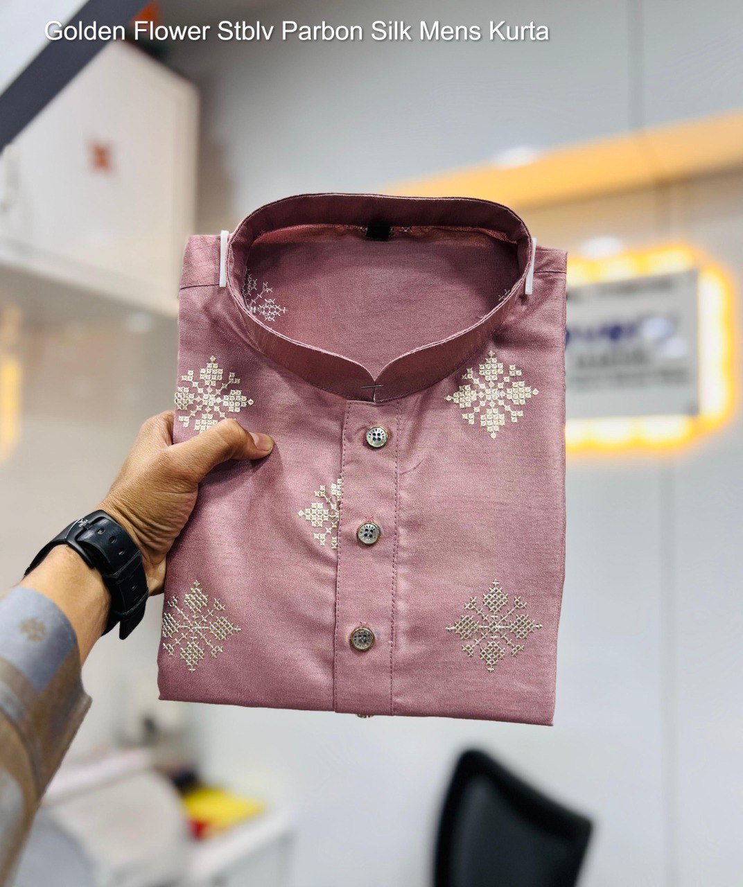 Golden Flower Stblv Parbon Silk Mens Kurta
