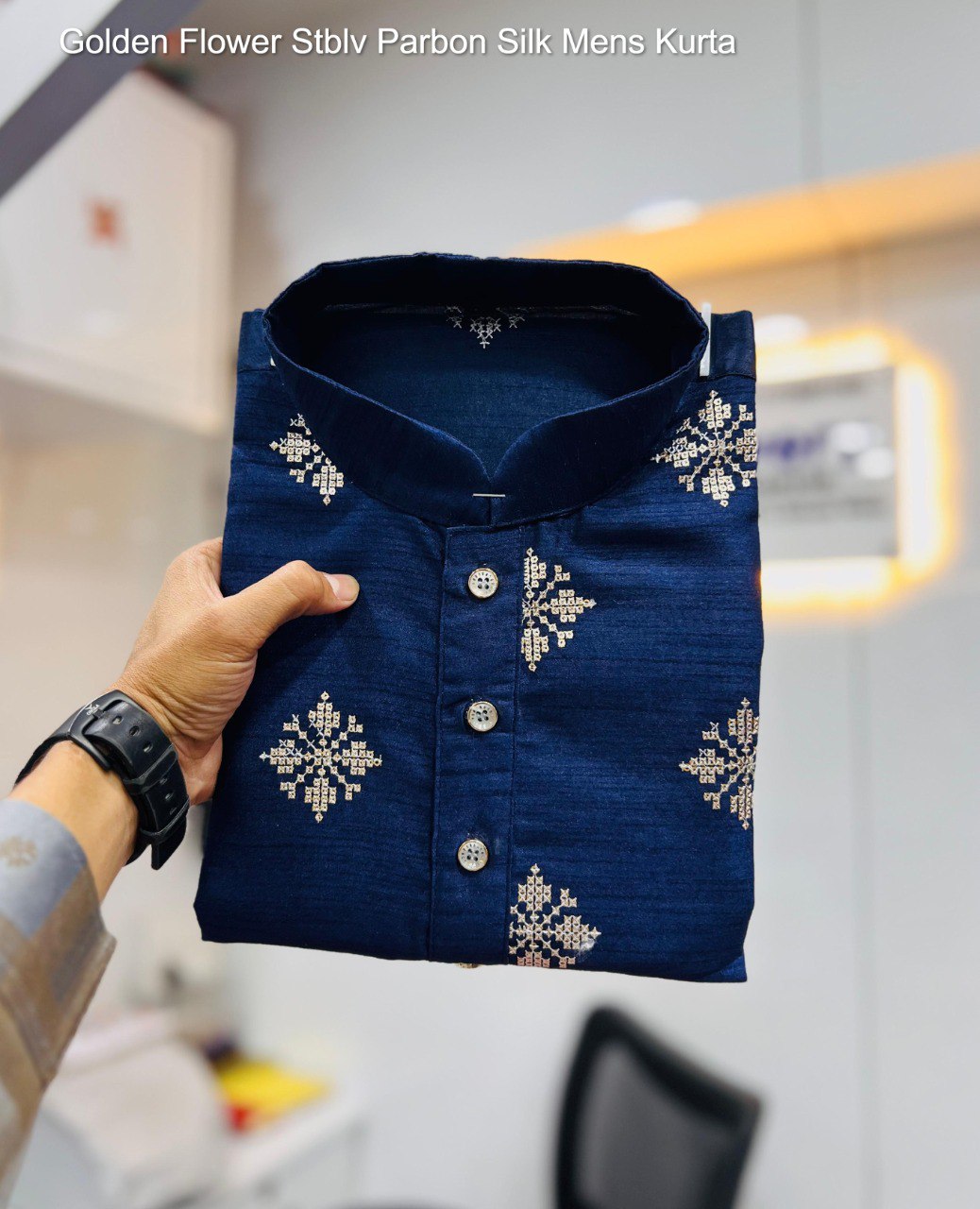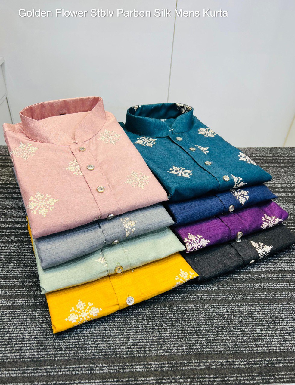- Golden Flower Stblv Parbon Silk Mens Kurta Dealer Ahmedabad Surat Wholesale Gujarat India Lowest Price Best Quality Buy Purchase Shipping Kurta Salwaar Kameez Also free Cash on delivery