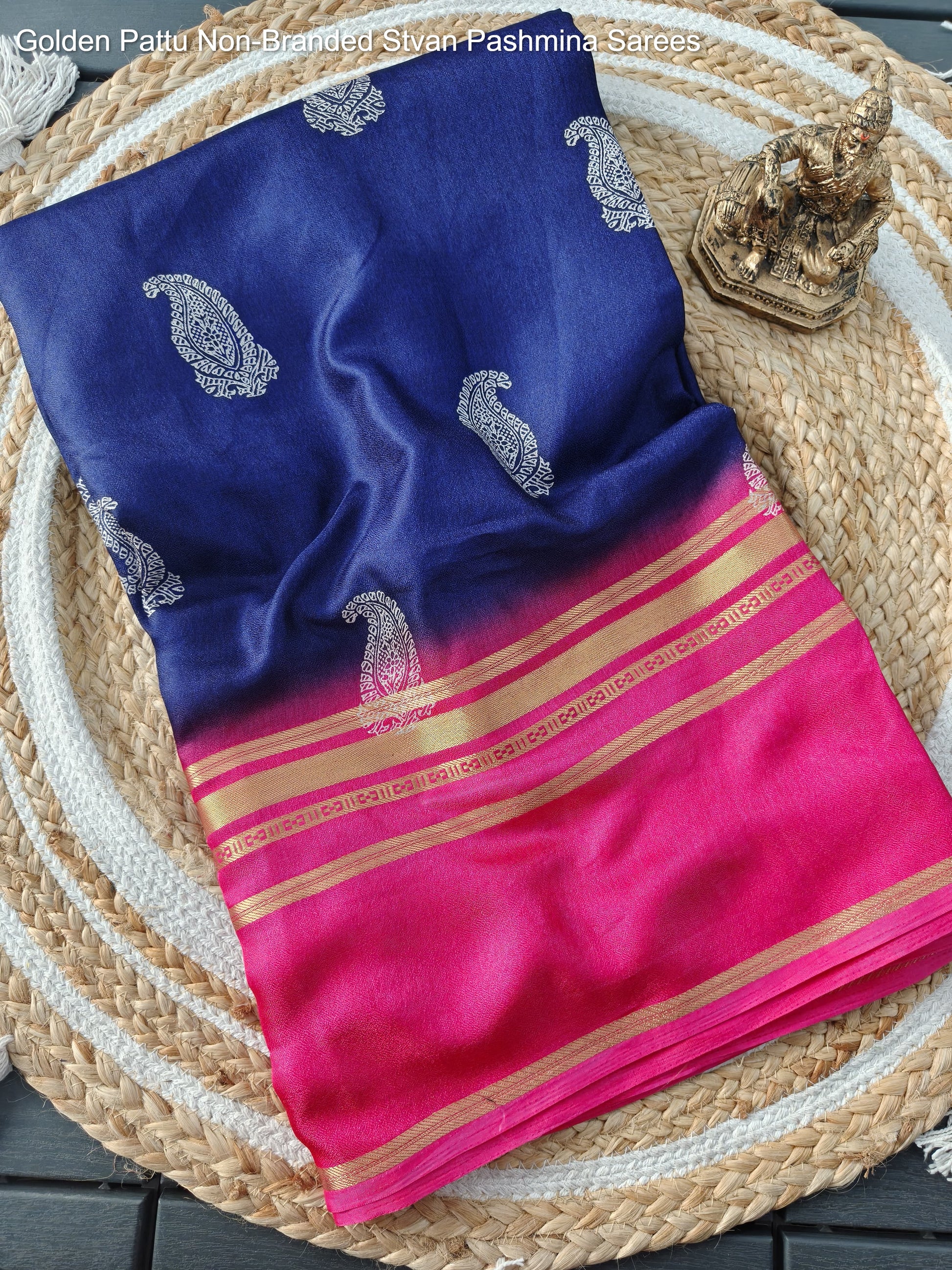 Golden Pattu Non-Branded Stvan Pashmina Sarees