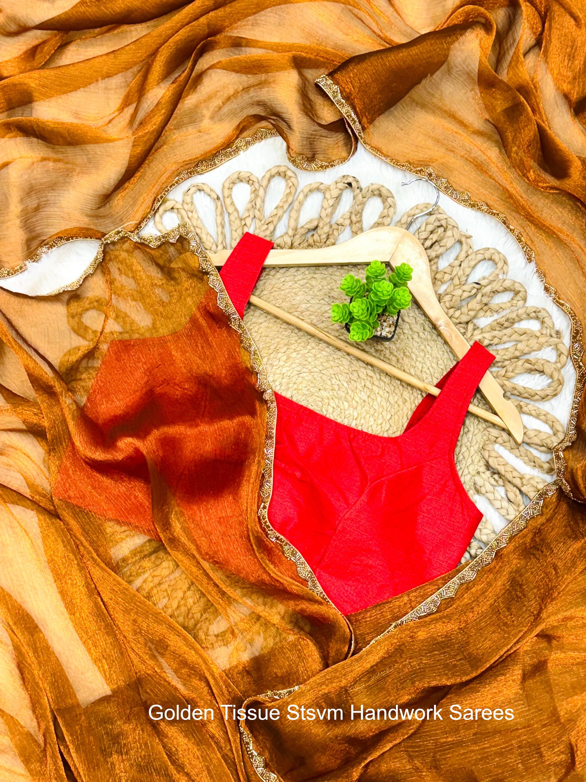 - Golden Tissue Stsvm Handwork Sarees Dealer Ahmedabad Surat Wholesale Gujarat India Lowest Price Best Quality Buy Purchase Shipping Kurta Salwaar Kameez Also free Cash on delivery