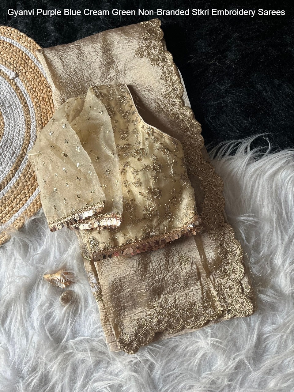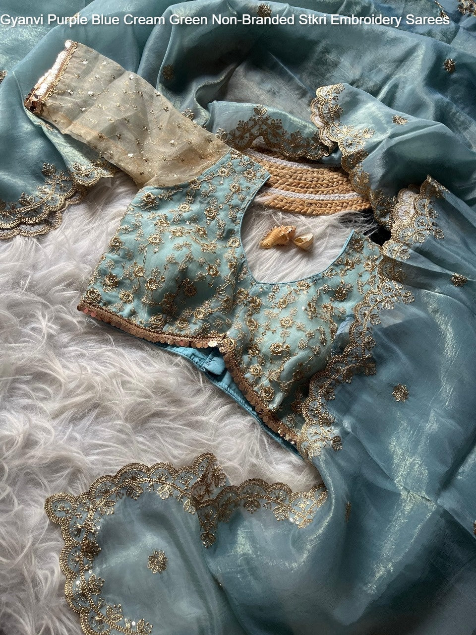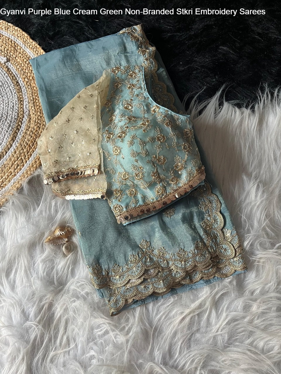- Gyanvi Purple Blue Cream Green Non-Branded Stkri Embroidery Sarees Dealer Ahmedabad Surat Wholesale Gujarat India Lowest Price Best Quality Buy Purchase Shipping Kurta Salwaar Kameez Also free Cash on delivery
