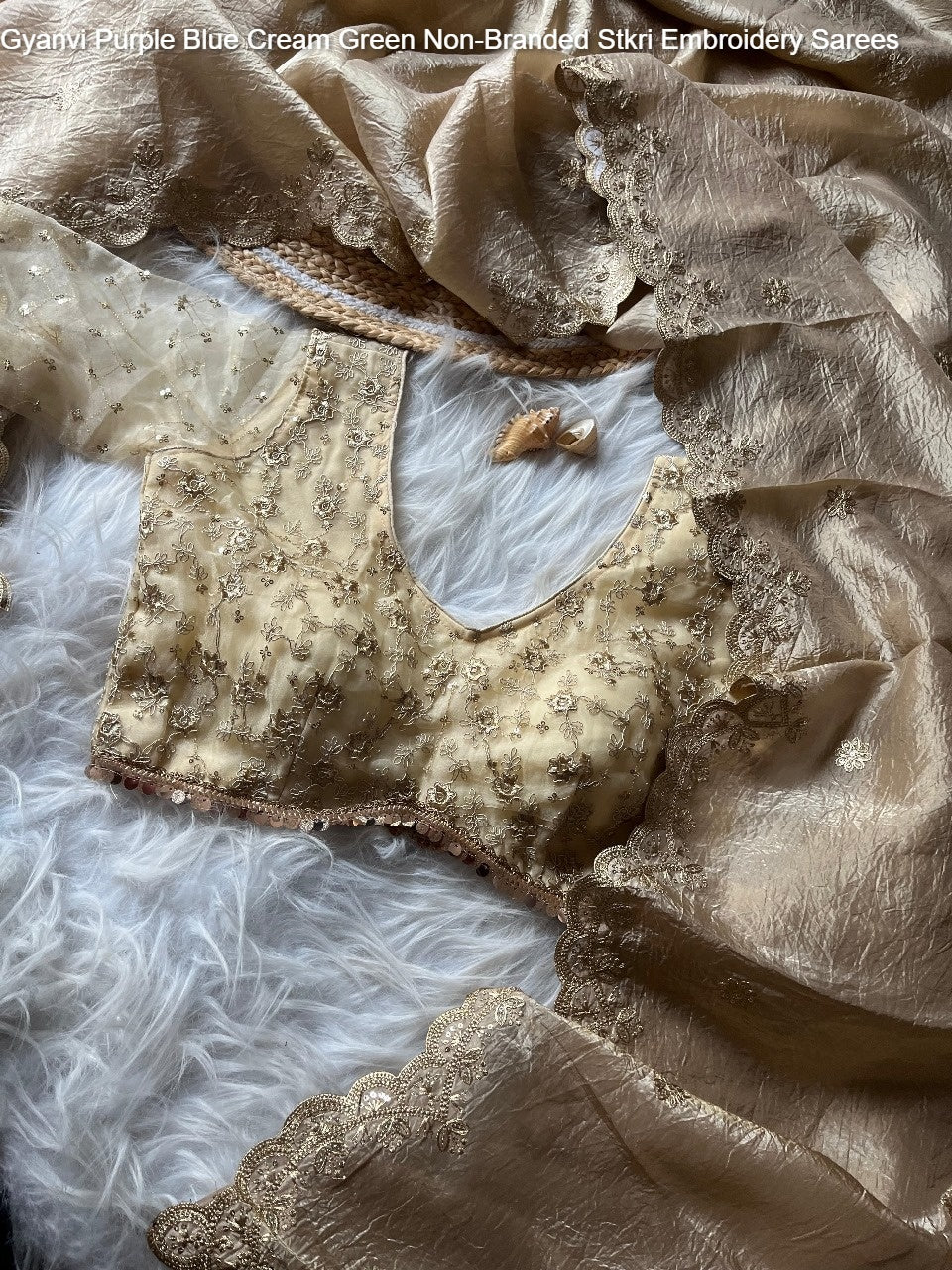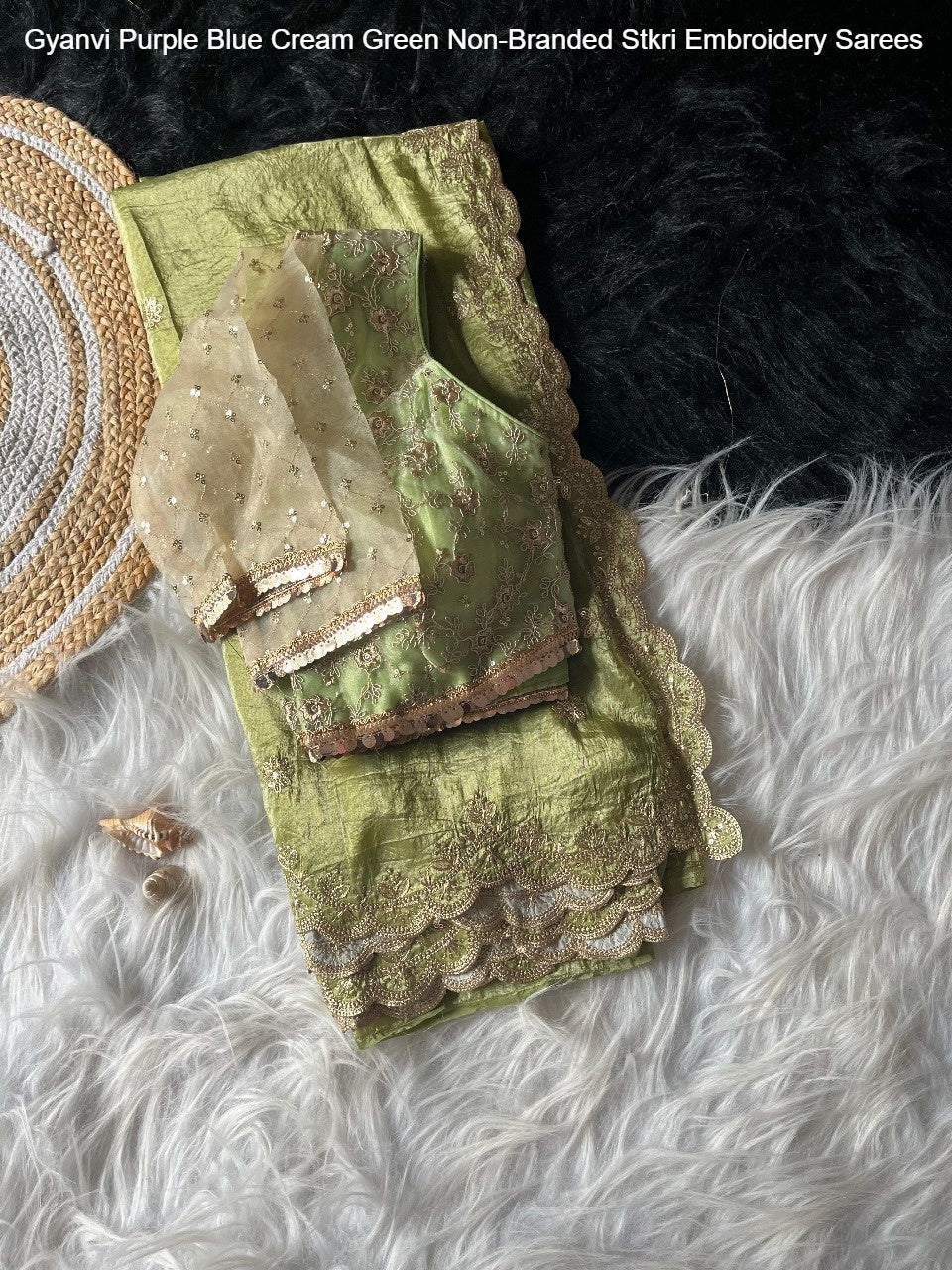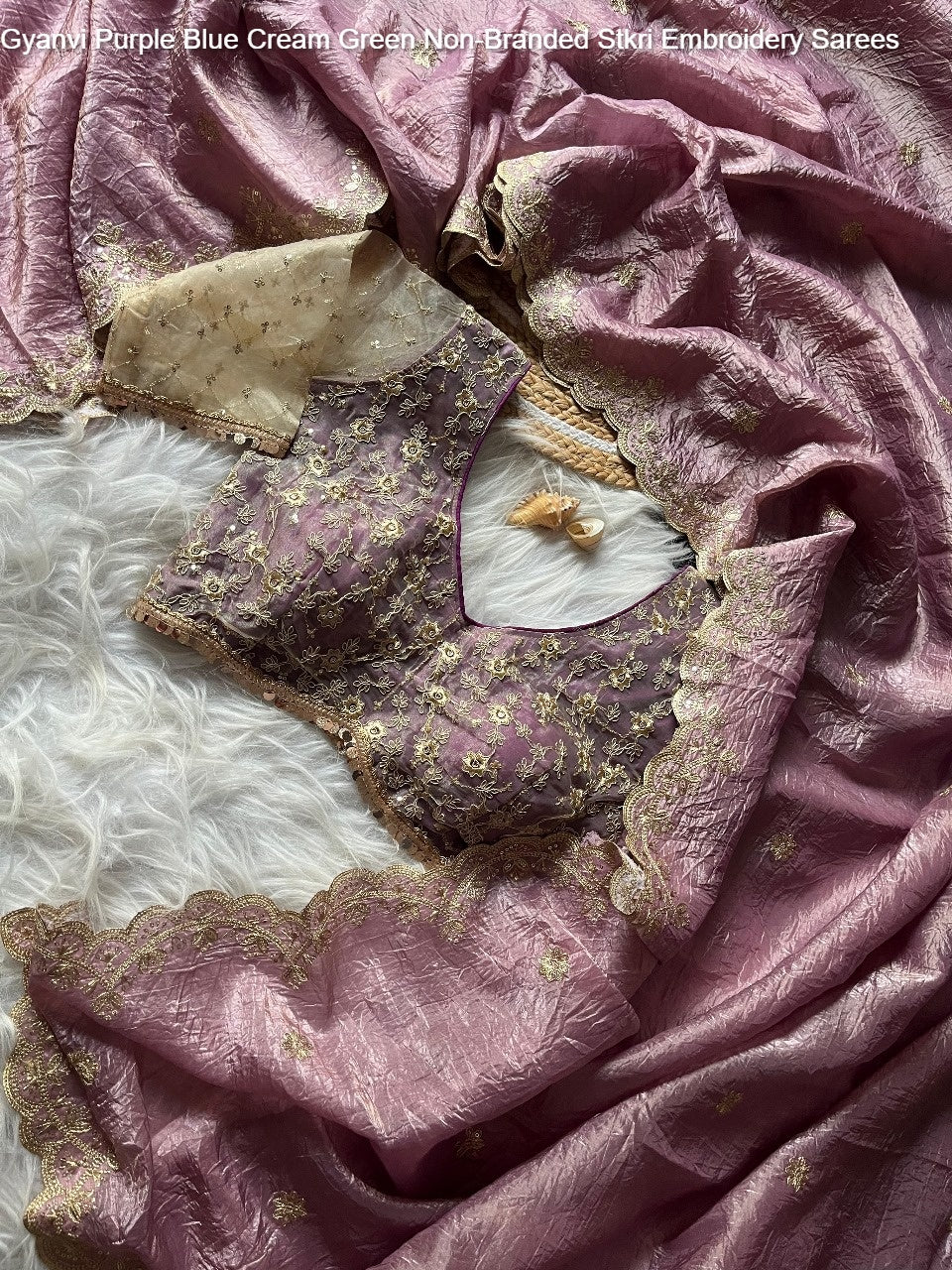Gyanvi Purple Blue Cream Green Non-Branded Stkri Embroidery Sarees