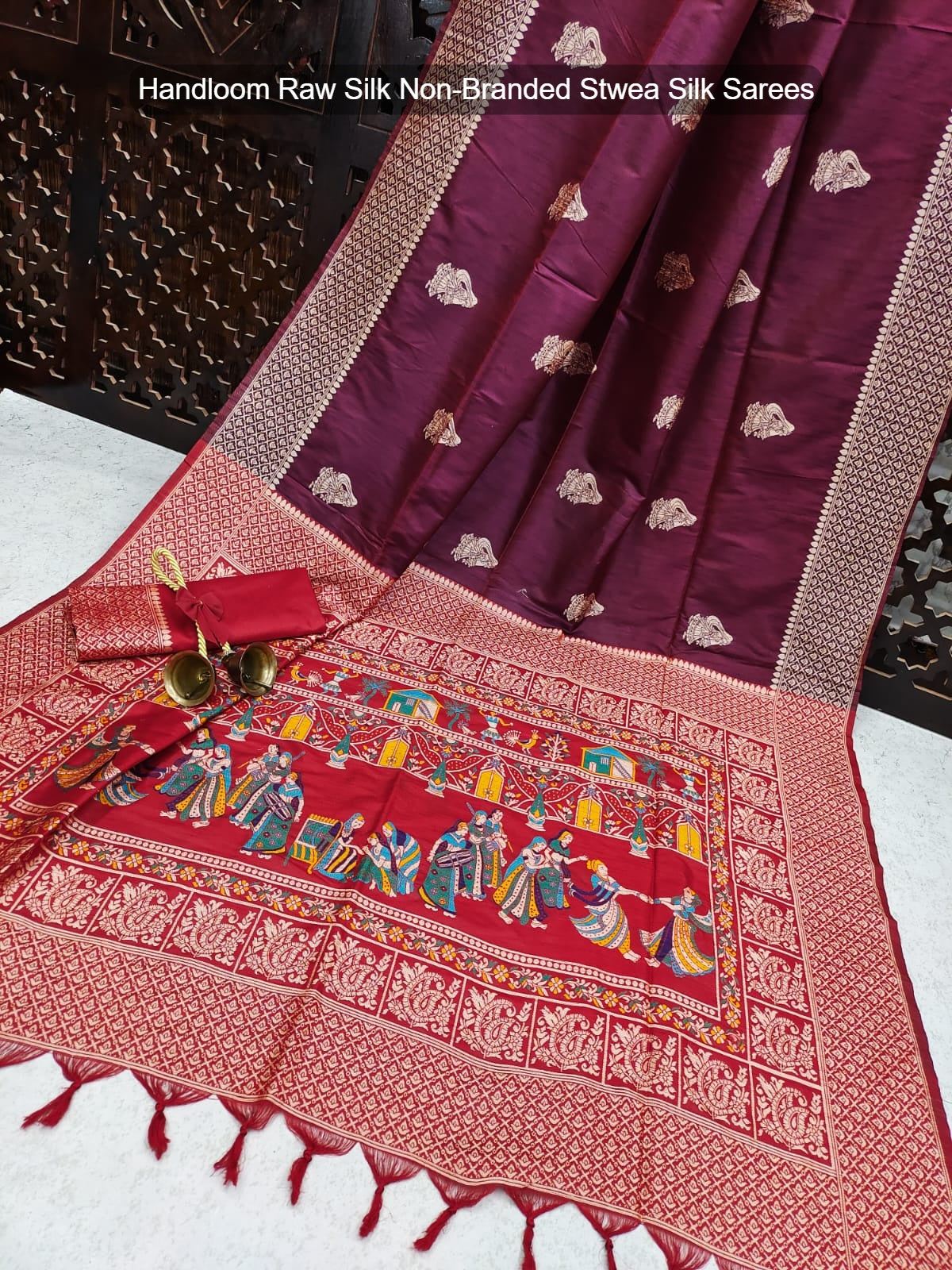 Handloom Raw Silk Non-Branded Stwea Silk Sarees