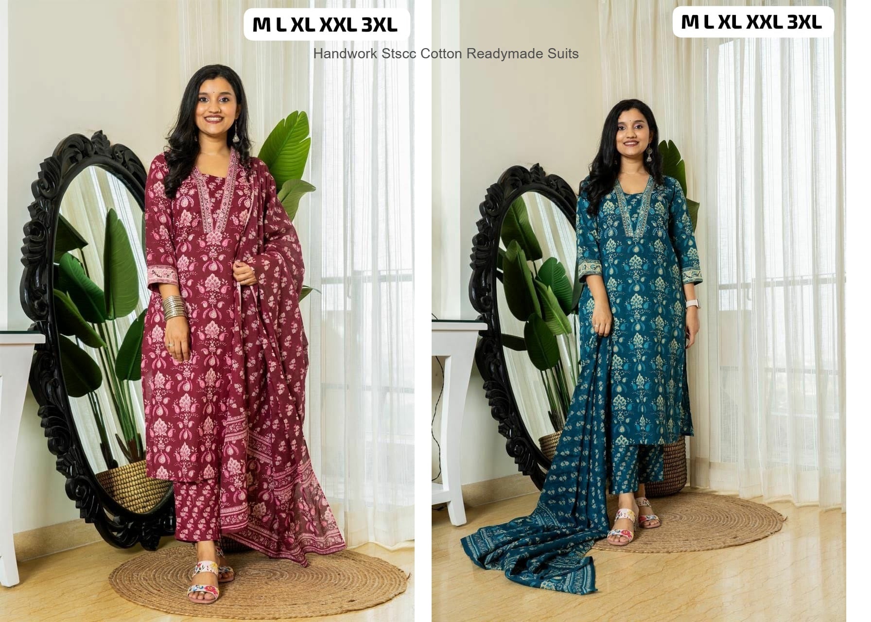 - Fabric Detail: Top : Soft Cotton With Handwork , Bottom : Cotton , Dupatta : Cotton Print , Size : M, L, Xl, 2Xl, 3Xl