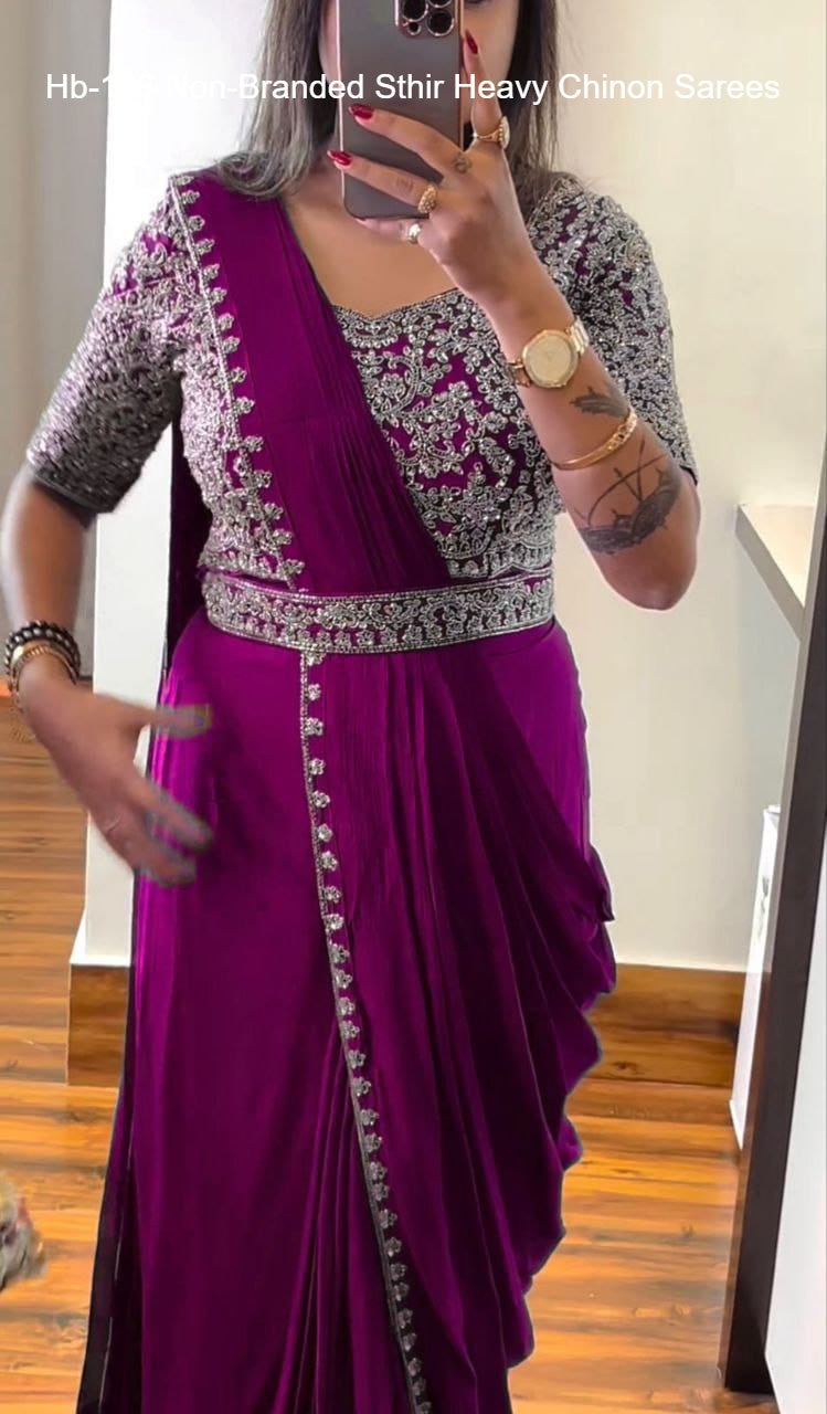 Hb-103 Non-Branded Sthir Heavy Chinon Sarees