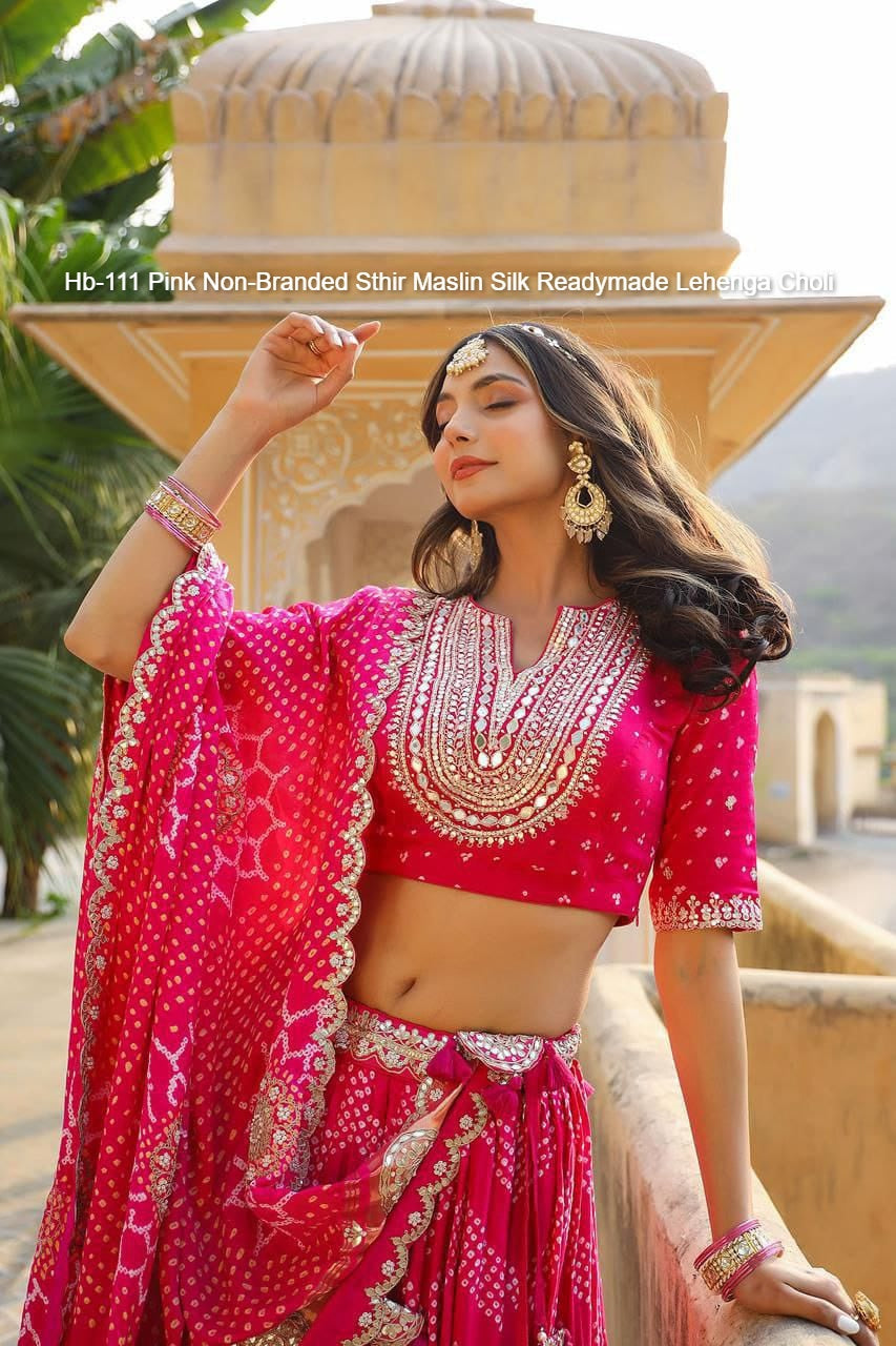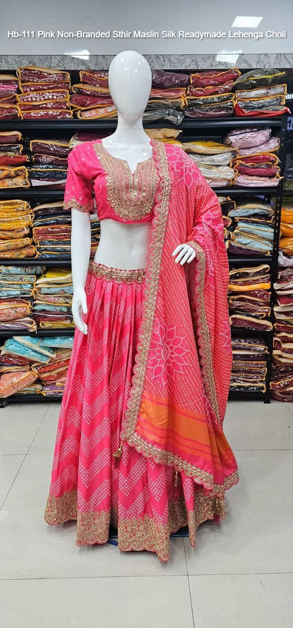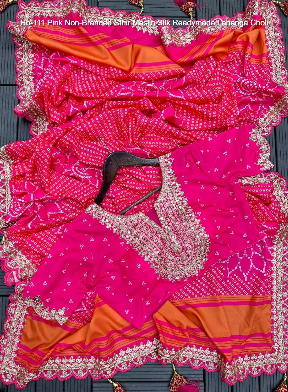 Hb-111 Pink Non-Branded Sthir Maslin Silk Readymade Lehenga Choli