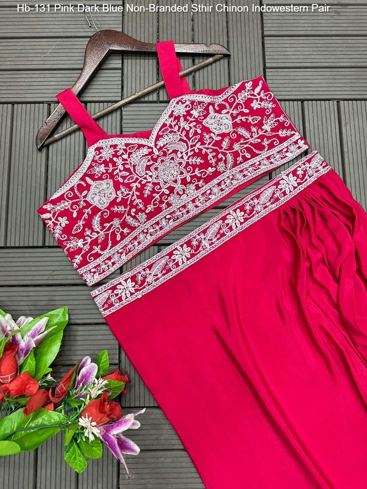 - Hb-131 Pink Dark Blue Non-Branded Sthir Chinon Indowestern Pair Dealer Ahmedabad Surat Wholesale Gujarat India Lowest Price Best Quality Buy Purchase Shipping Kurta Salwaar Kameez Also free Cash on delivery