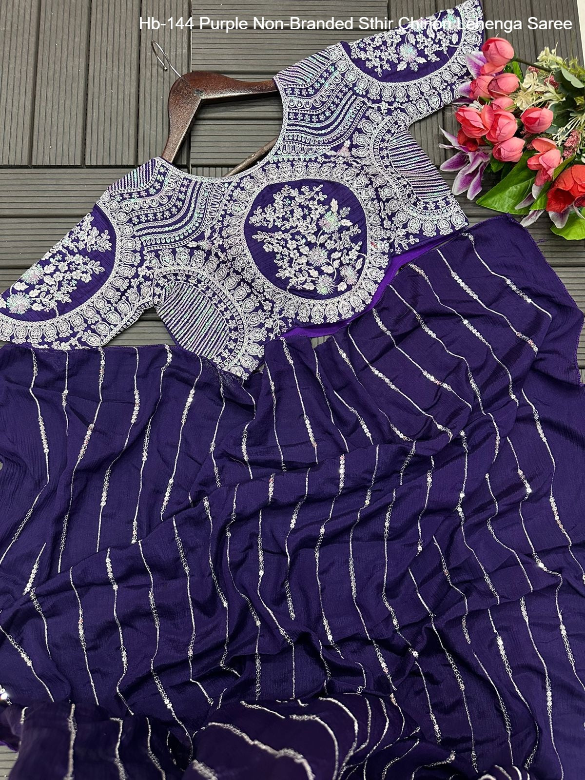 Hb-144 Purple Non-Branded Sthir Chinon Lehenga Saree