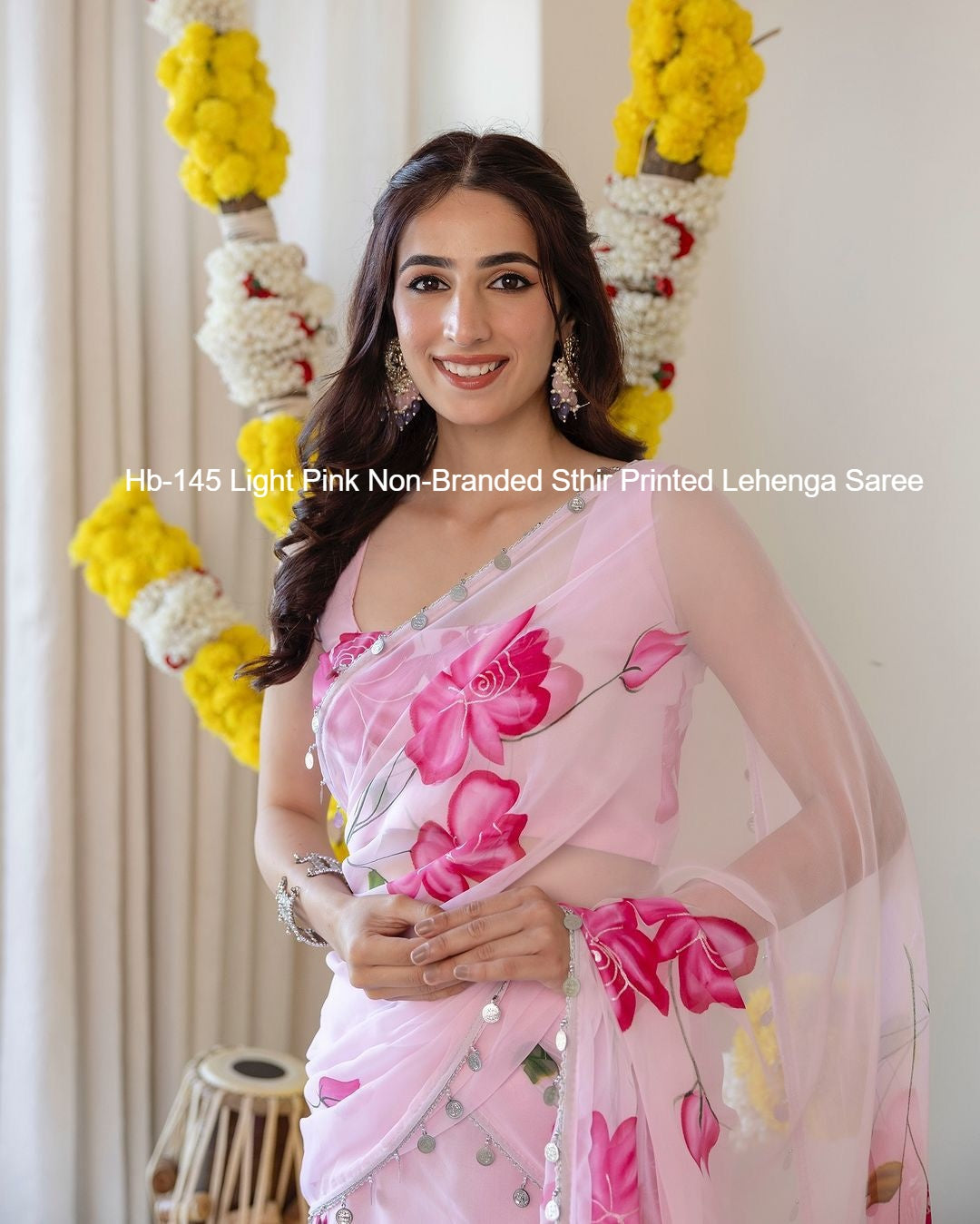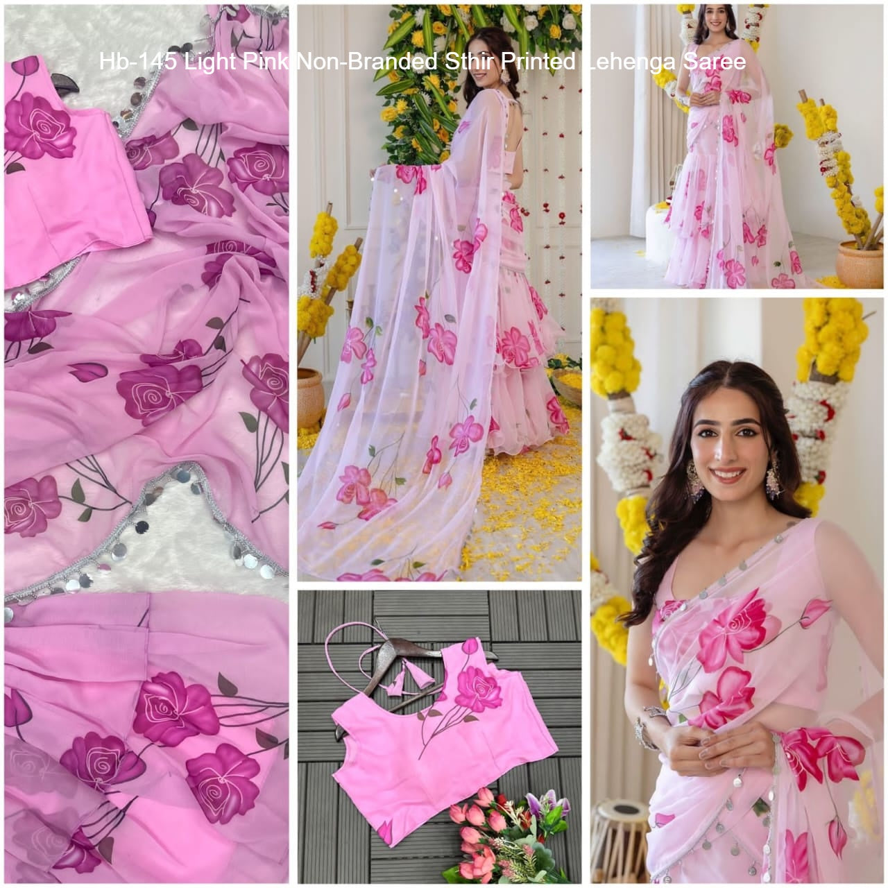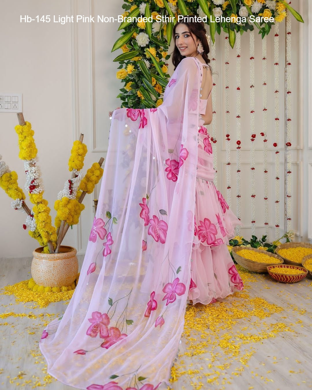 Hb-145 Light Pink Non-Branded Sthir Printed Lehenga Saree