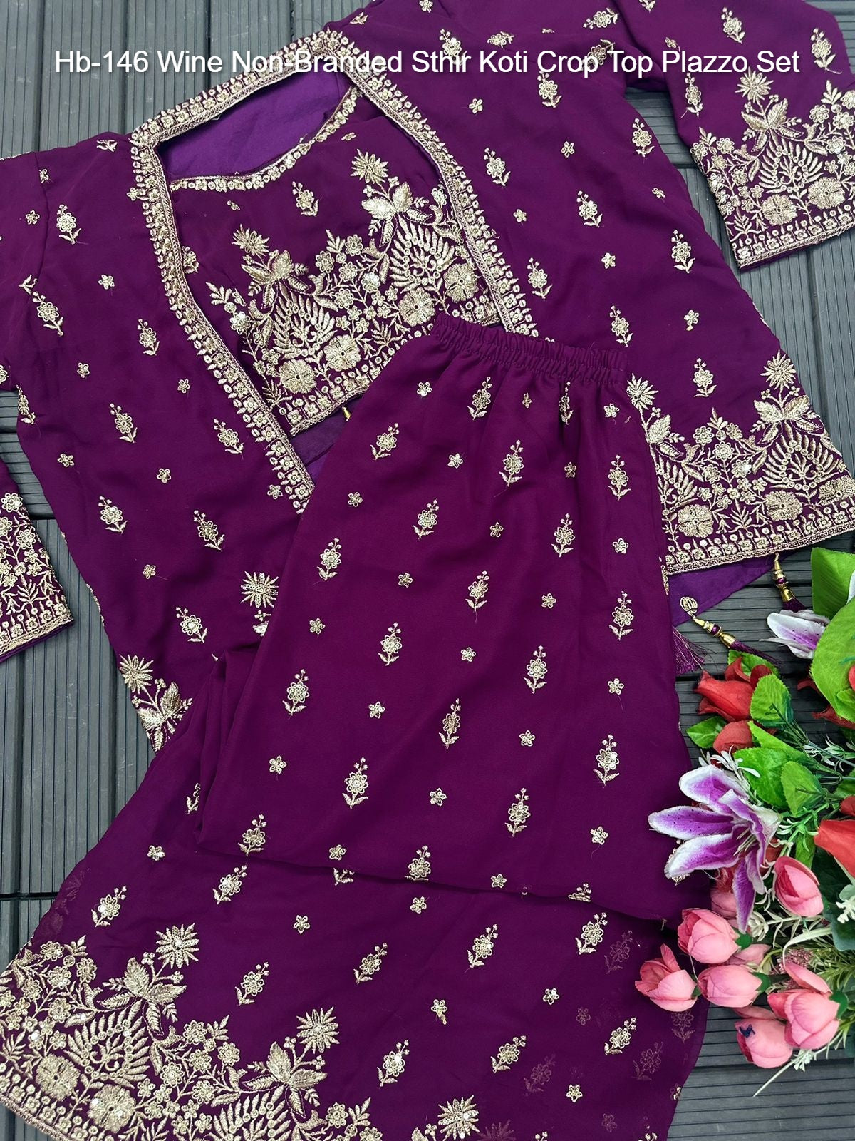 Hb-146 Wine Non-Branded Sthir Koti Crop Top Plazzo Set