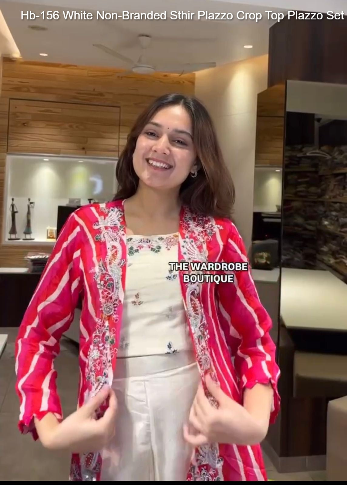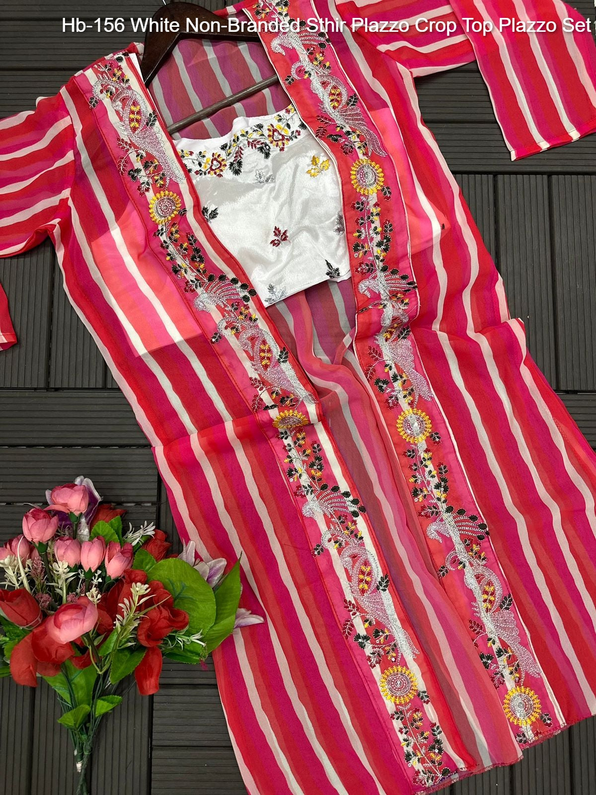 - Hb-156 White Non-Branded Sthir Plazzo Crop Top Plazzo Set Dealer Ahmedabad Surat Wholesale Gujarat India Lowest Price Best Quality Buy Purchase Shipping Kurta Salwaar Kameez Also free Cash on delivery