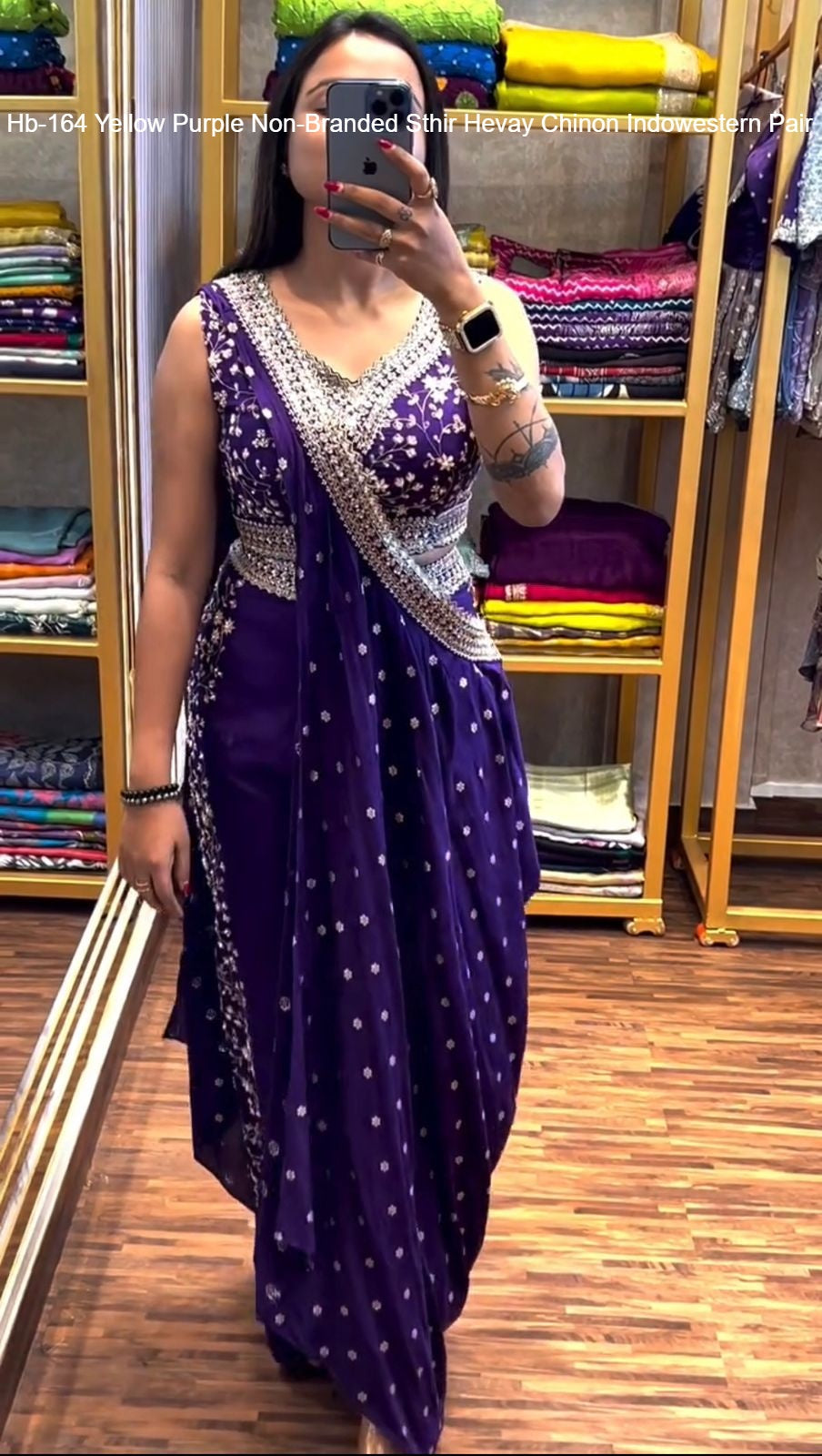 - Hb-164 Yellow Purple Non-Branded Sthir Hevay Chinon Indowestern Pair Dealer Ahmedabad Surat Wholesale Gujarat India Lowest Price Best Quality Buy Purchase Shipping Kurta Salwaar Kameez Also free Cash on delivery
