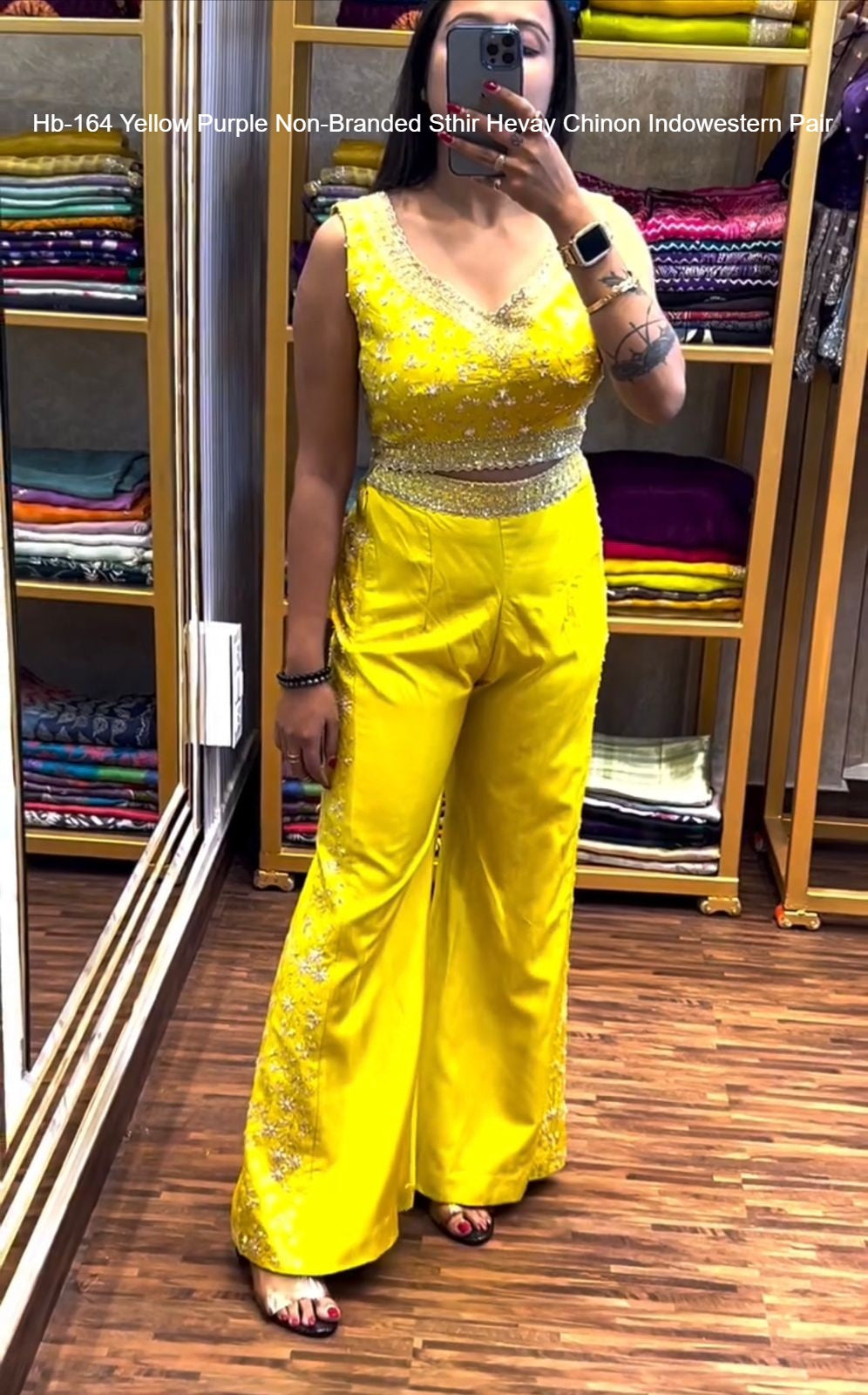 Hb-164 Yellow Purple Non-Branded Sthir Hevay Chinon Indowestern Pair