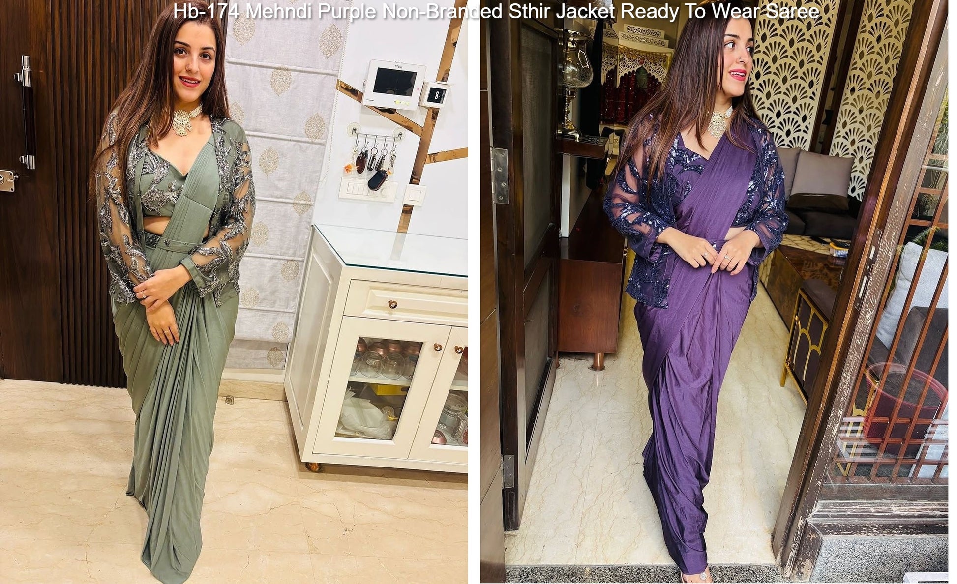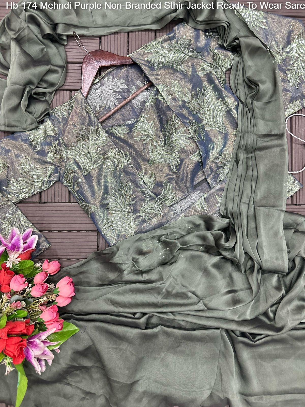 Hb-174 Mehndi Purple Non-Branded Sthir Jacket Ready To Wear Saree