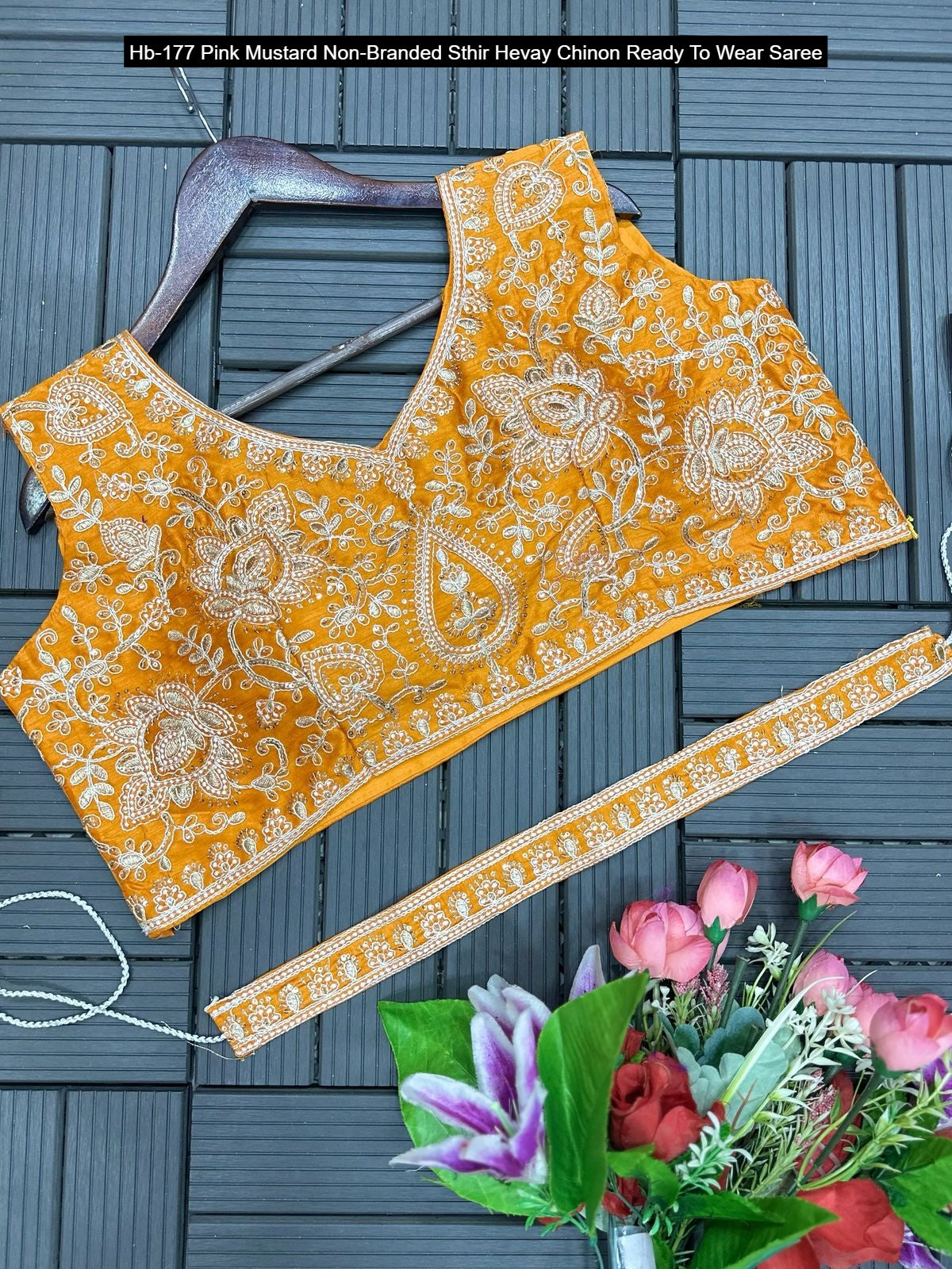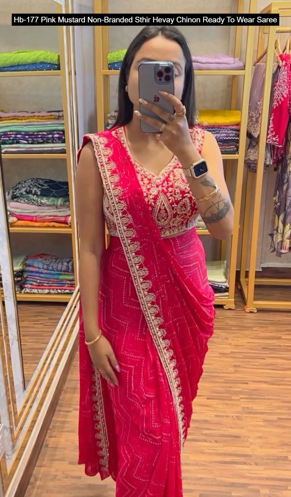 - Hb-177 Pink Mustard Non-Branded Sthir Hevay Chinon Ready To Wear Saree Dealer Ahmedabad Surat Wholesale Gujarat India Lowest Price Best Quality Buy Purchase Shipping Kurta Salwaar Kameez Also free Cash on delivery