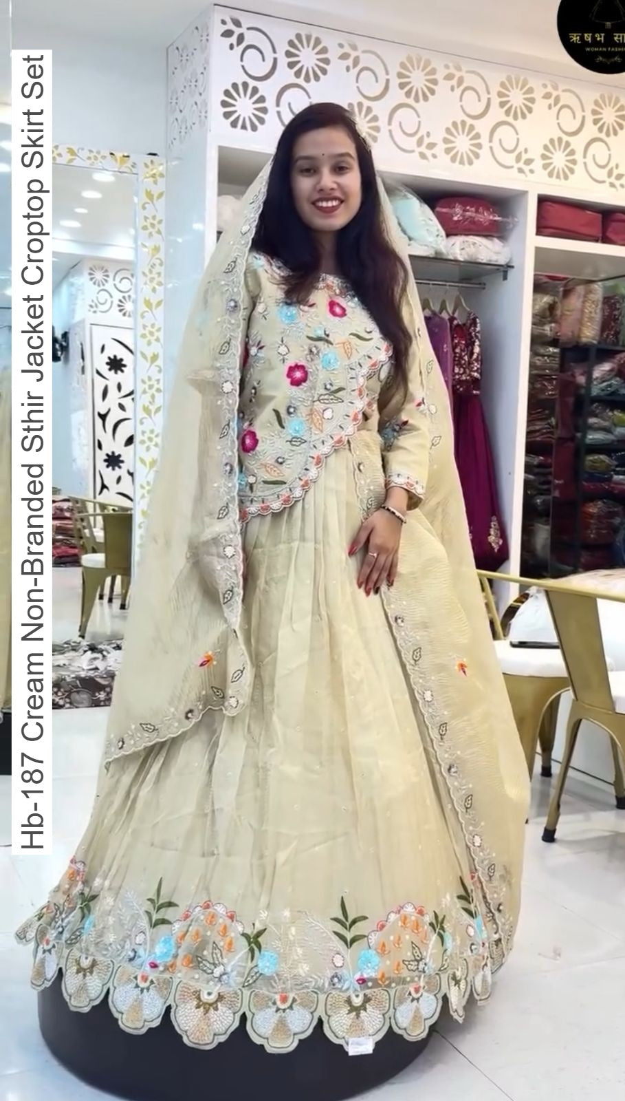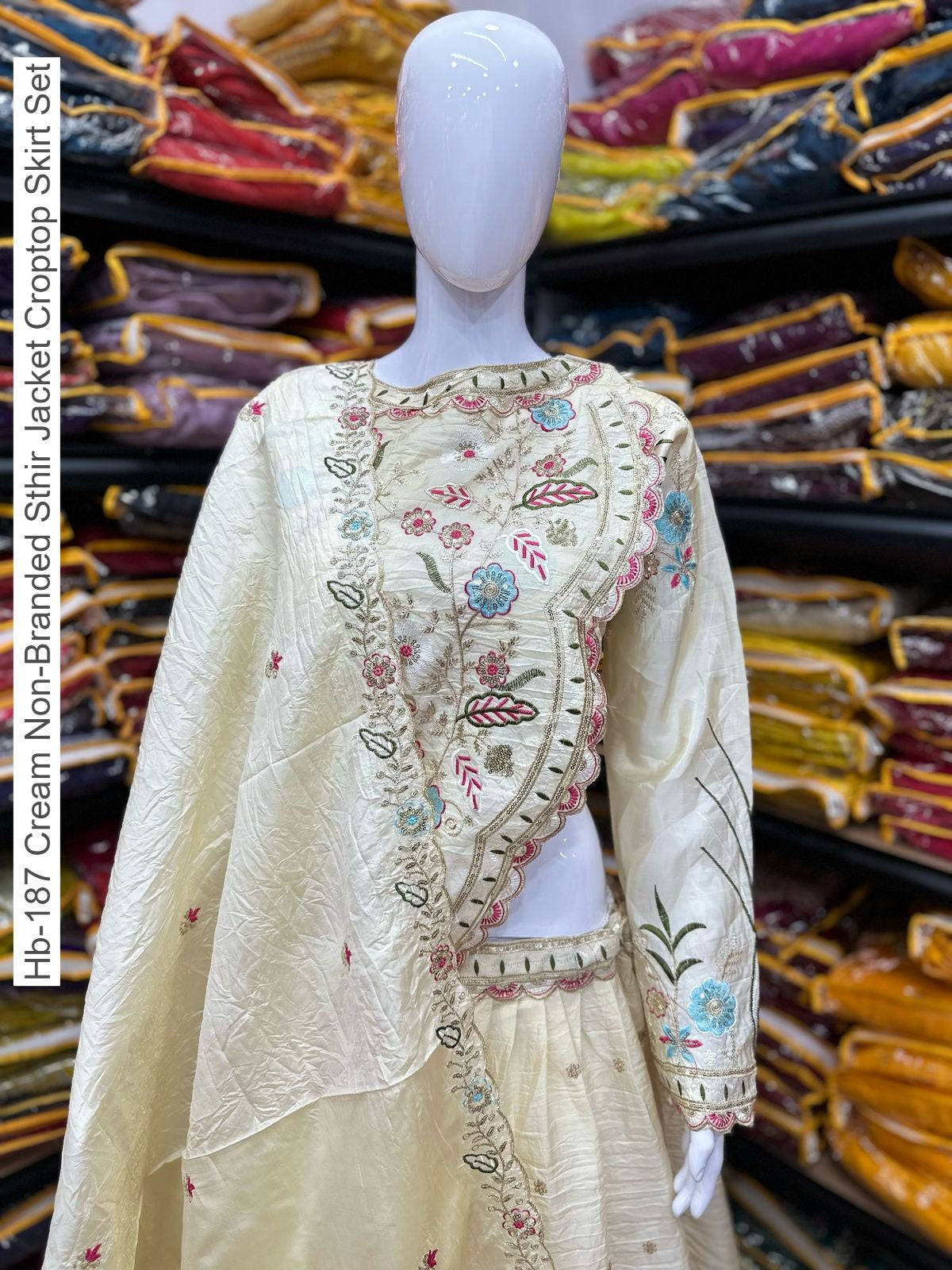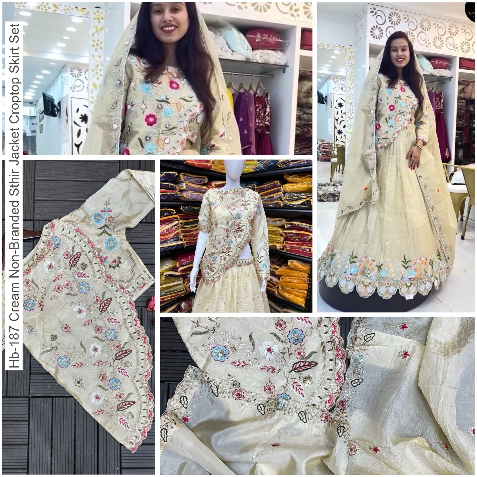 - Hb-187 Cream Non-Branded Sthir Jacket Croptop Skirt Set Dealer Ahmedabad Surat Wholesale Gujarat India Lowest Price Best Quality Buy Purchase Shipping Kurta Salwaar Kameez Also free Cash on delivery
