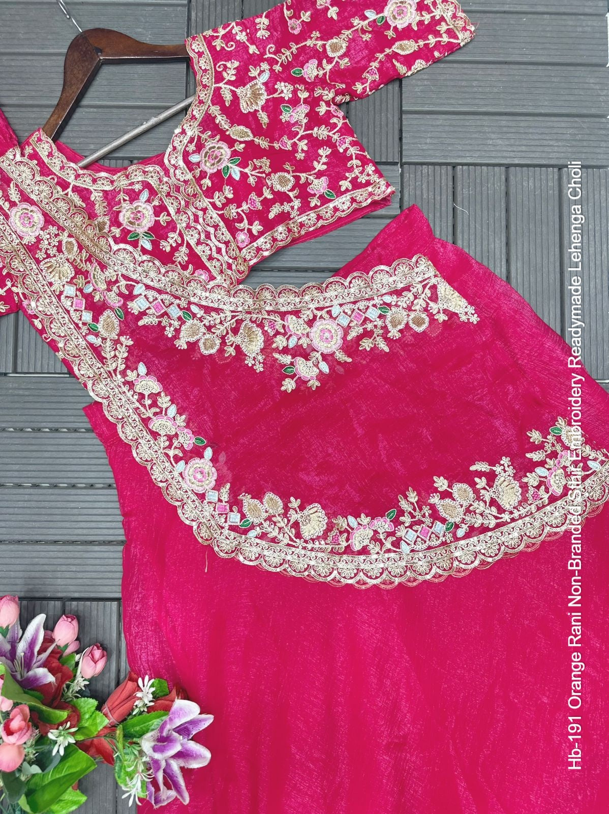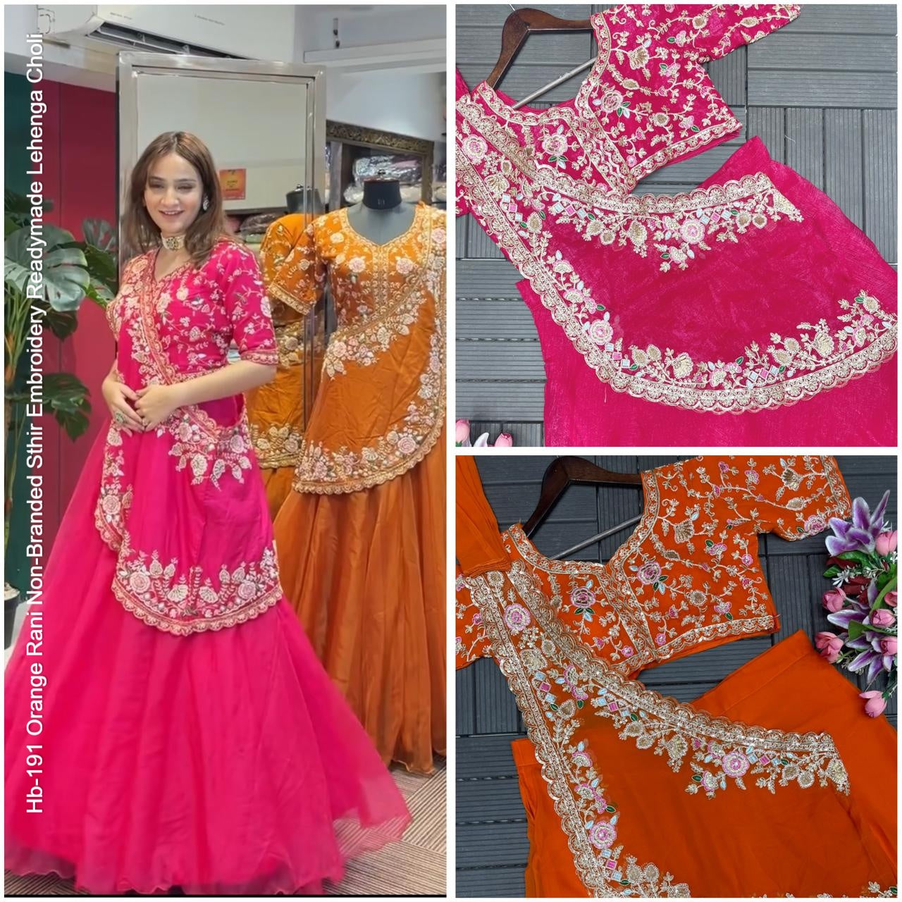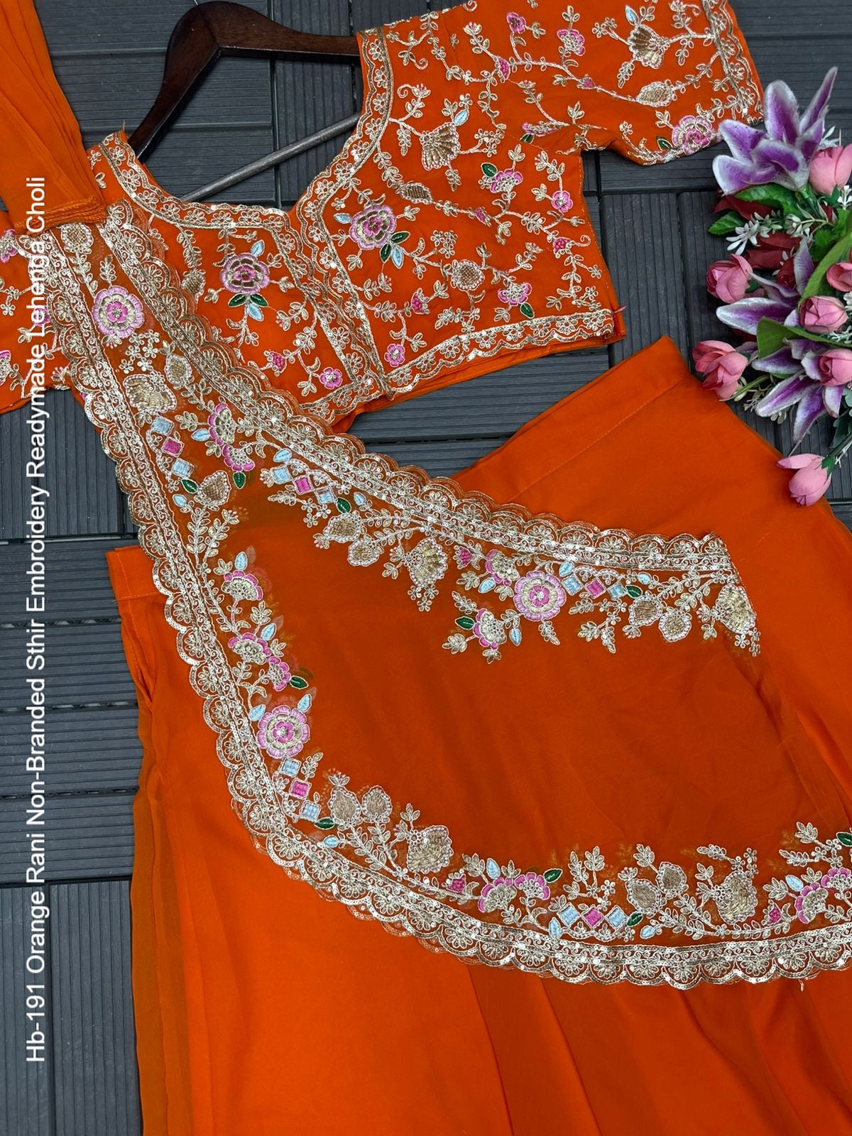 - Hb-191 Orange Rani Non-Branded Sthir Embroidery Readymade Lehenga Choli Dealer Ahmedabad Surat Wholesale Gujarat India Lowest Price Best Quality Buy Purchase Shipping Kurta Salwaar Kameez Also free Cash on delivery
