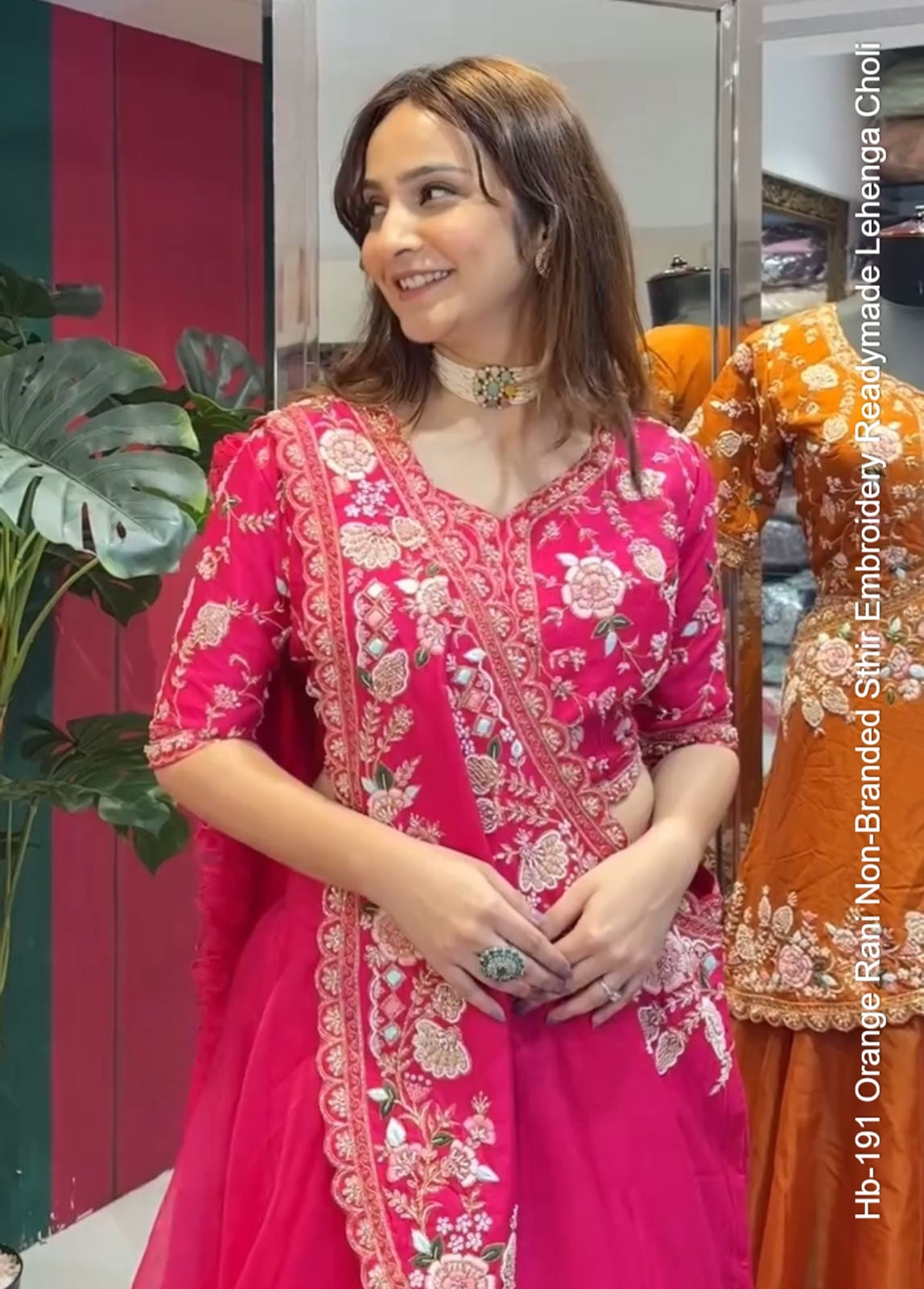 Hb-191 Orange Rani Non-Branded Sthir Embroidery Readymade Lehenga Choli