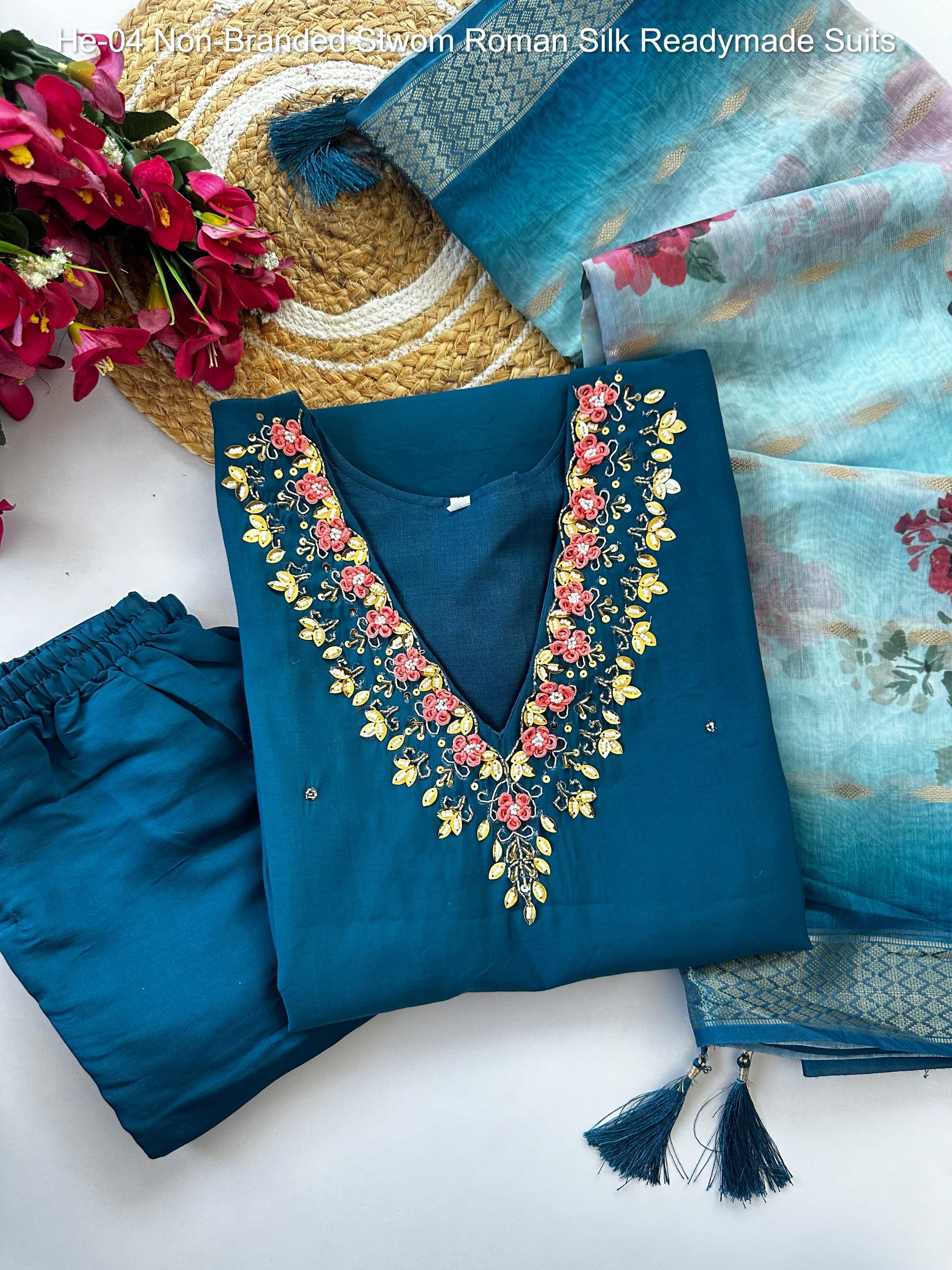 He-04 Non-Branded Stwom Roman Silk Readymade Suits