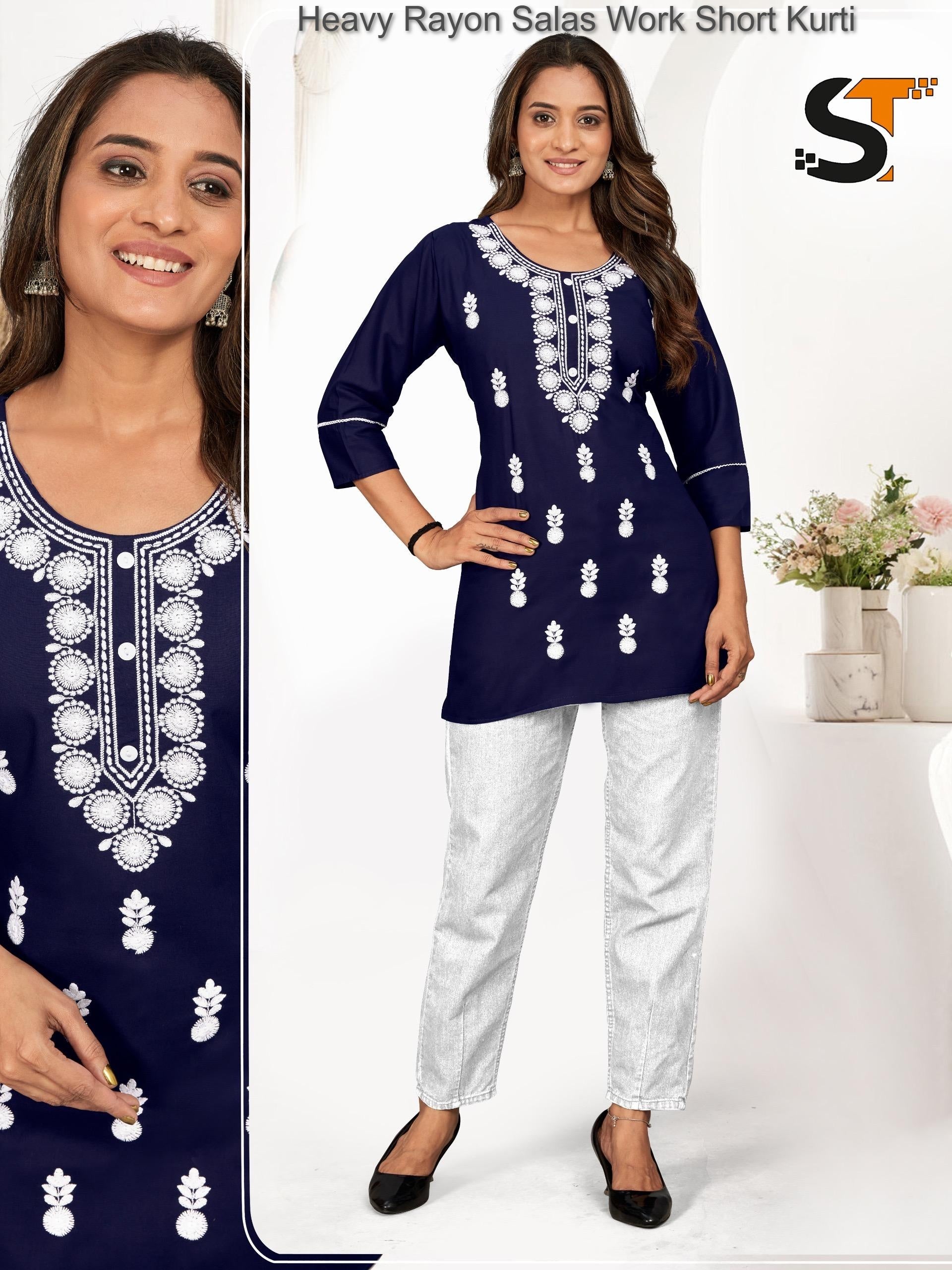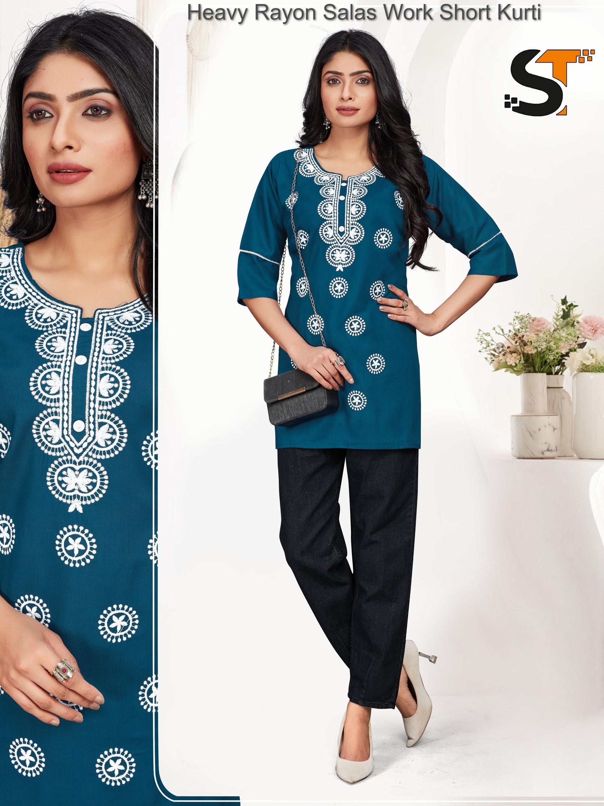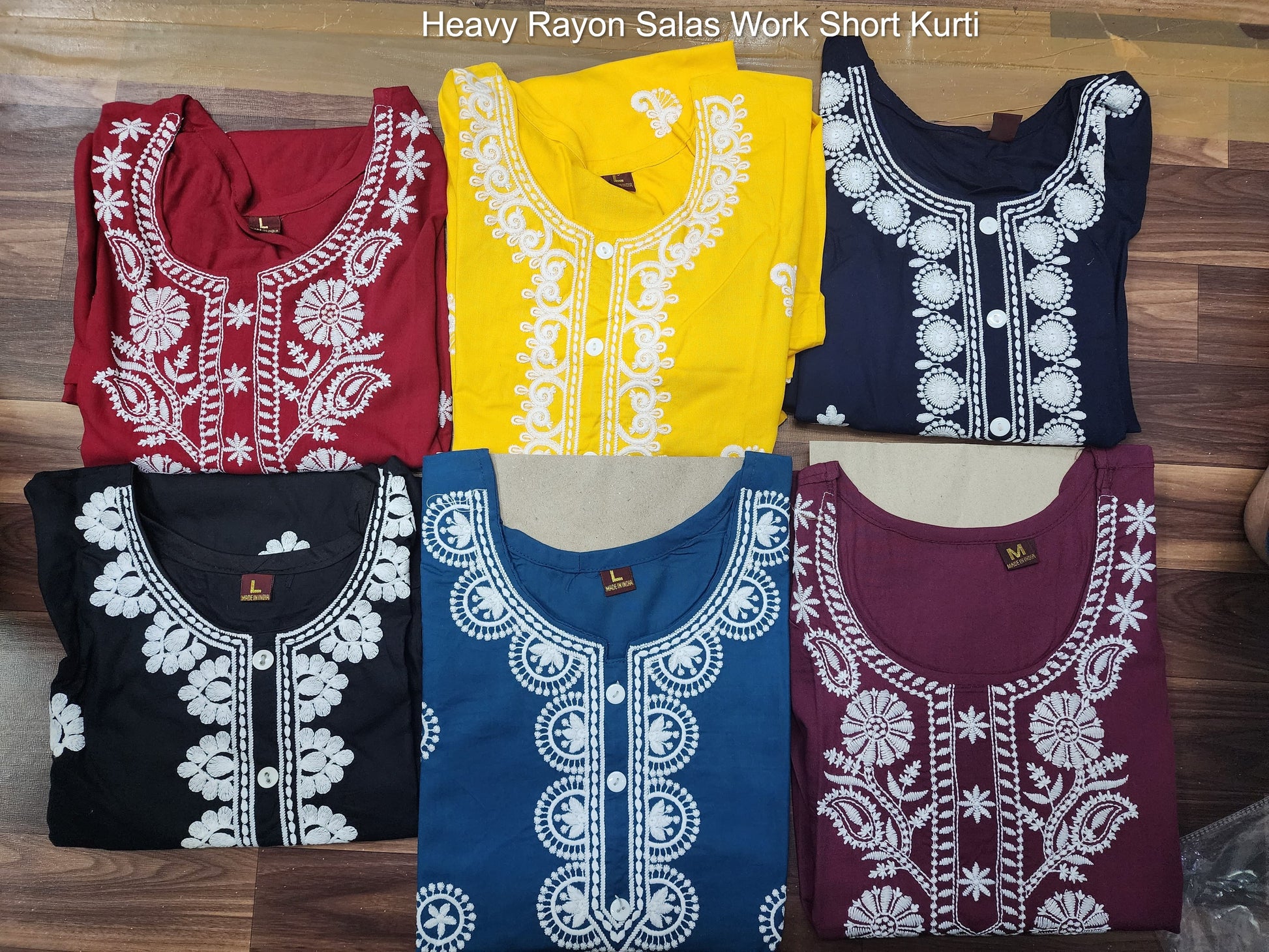 - Heavy Rayon Salas Work Short Kurti Dealer Ahmedabad Surat Wholesale Gujarat India Lowest Price Best Quality Buy Purchase Shipping Kurta Salwaar Kameez Also free Cash on delivery