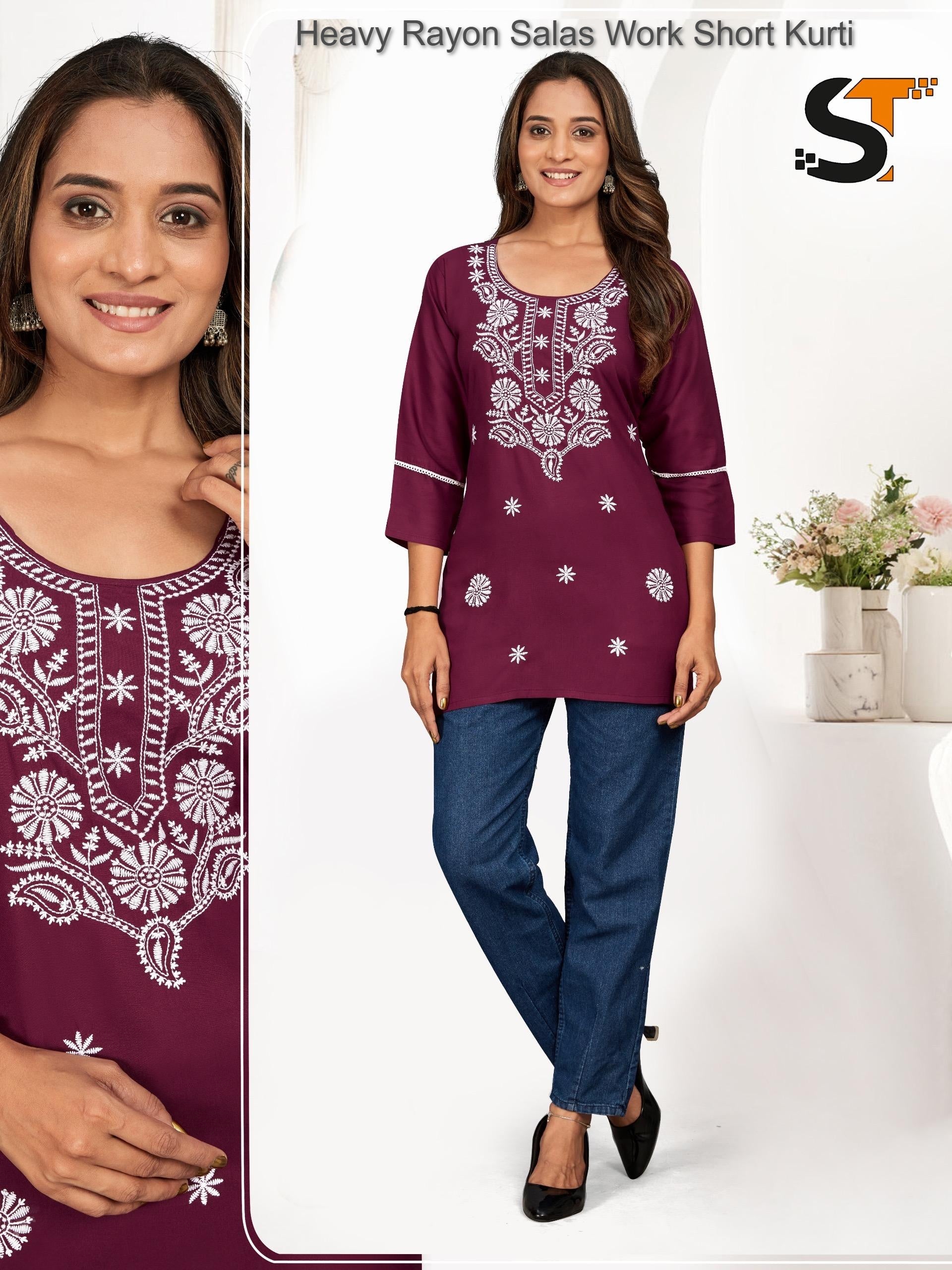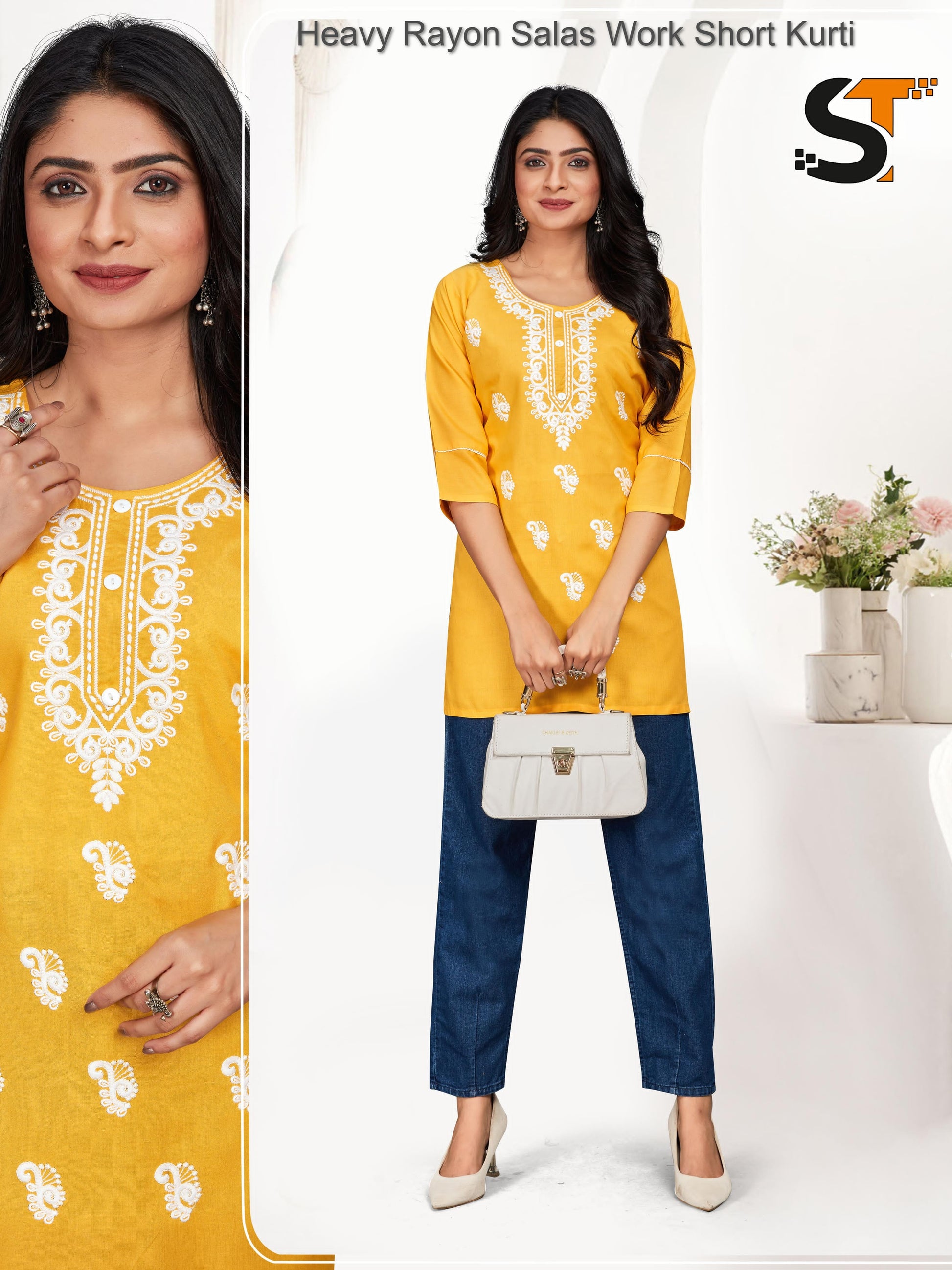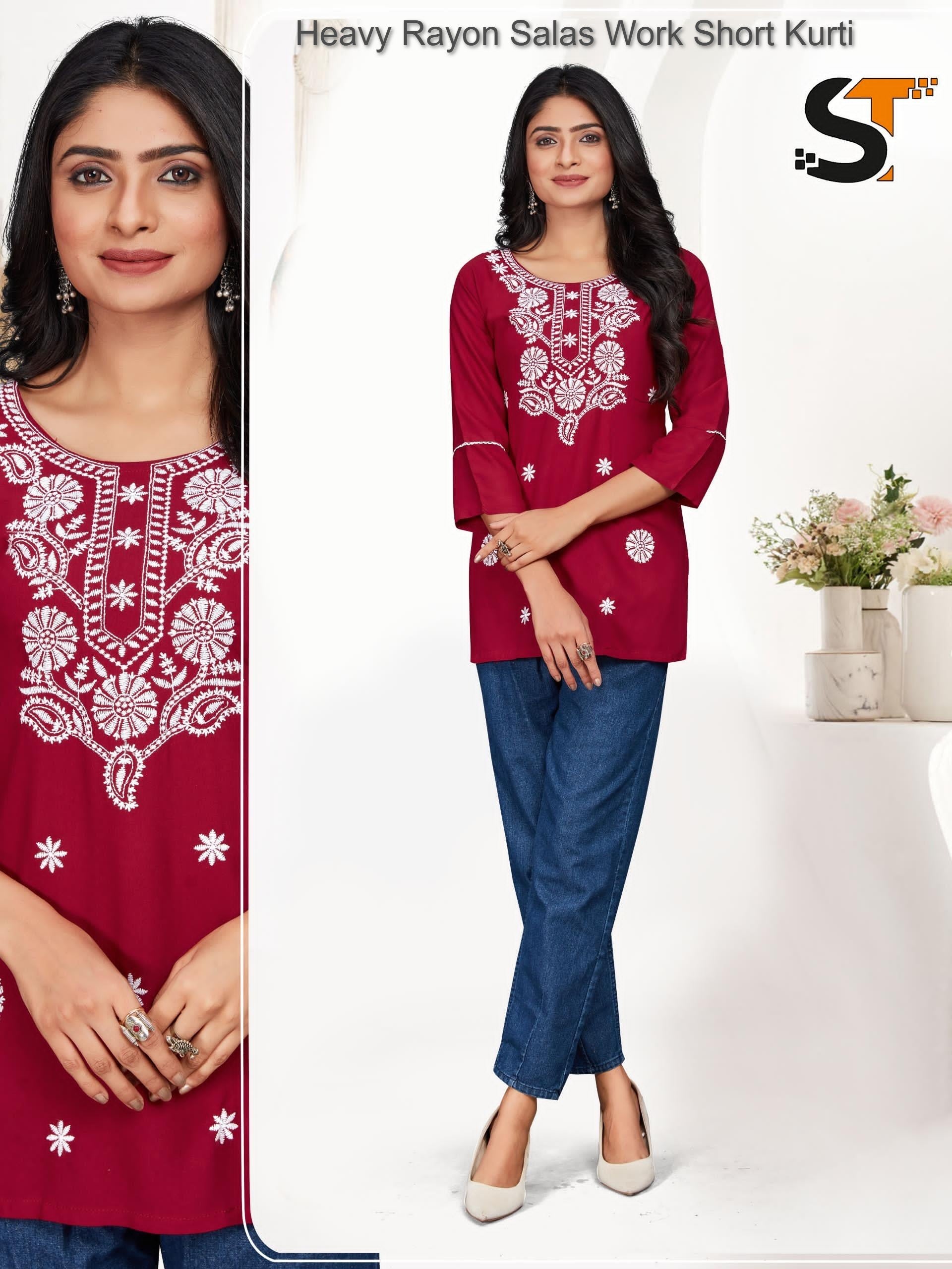 - Heavy Rayon Salas Work Short Kurti Dealer Ahmedabad Surat Wholesale Gujarat India Lowest Price Best Quality Buy Purchase Shipping Kurta Salwaar Kameez Also free Cash on delivery