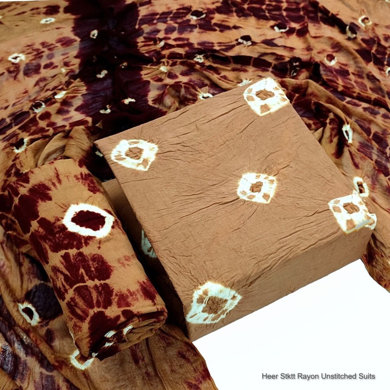 - Fabric Detail: Top : Original Potli Heavy Rayon Bandhani, Bottom : Rayon With Hand Bandhej Print, Dupatta : Rayon With Hand Bandhej Print,