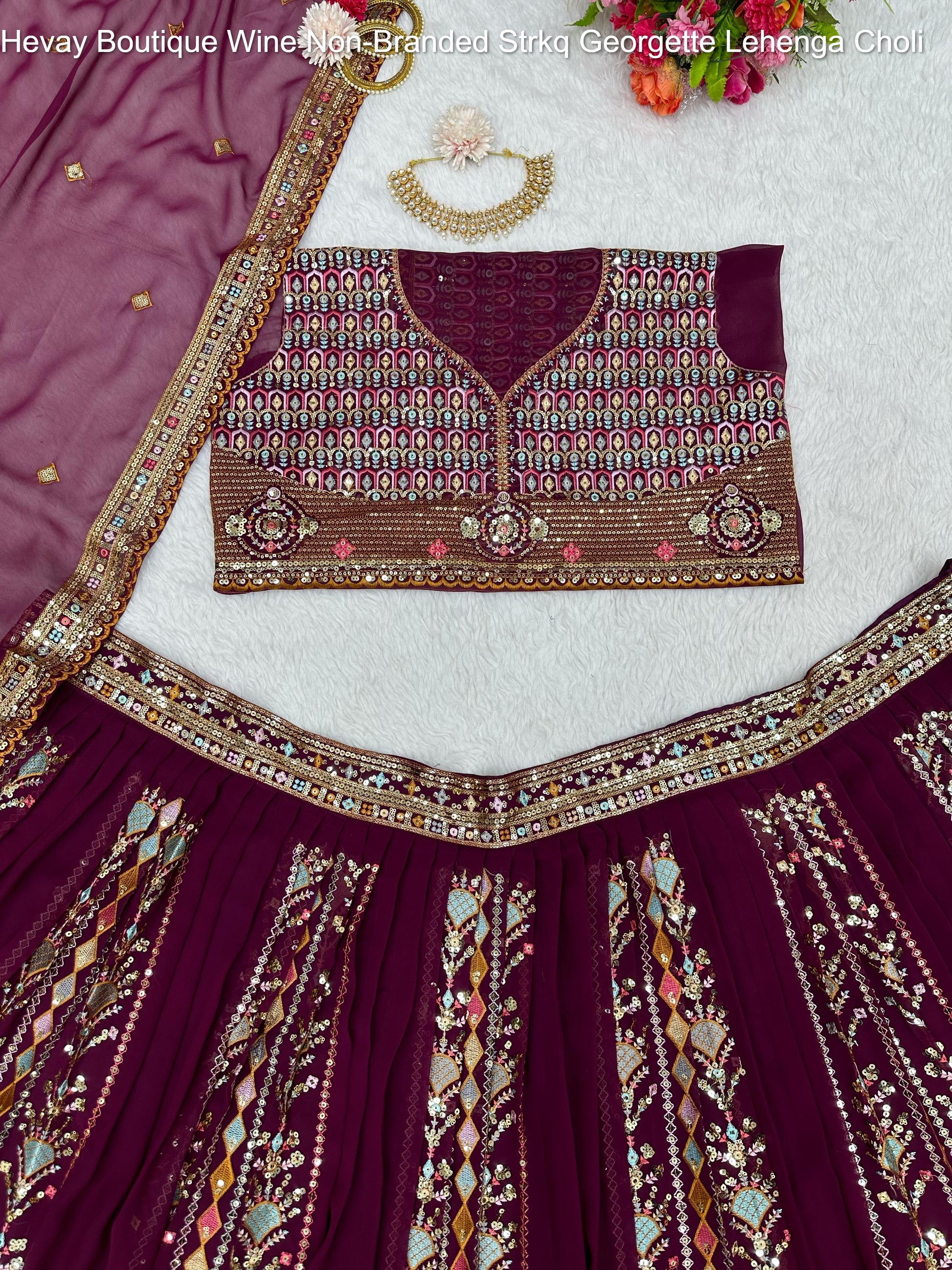 Hevay Boutique Wine Non-Branded Strkq Georgette Lehenga Choli